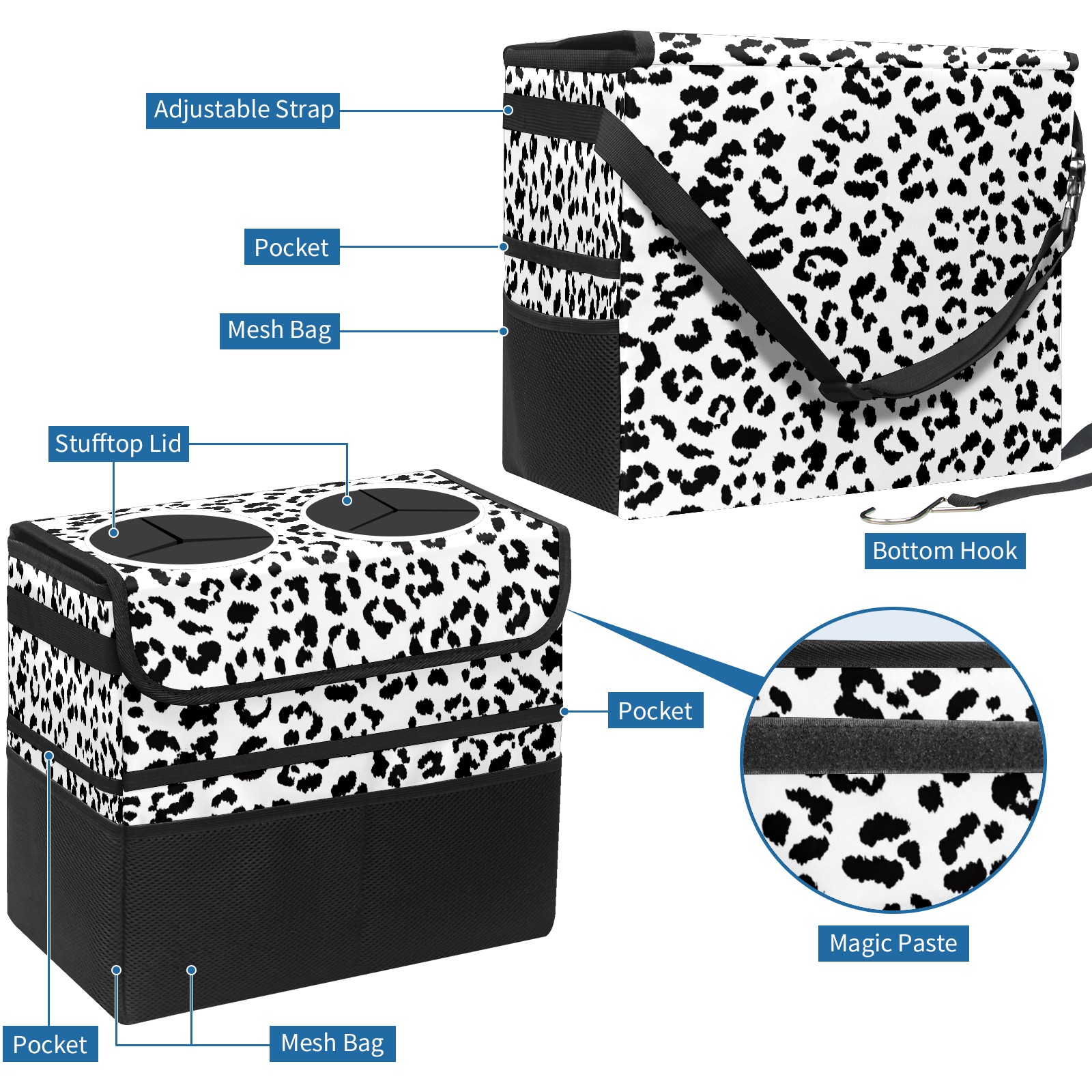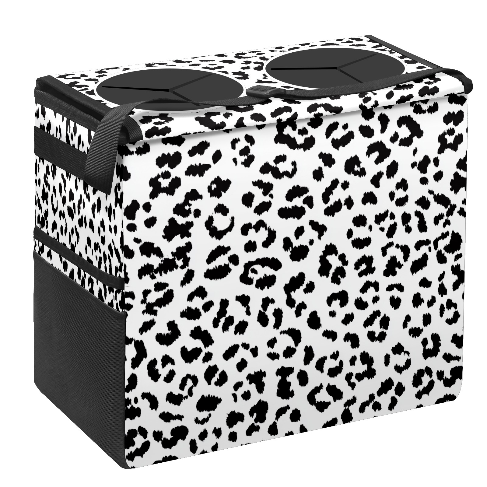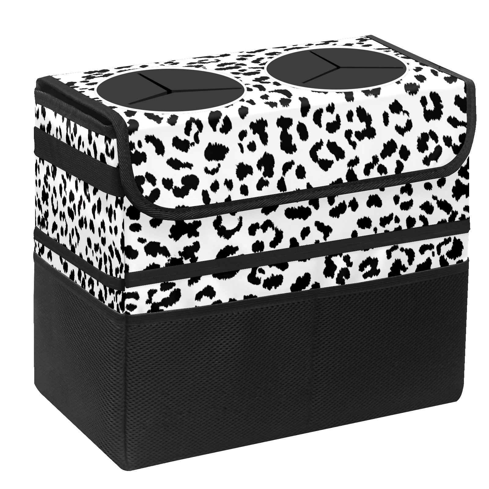 Car Trash Can with Lid, Portable Hanging Automotive Garbage Bin for Vehicles, Leakproof Waste Bag Container for SUV Truck Van Interior Auto Travel Road Trips(Leopard Print Pattern)