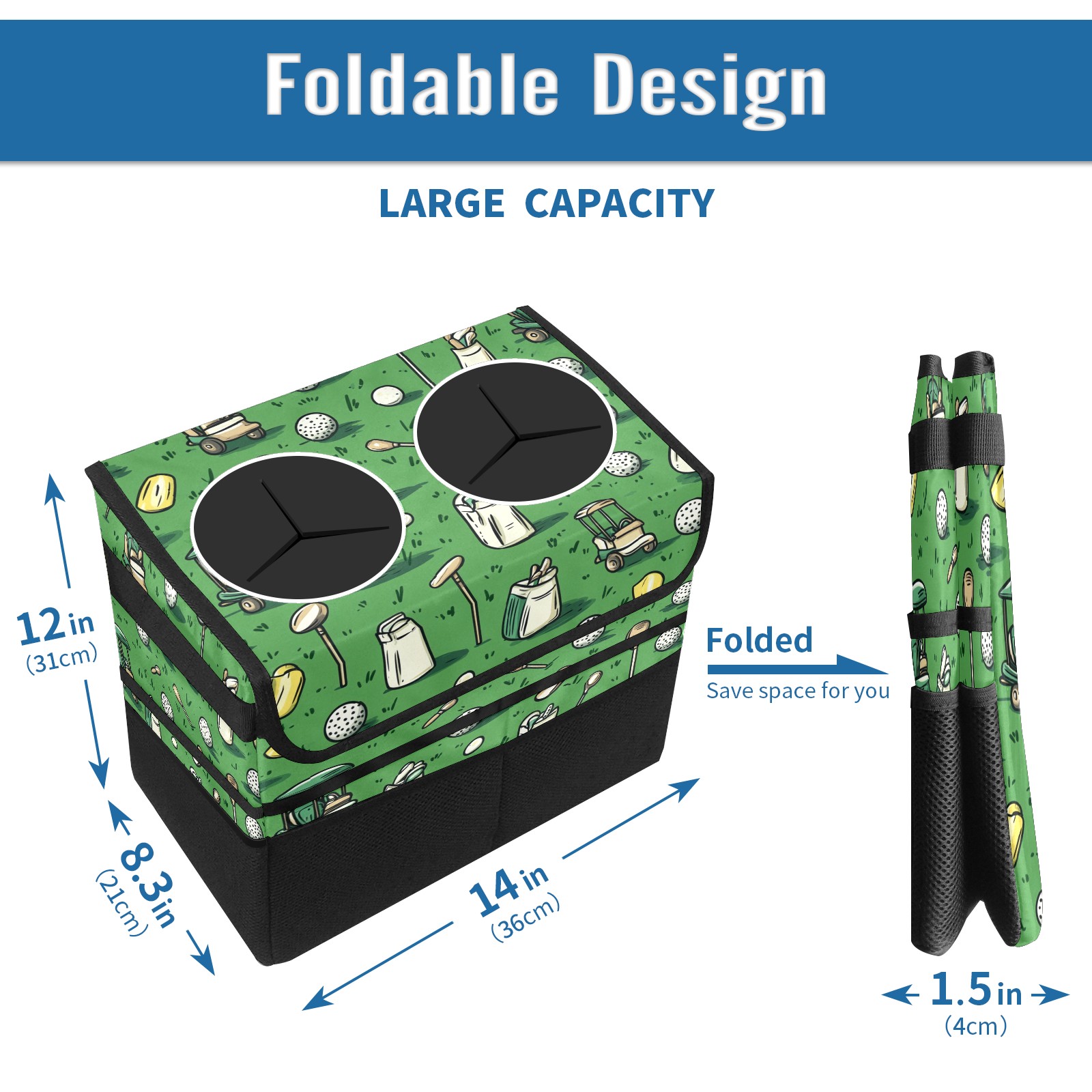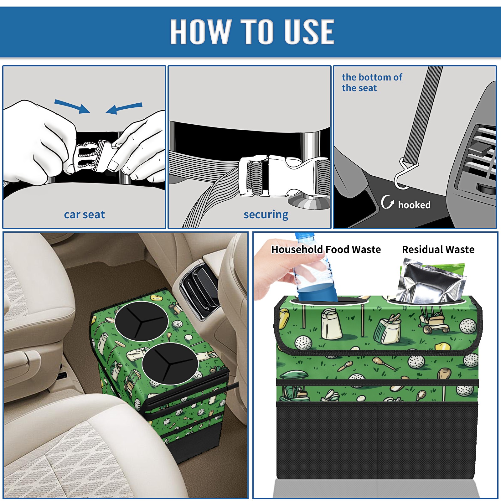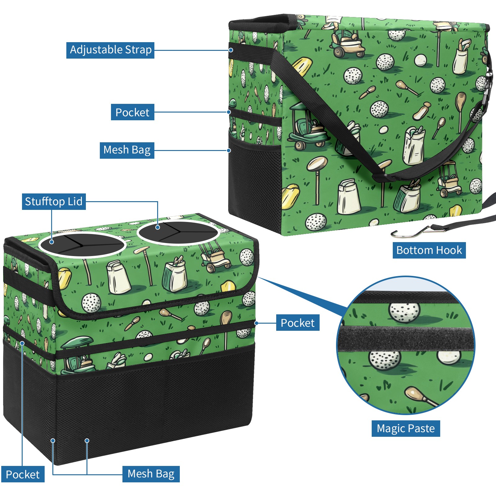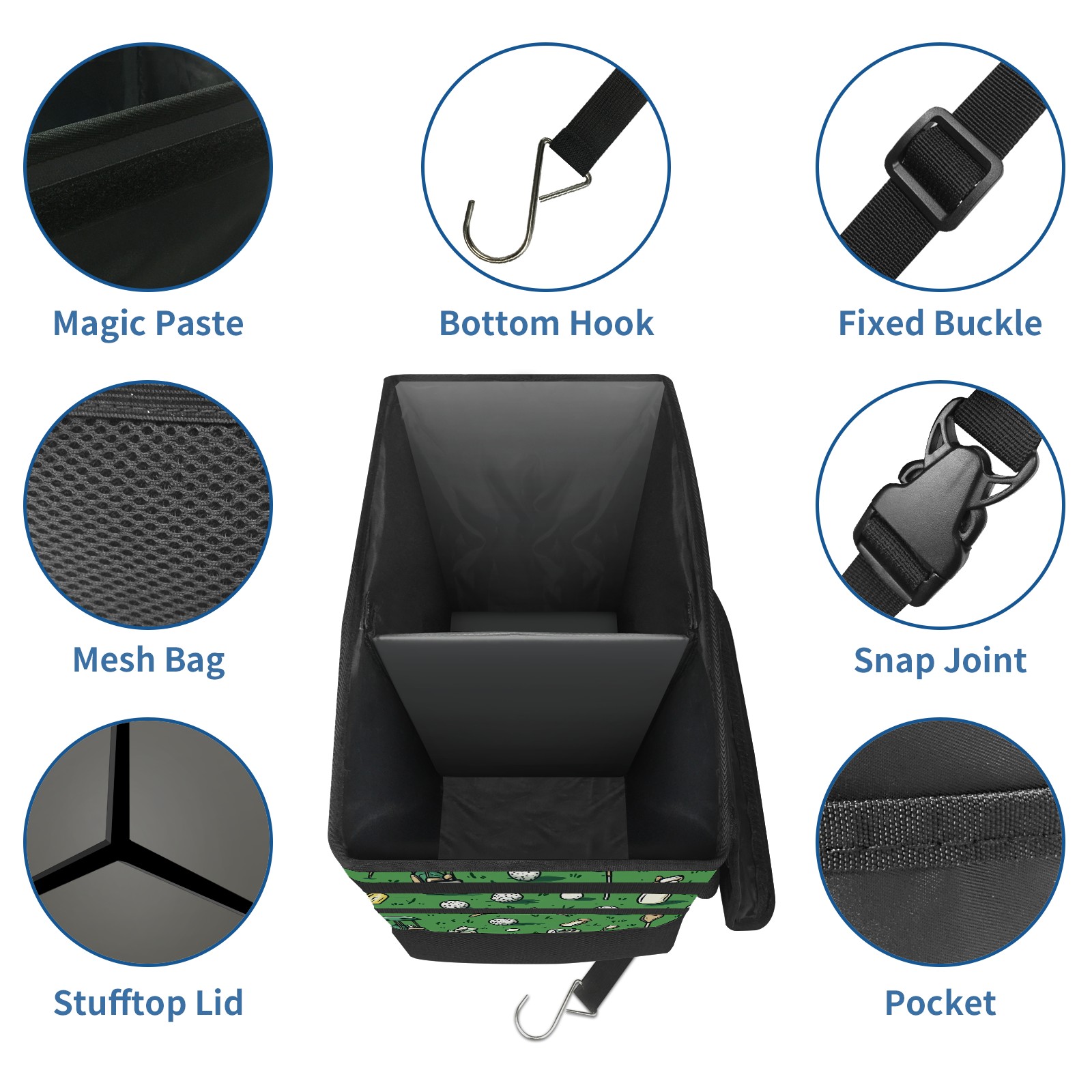 Car Trash Can with Lid, Portable Hanging Automotive Garbage Bin for Vehicles, Leakproof Waste Bag Container for SUV Truck Van Interior Auto Travel Road Trips(Golf Balls And Club Bags)