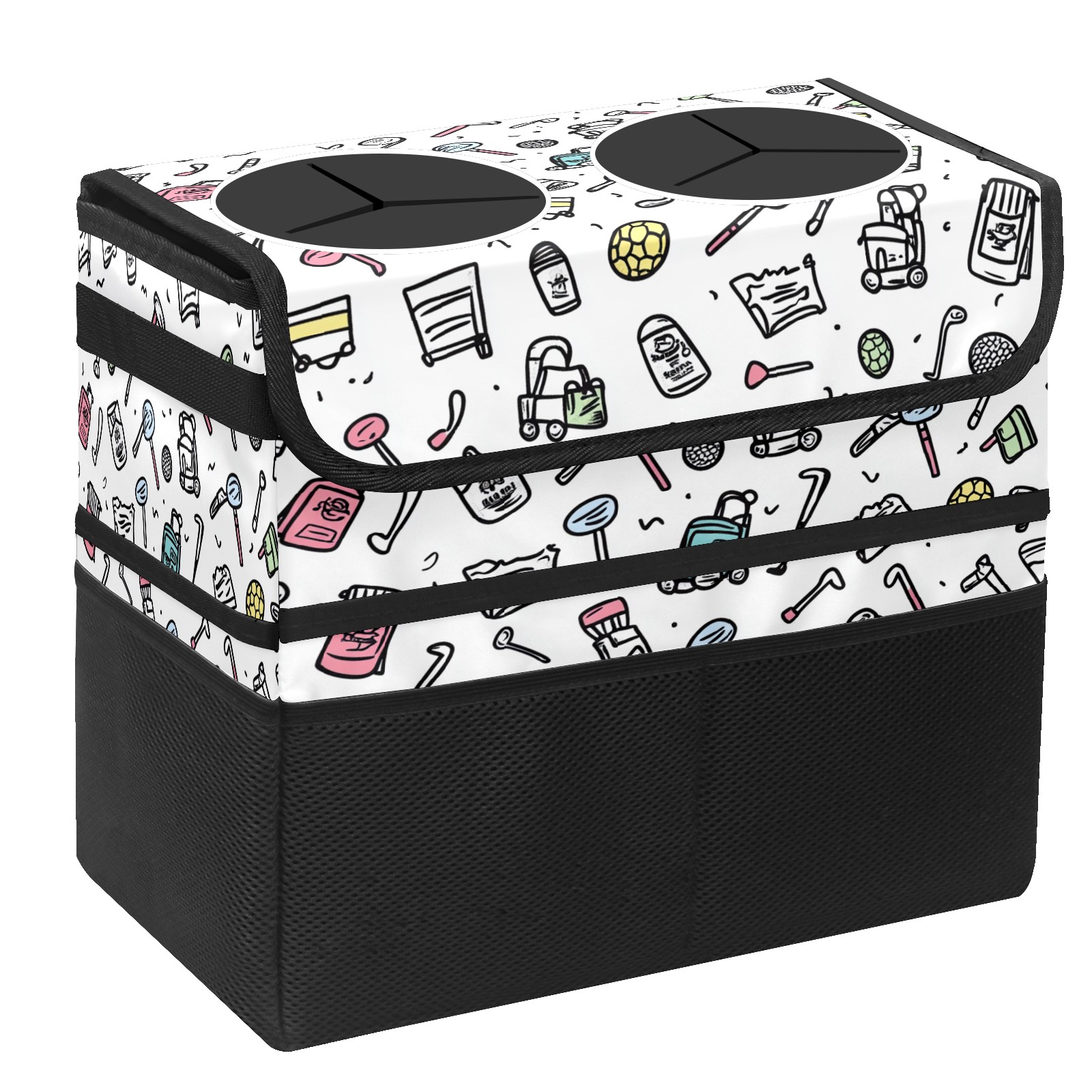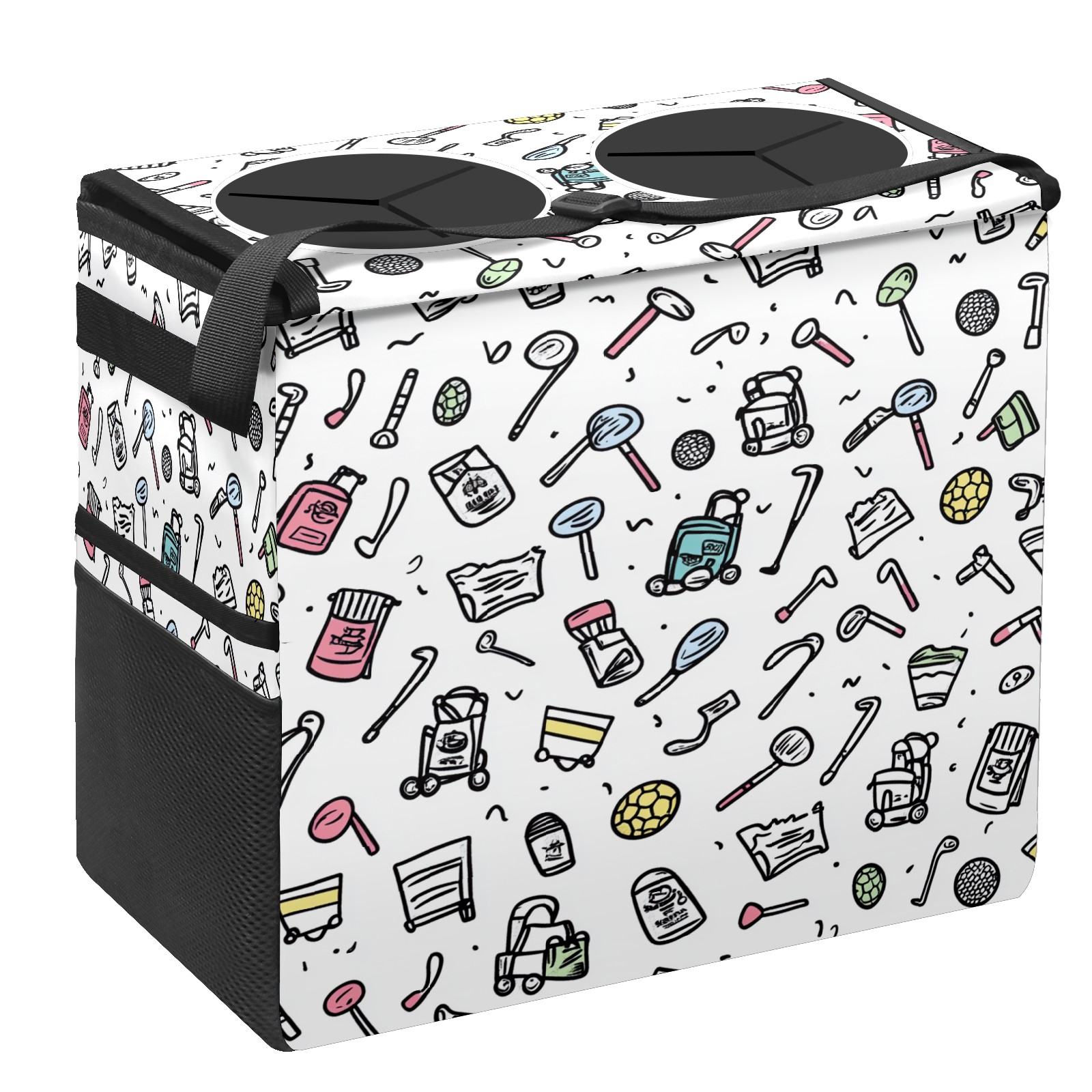 Car Trash Can with Lid, Portable Hanging Automotive Garbage Bin for Vehicles, Leakproof Waste Bag Container for SUV Truck Van Interior Auto Travel Road Trips(Golf-themed Pattern)