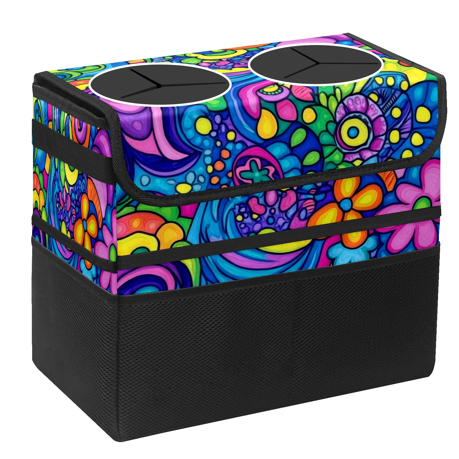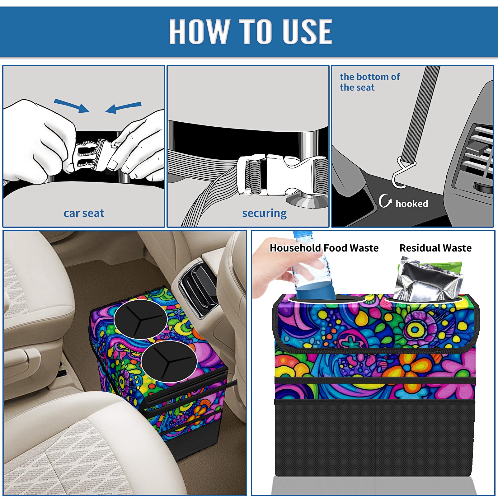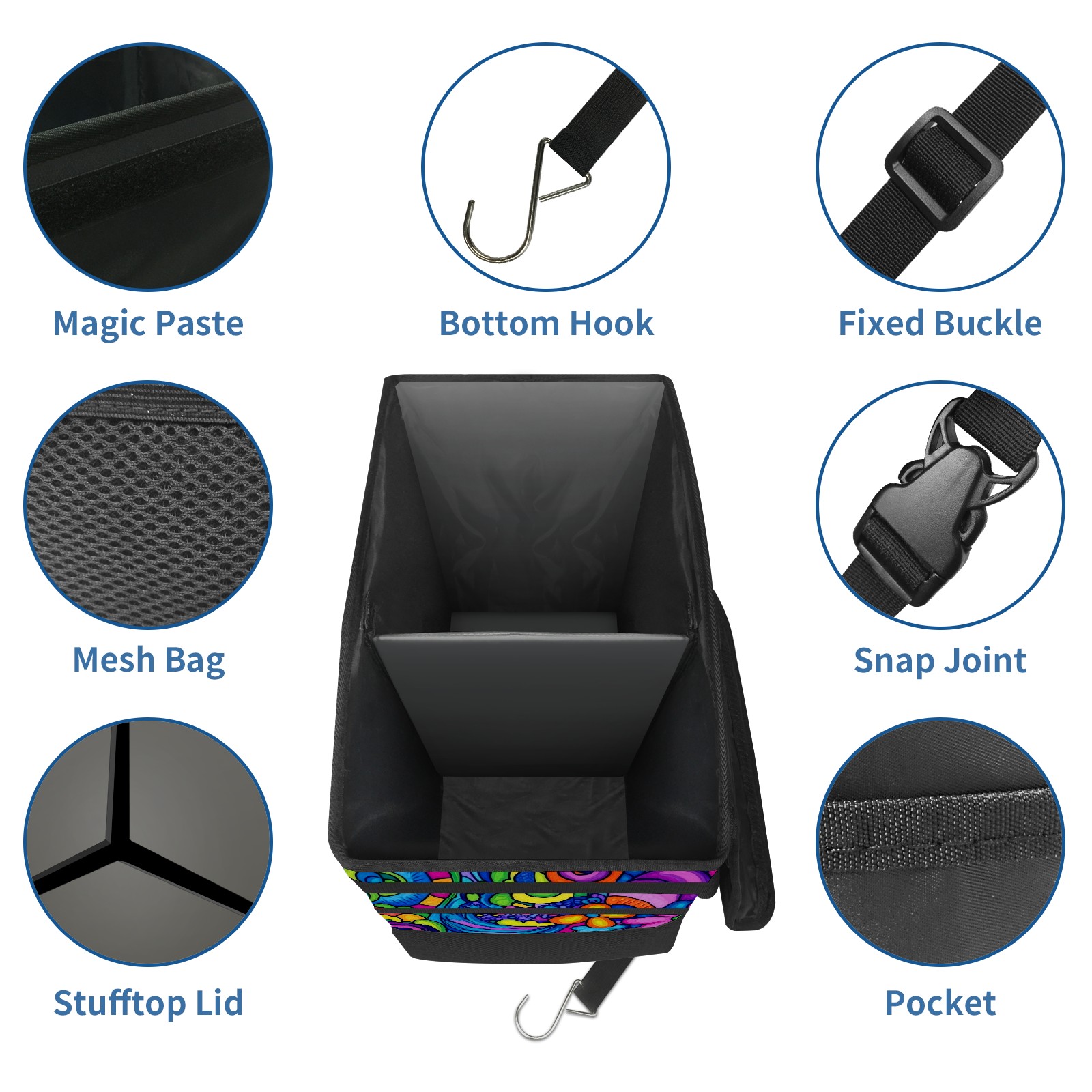 Car Trash Can with Lid, Portable Hanging Automotive Garbage Bin for Vehicles, Leakproof Waste Bag Container for SUV Truck Van Interior Auto Travel Road Trips(Psychedelic Pattern)