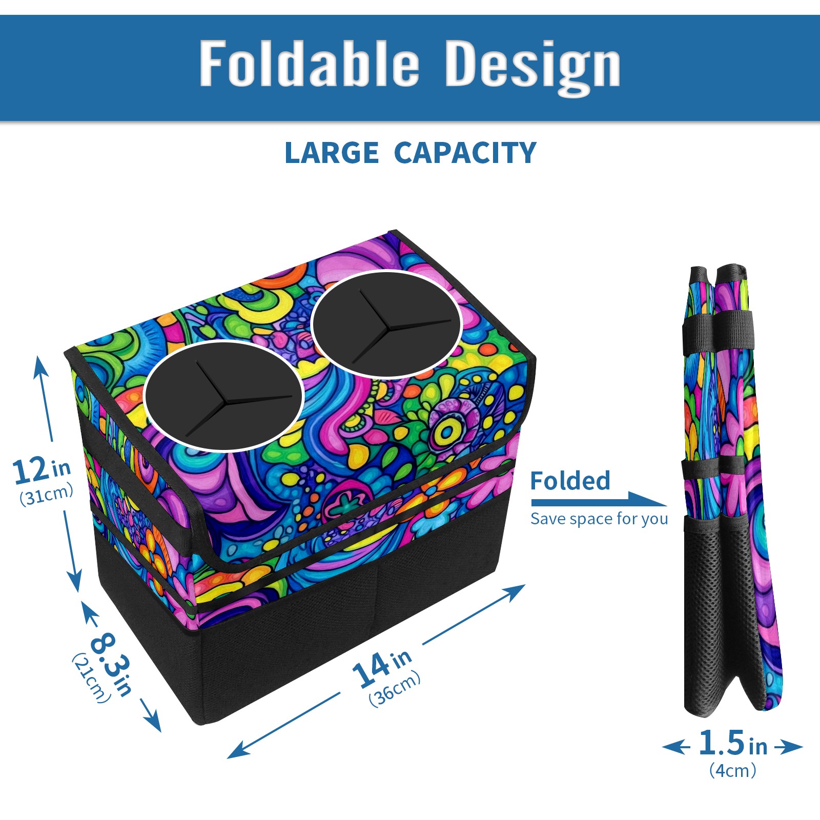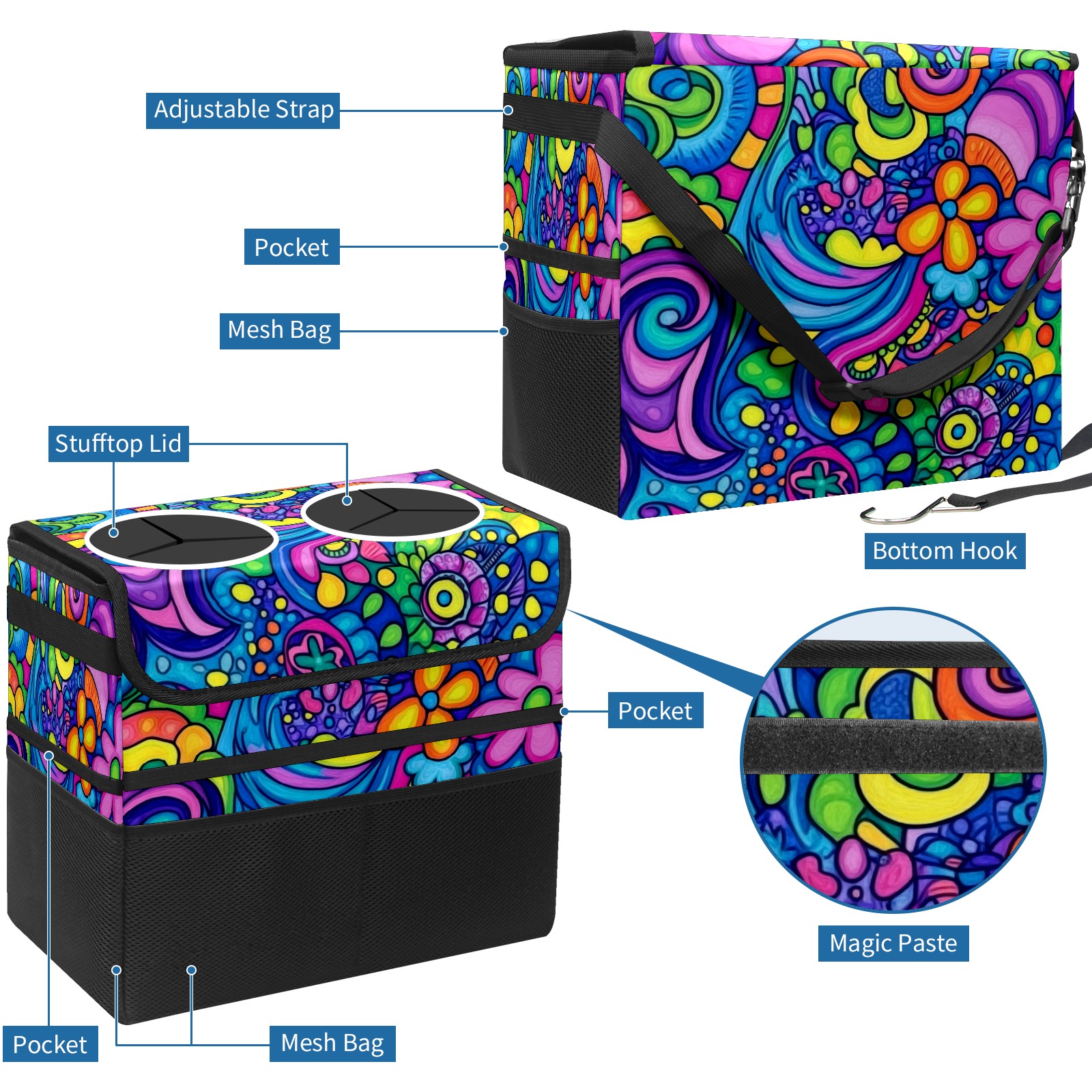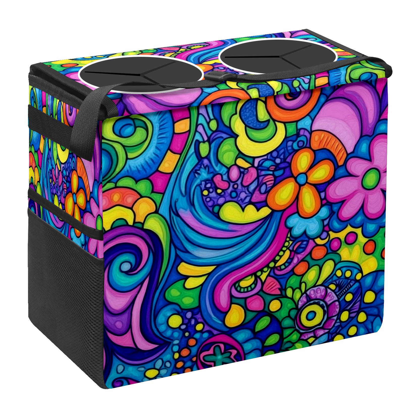 Car Trash Can with Lid, Portable Hanging Automotive Garbage Bin for Vehicles, Leakproof Waste Bag Container for SUV Truck Van Interior Auto Travel Road Trips(Psychedelic Pattern)