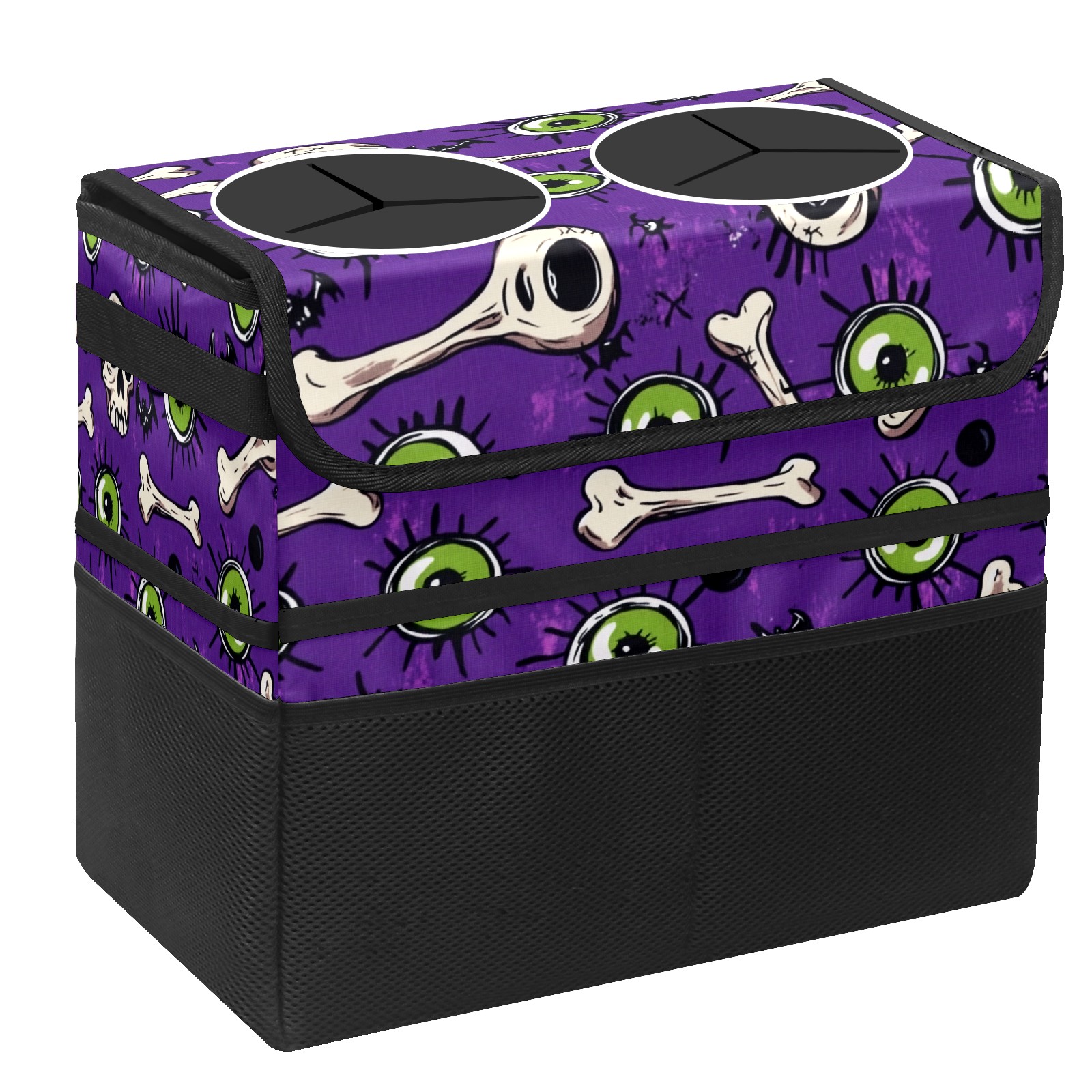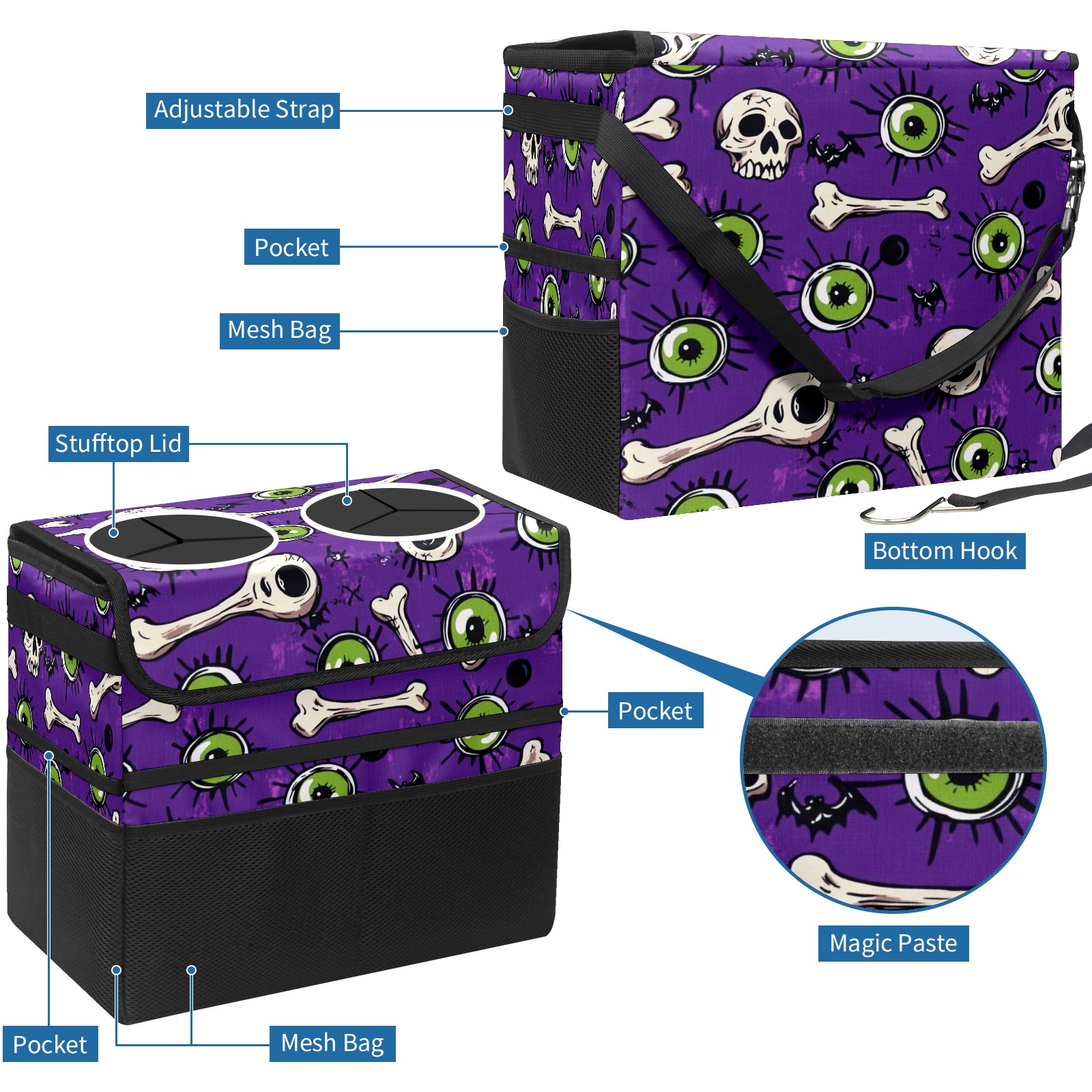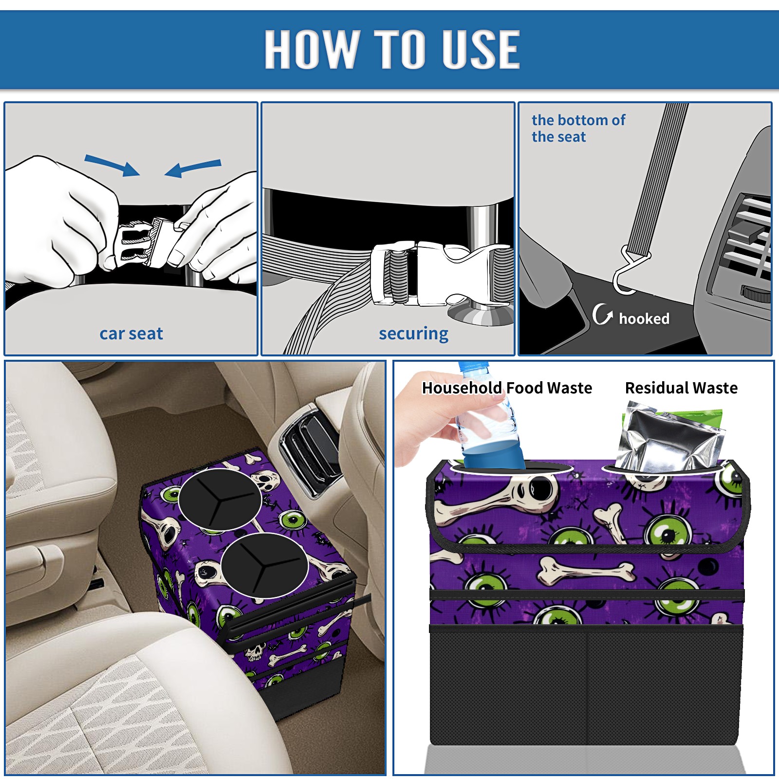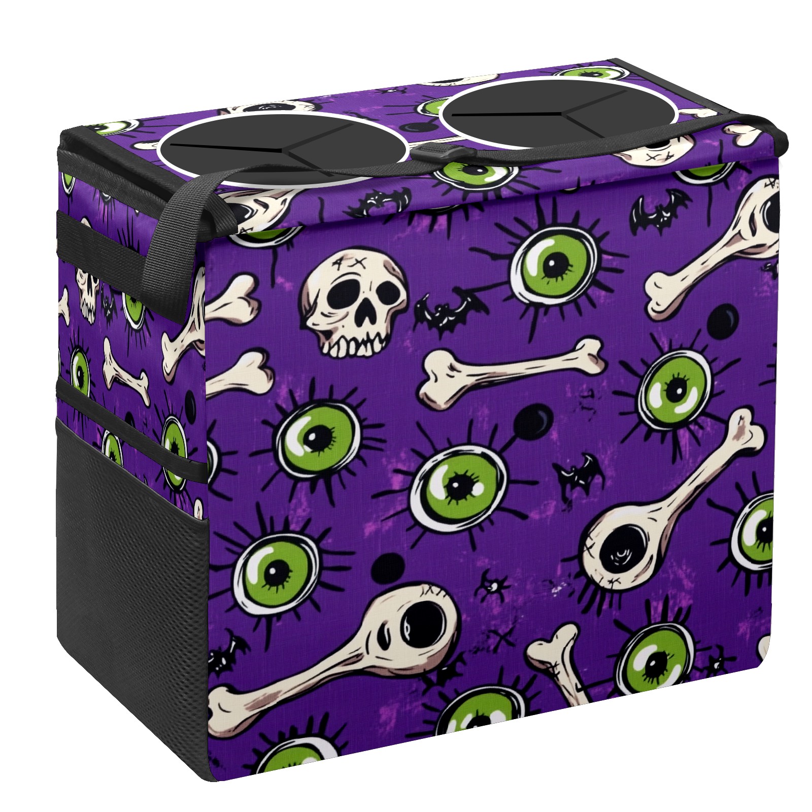 Car Trash Can with Lid, Portable Hanging Automotive Garbage Bin for Vehicles, Leakproof Waste Bag Container for SUV Truck Van Interior Auto Travel Road Trips(Eyes And Bones)