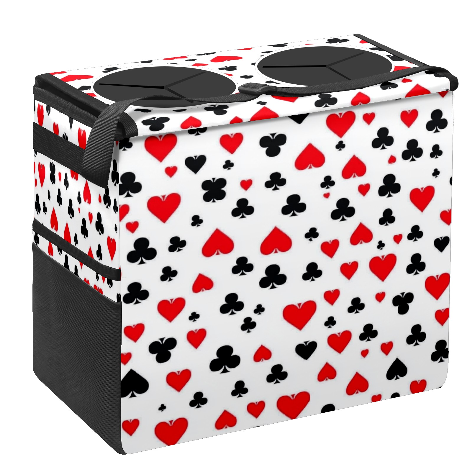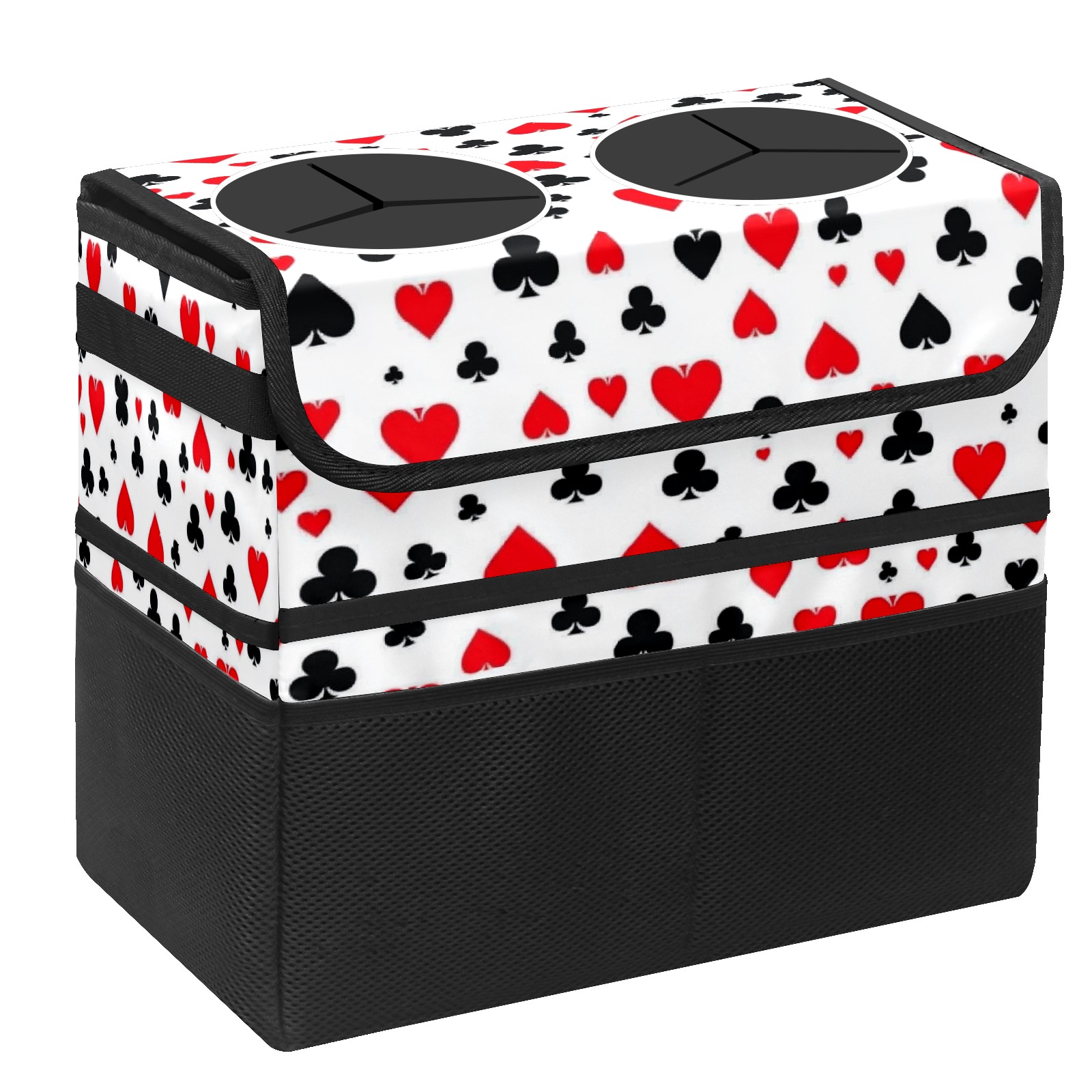 Car Trash Can with Lid, Portable Hanging Automotive Garbage Bin for Vehicles, Leakproof Waste Bag Container for SUV Truck Van Interior Auto Travel Road Trips(Scattered Playing Cards)