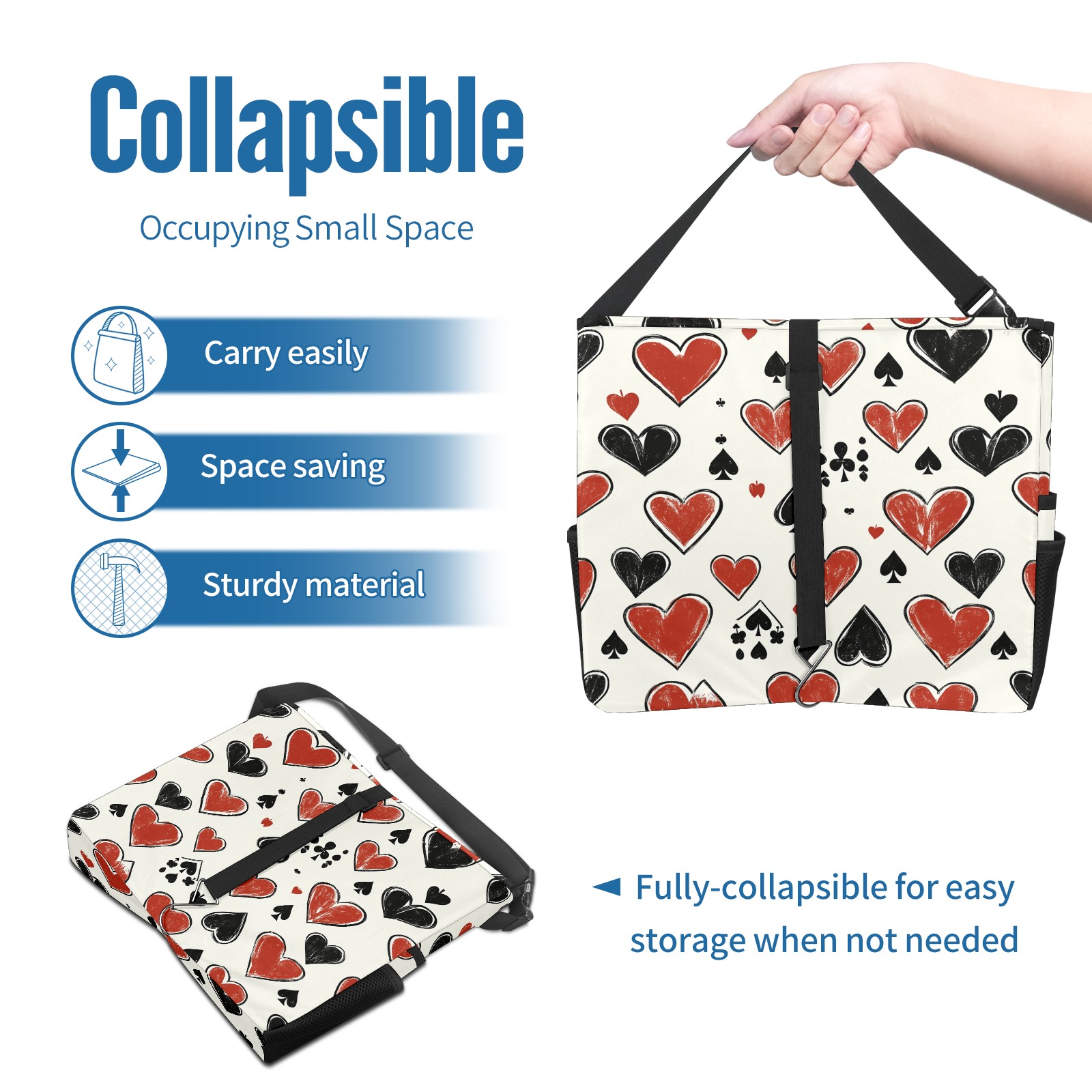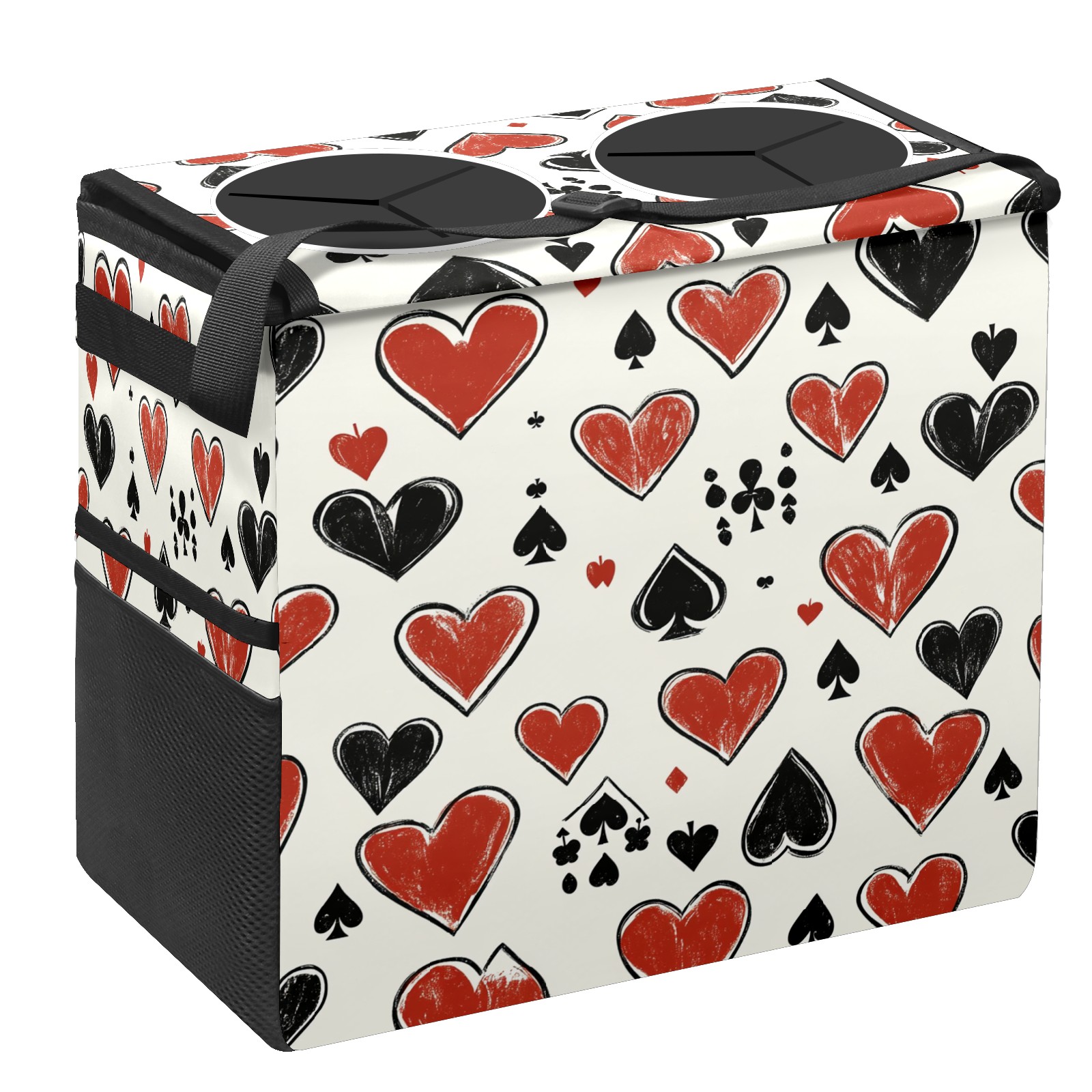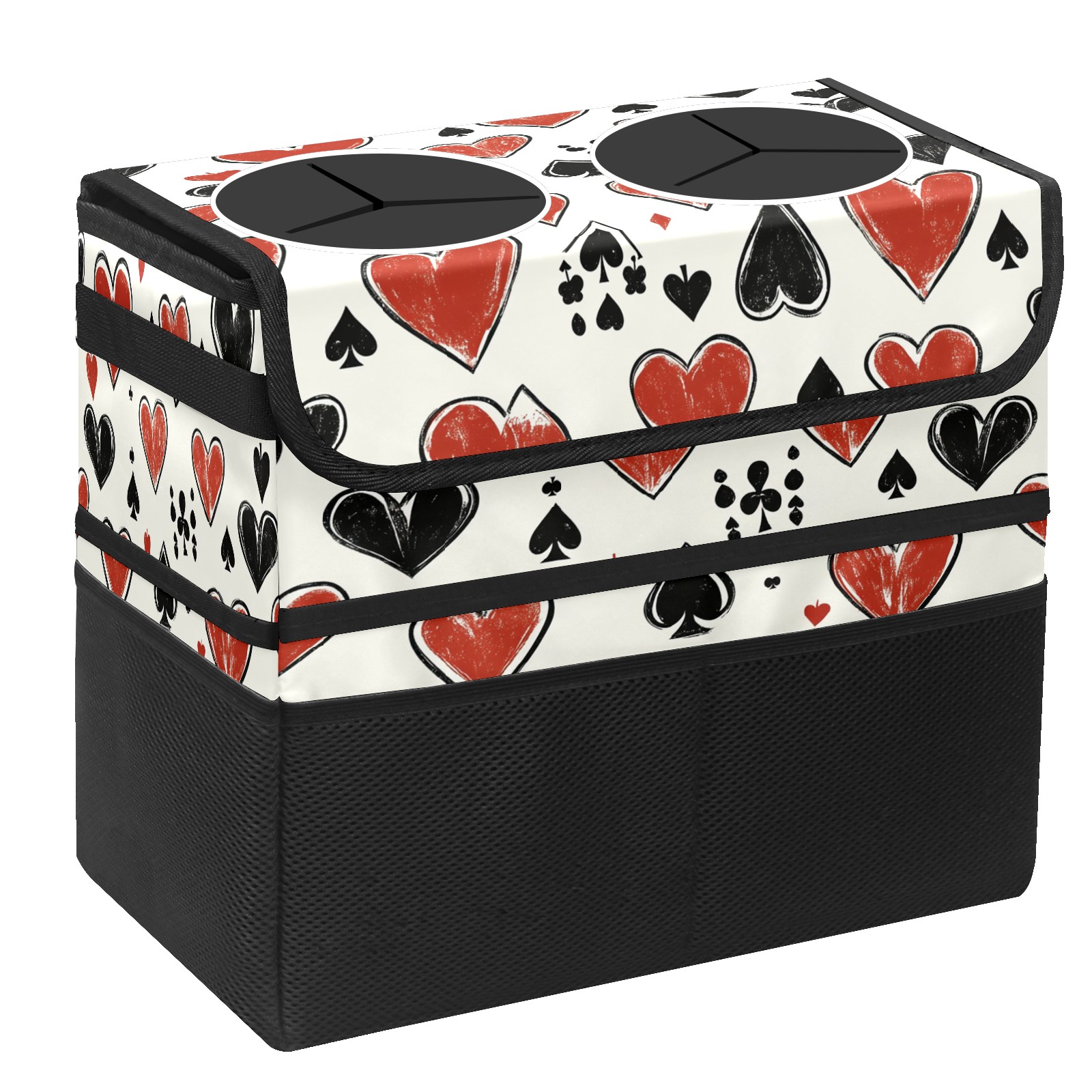 Car Trash Can with Lid, Portable Hanging Automotive Garbage Bin for Vehicles, Leakproof Waste Bag Container for SUV Truck Van Interior Auto Travel Road Trips(Hand-drawn Playing Cards)