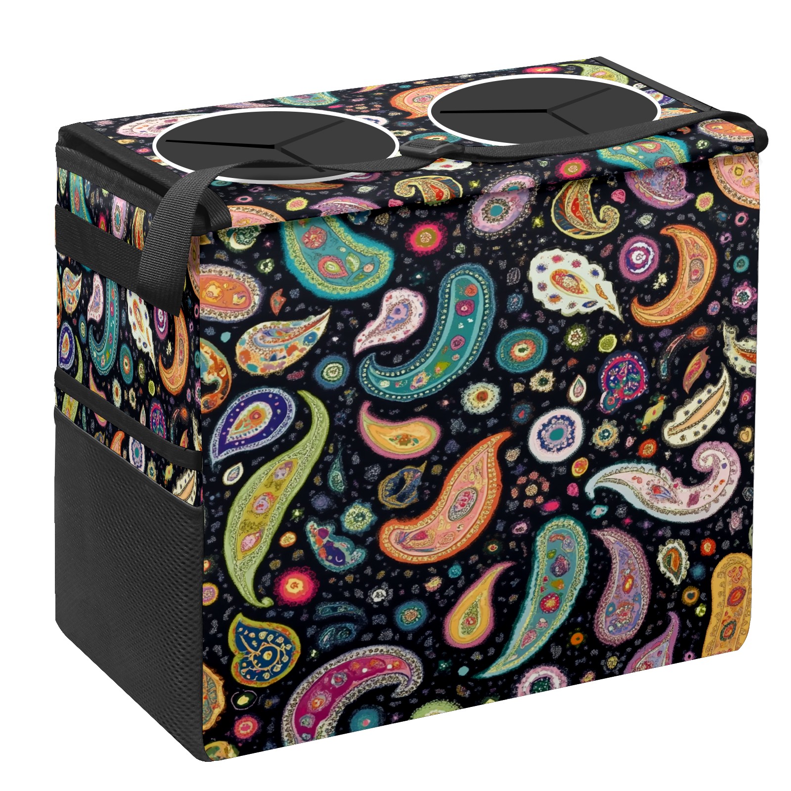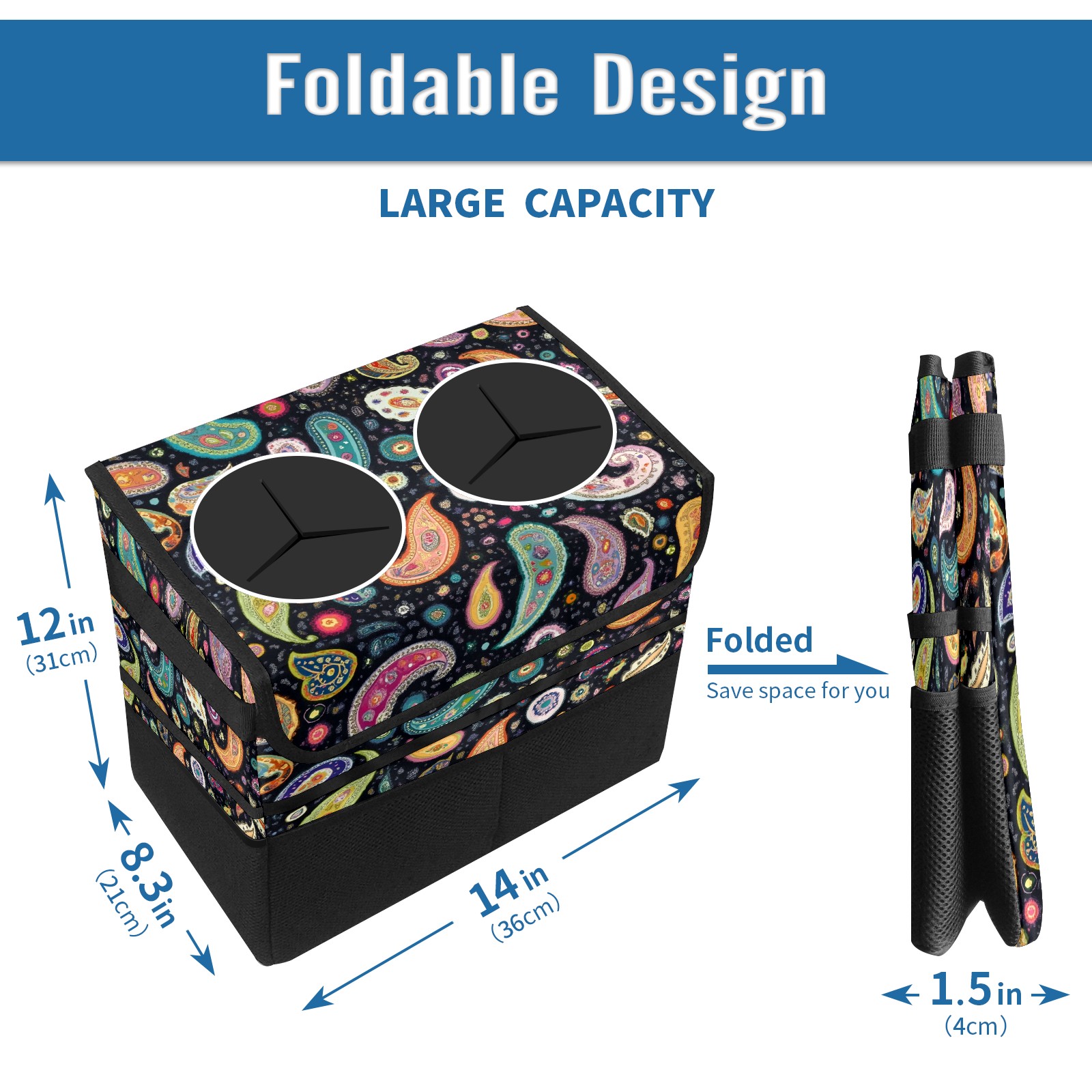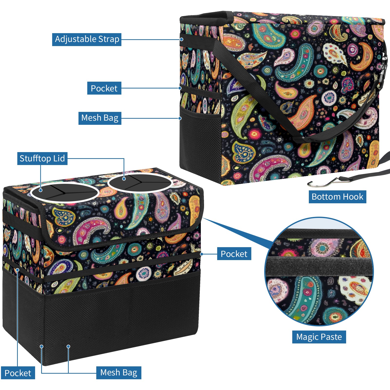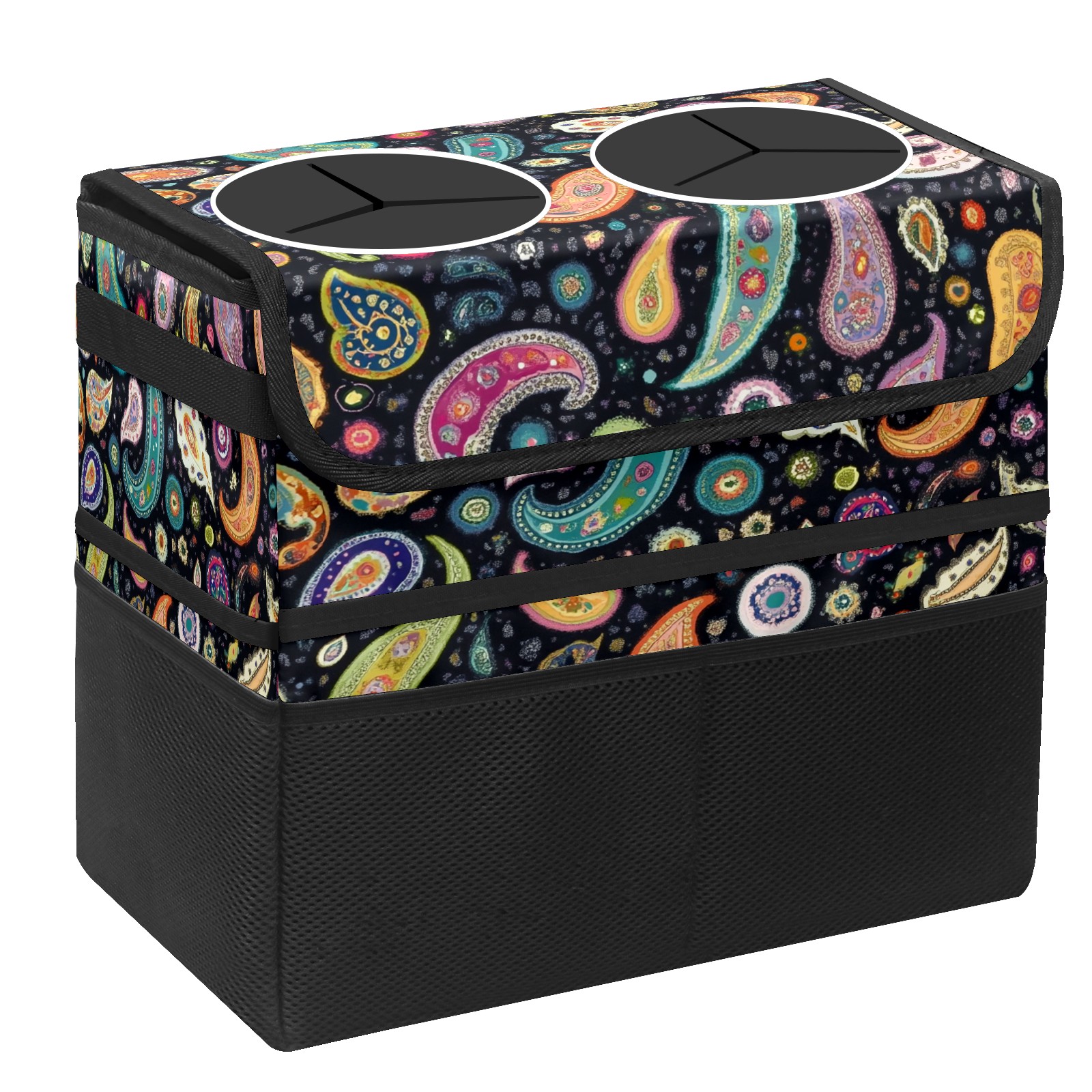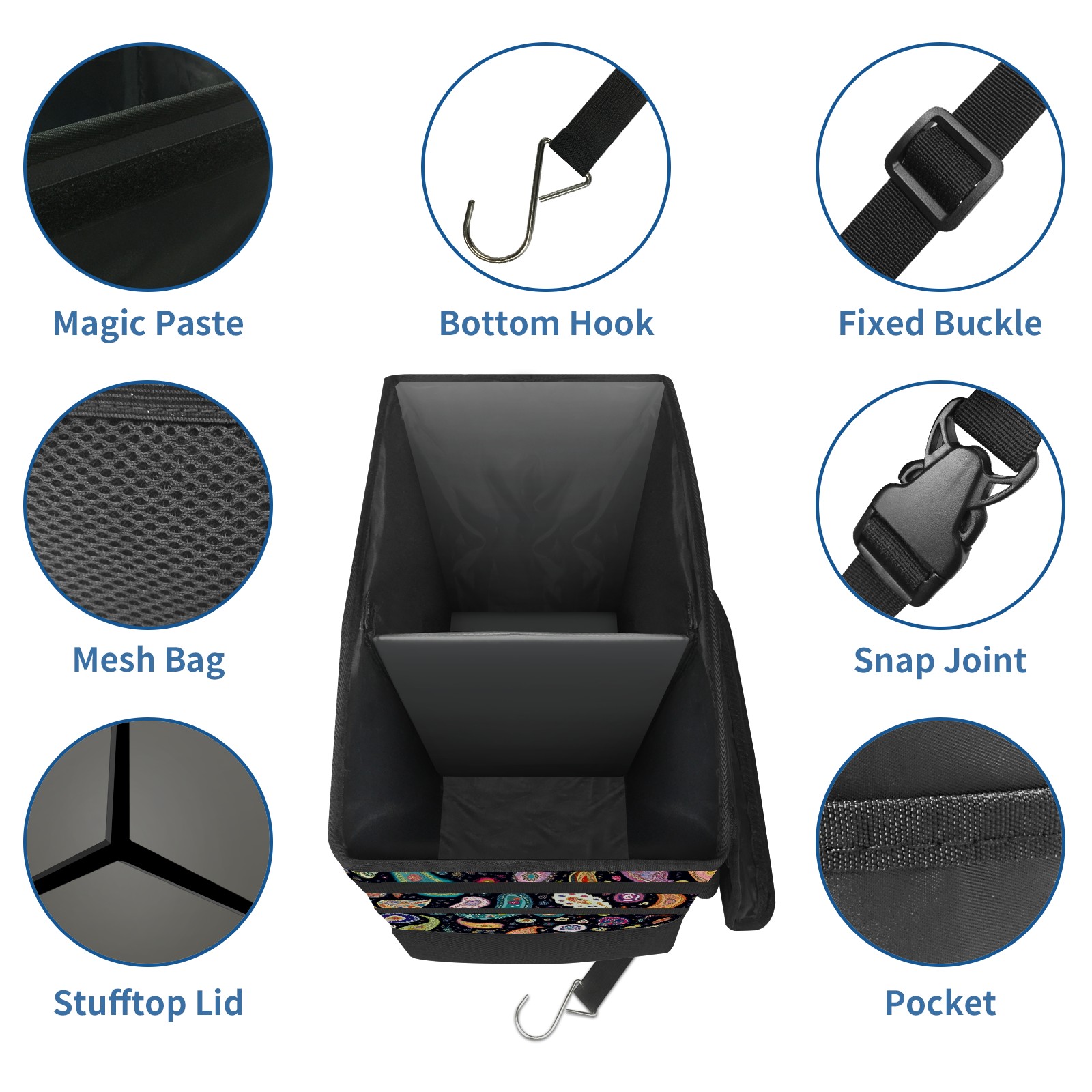 Car Trash Can with Lid, Portable Hanging Automotive Garbage Bin for Vehicles, Leakproof Waste Bag Container for SUV Truck Van Interior Auto Travel Road Trips(Colorful Paisley)