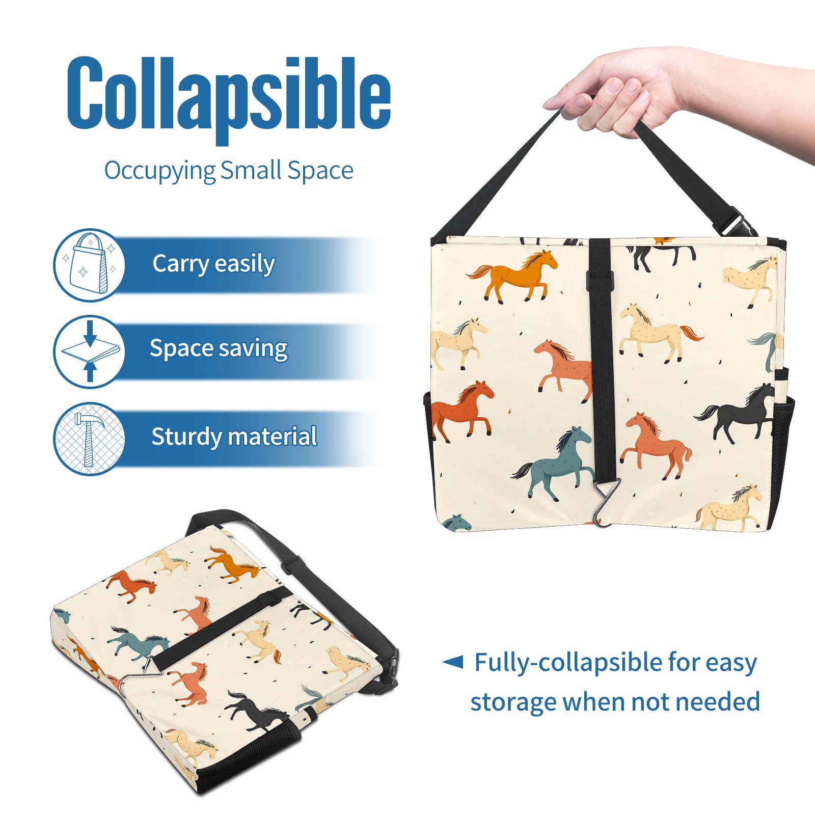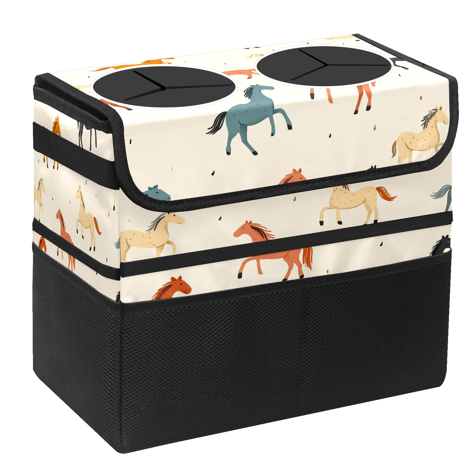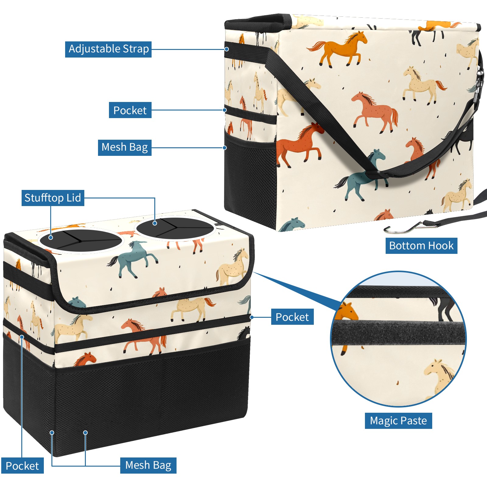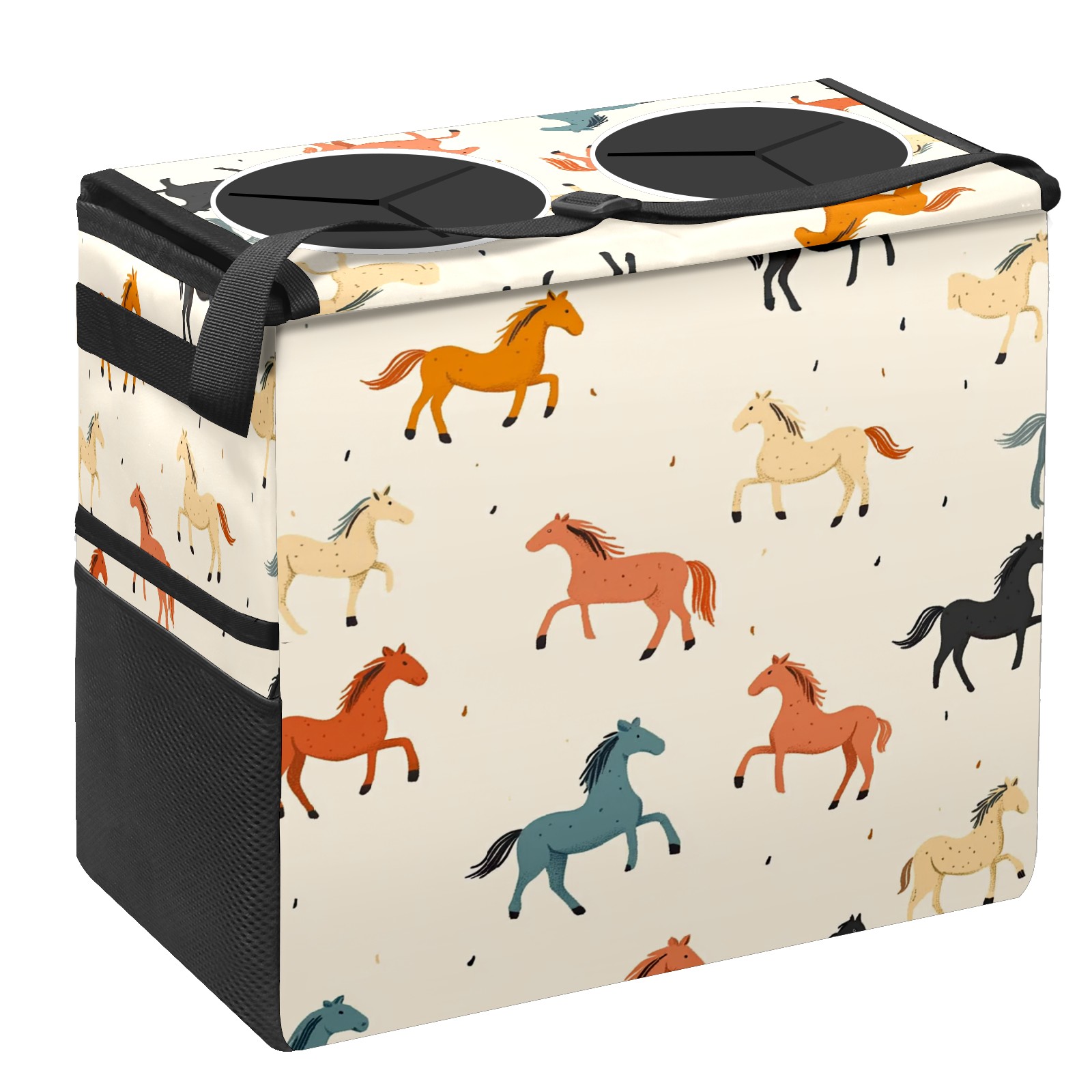 Car Trash Can with Lid, Portable Hanging Automotive Garbage Bin for Vehicles, Leakproof Waste Bag Container for SUV Truck Van Interior Auto Travel Road Trips(Horses)