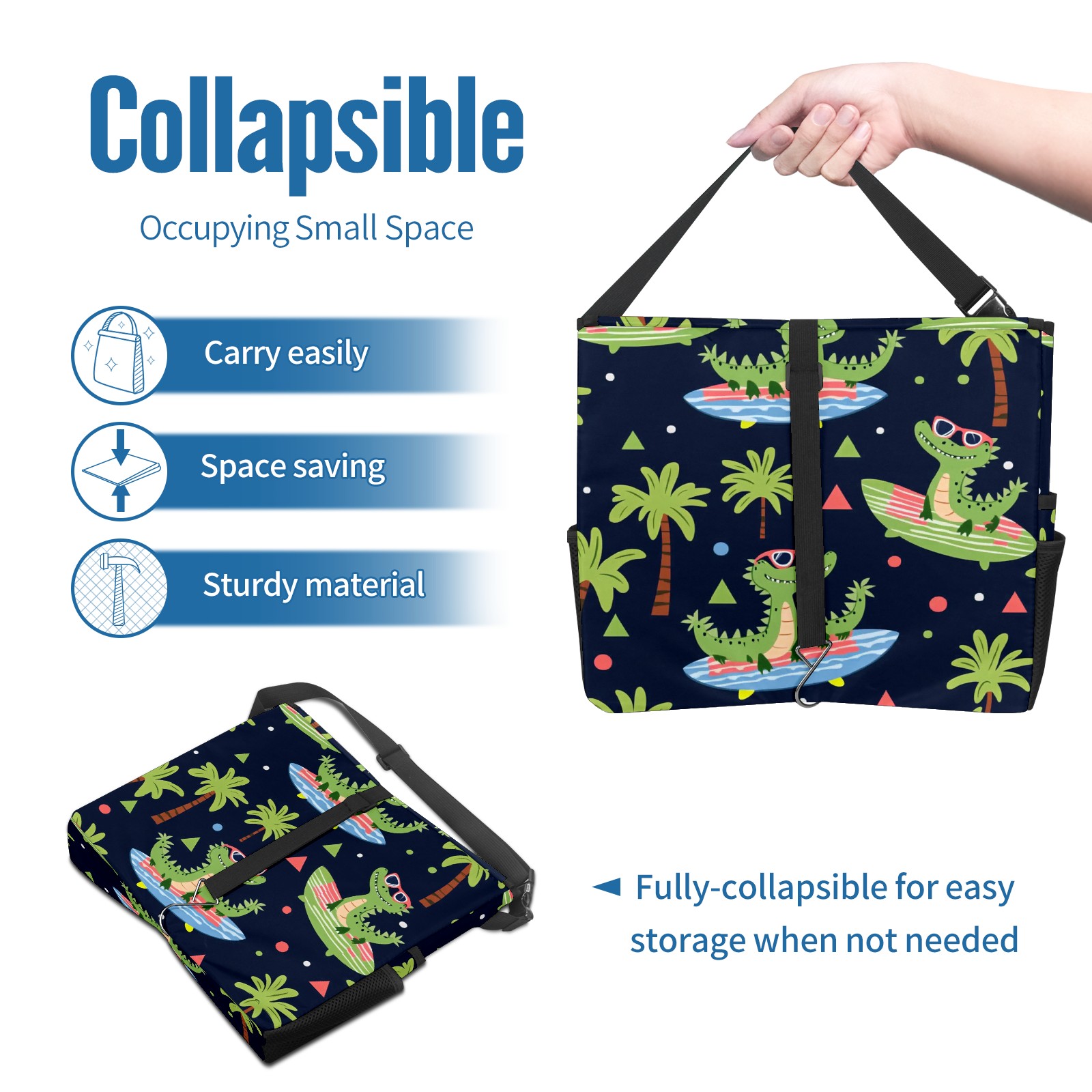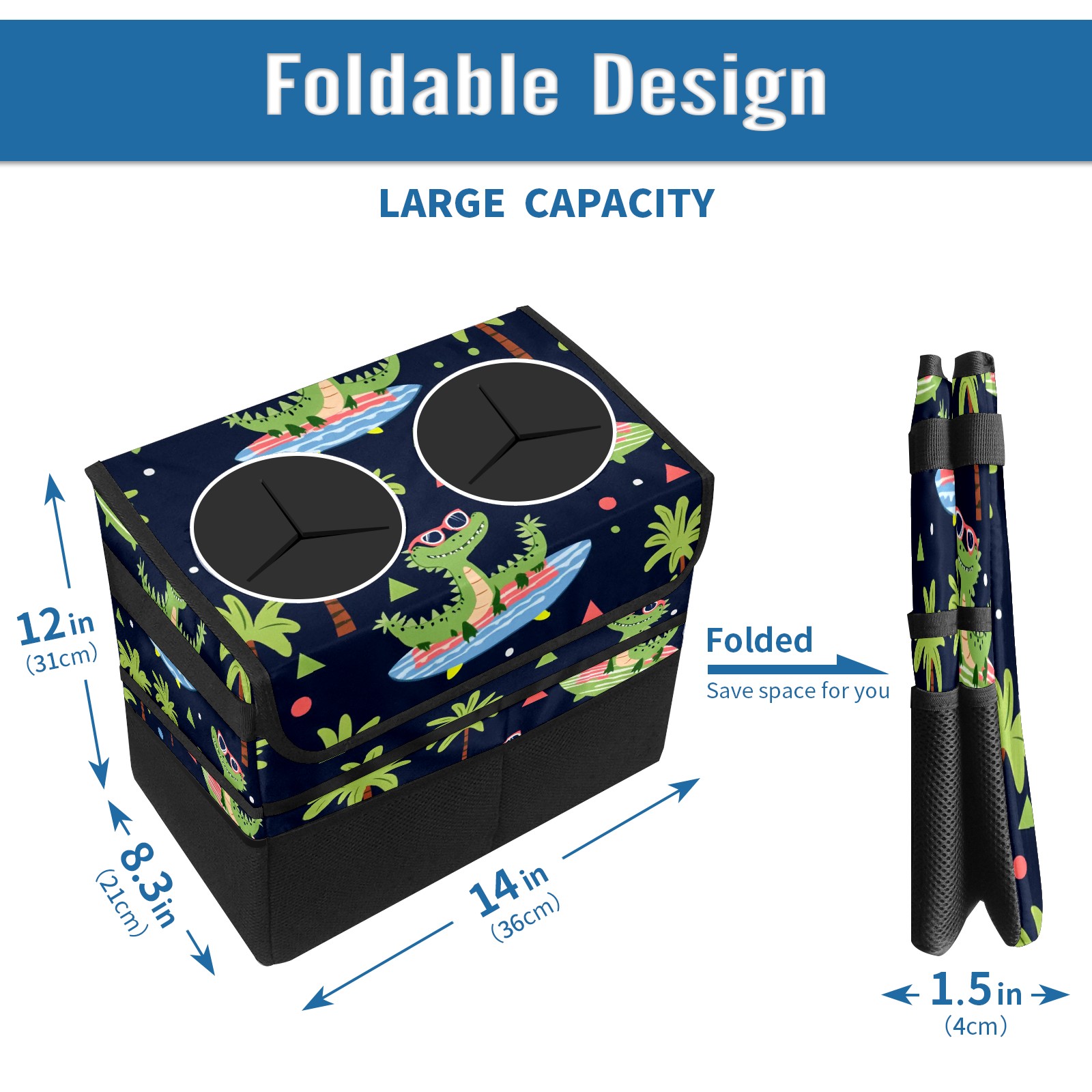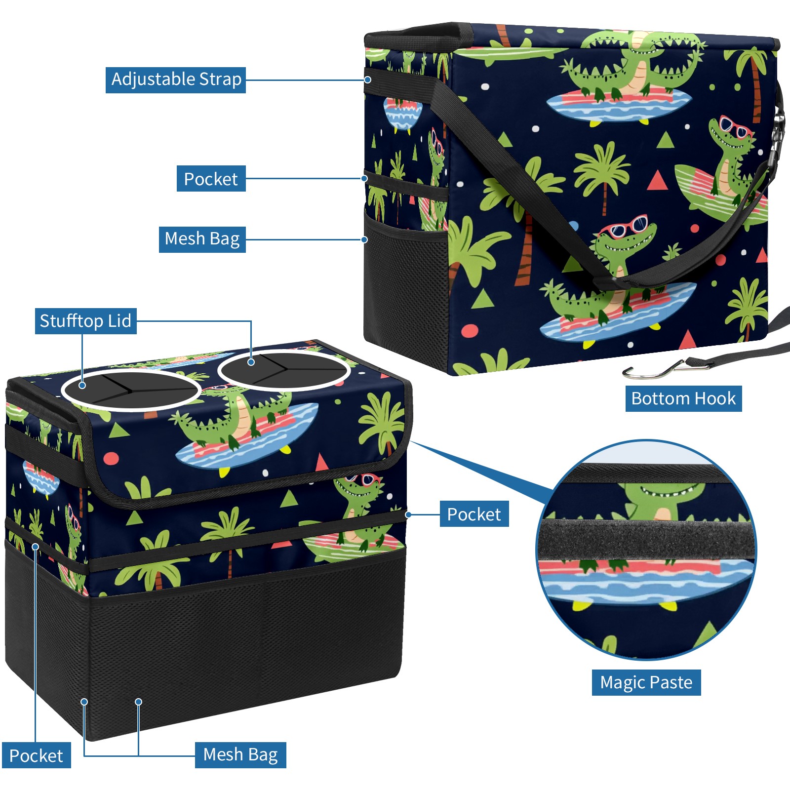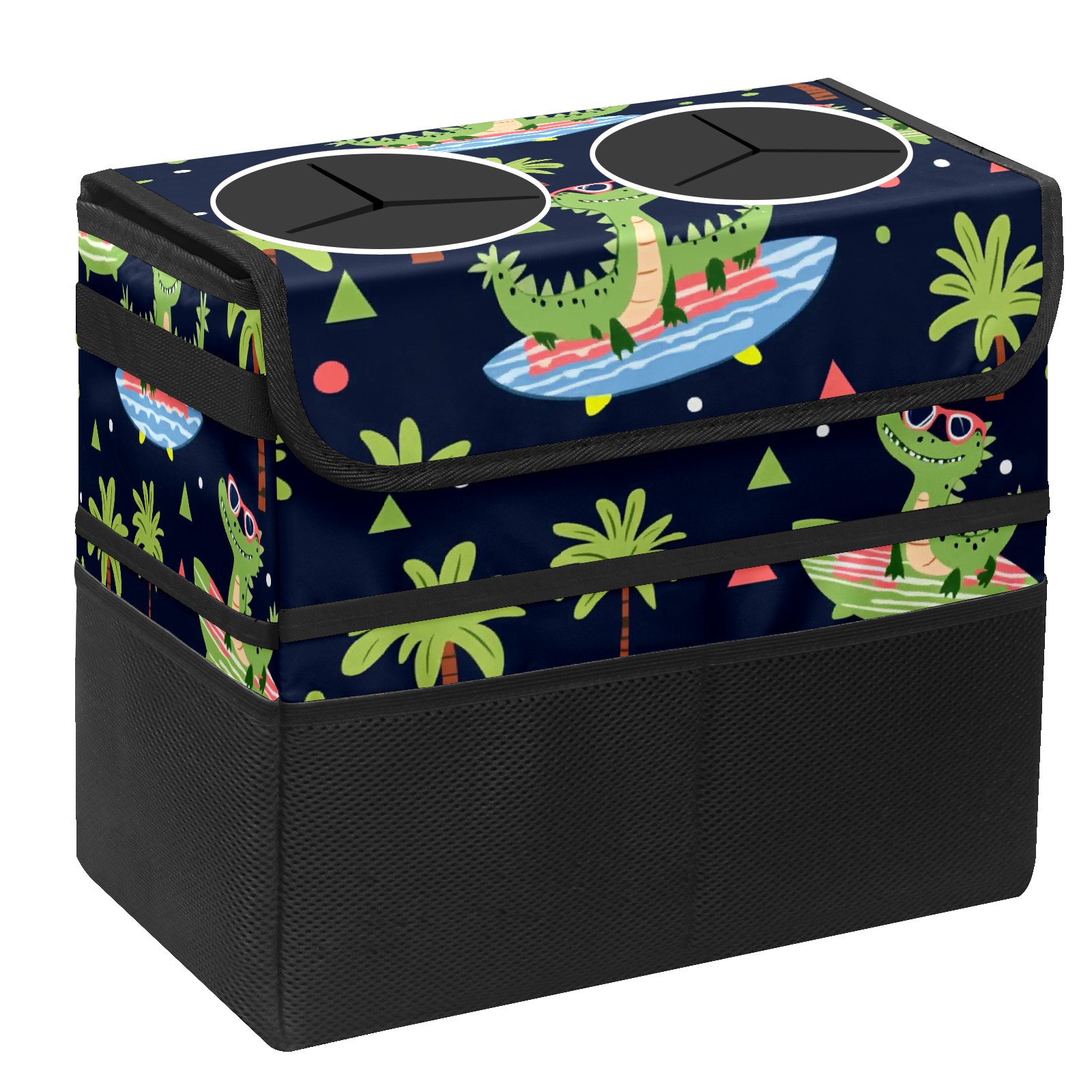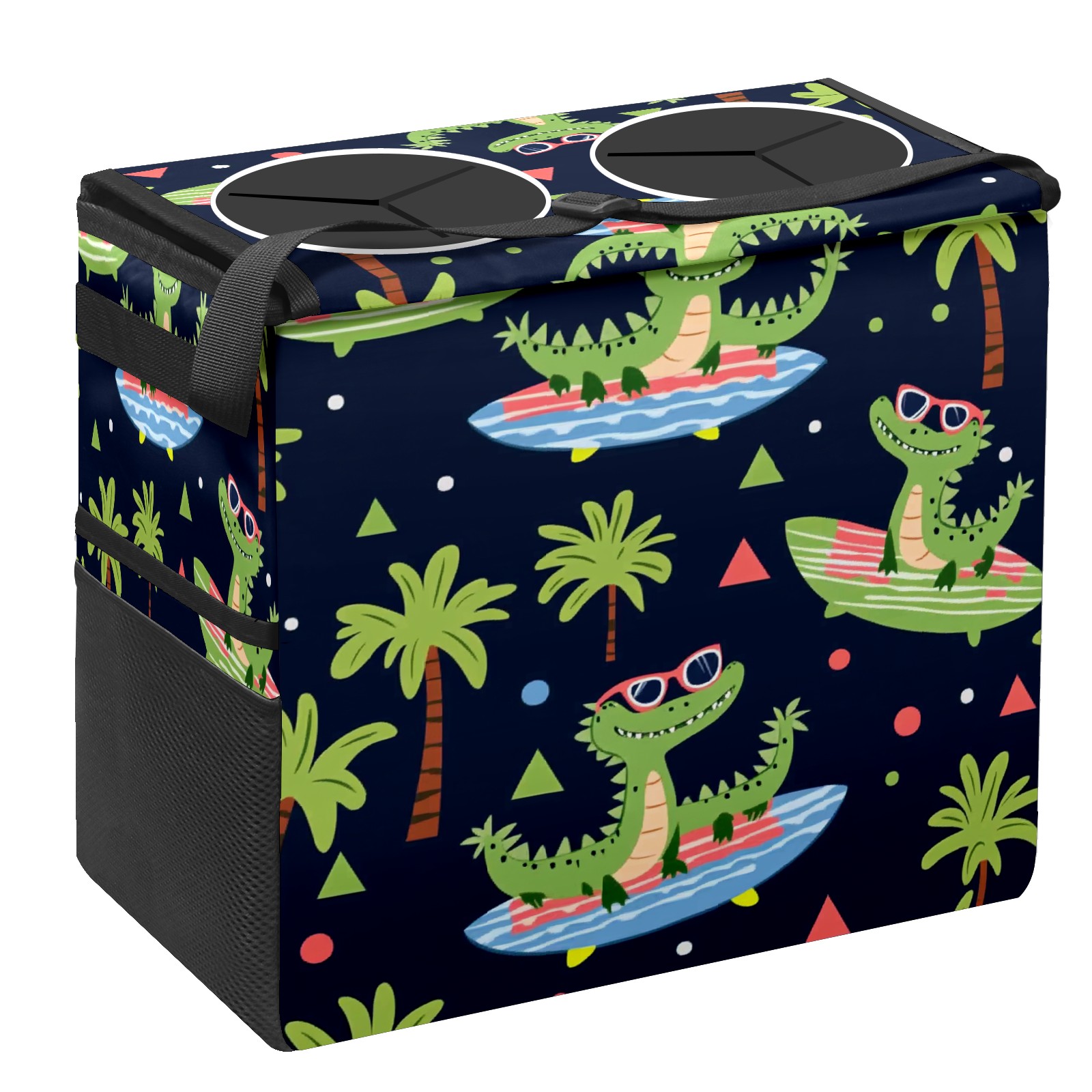 Car Trash Can with Lid, Portable Hanging Automotive Garbage Bin for Vehicles, Leakproof Waste Bag Container for SUV Truck Van Interior Auto Travel Road Trips(Crocodiles Surfing On Surfboards)