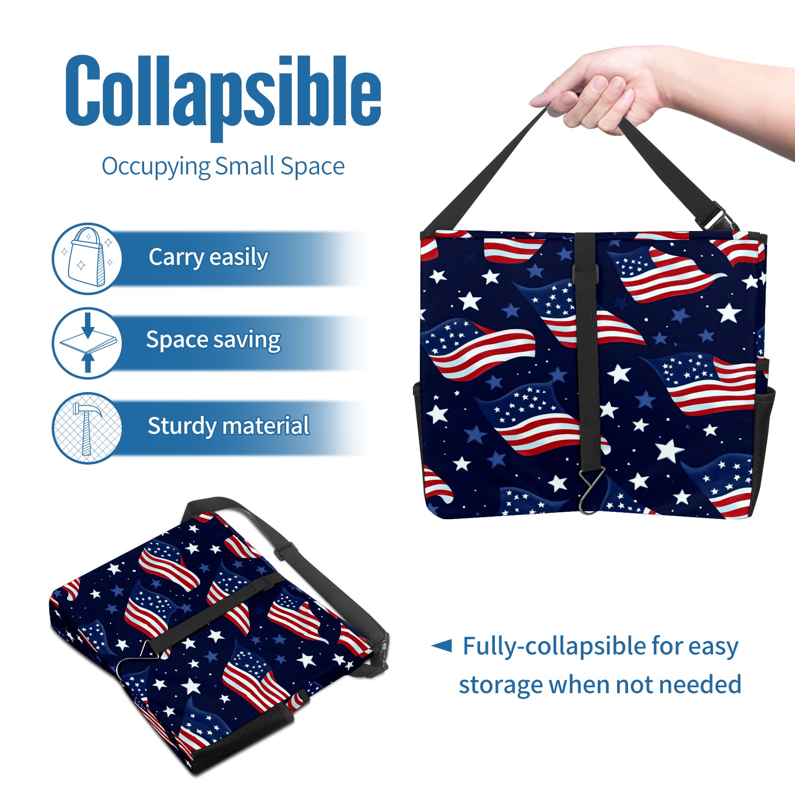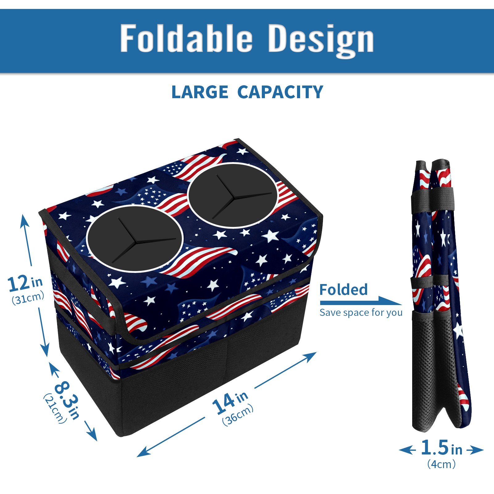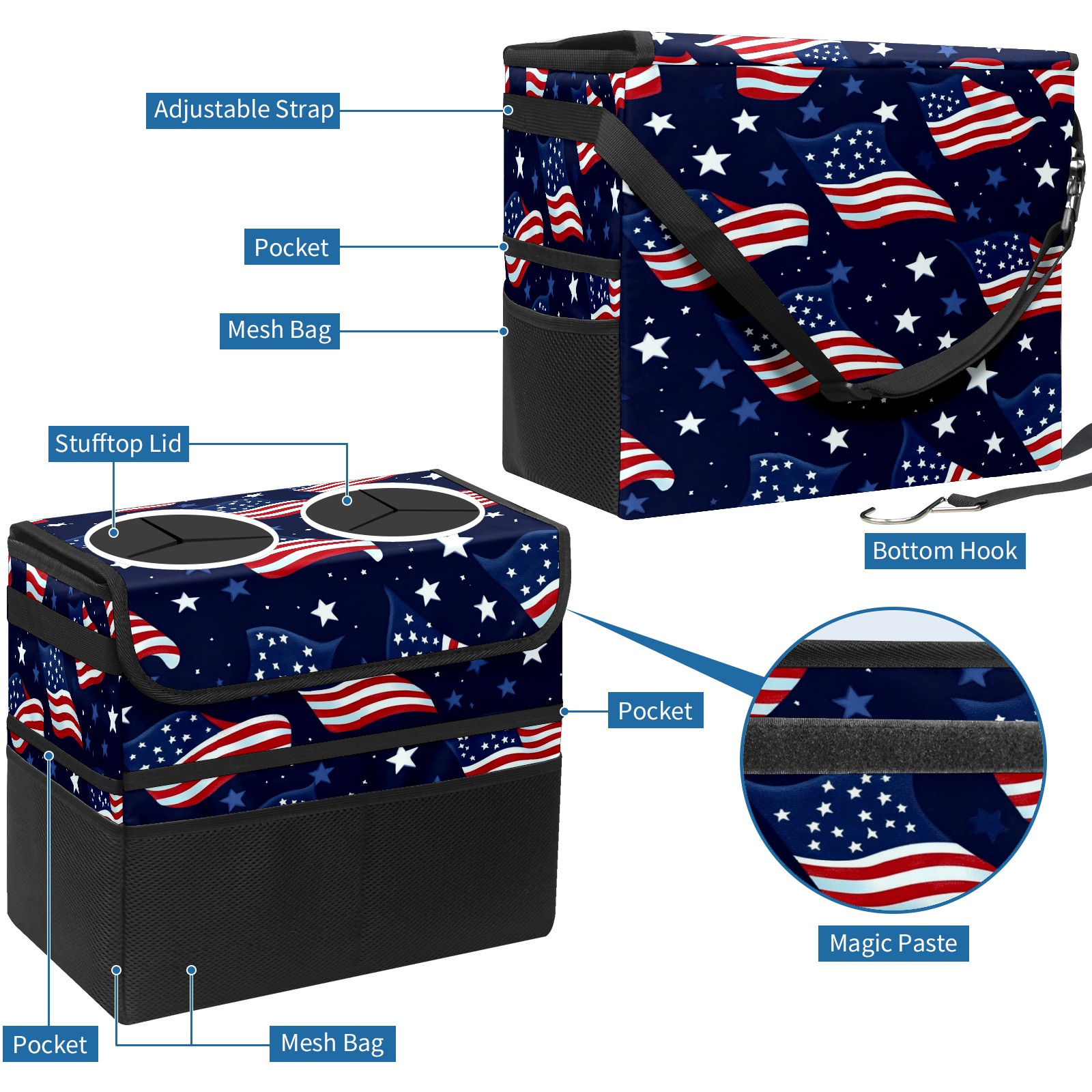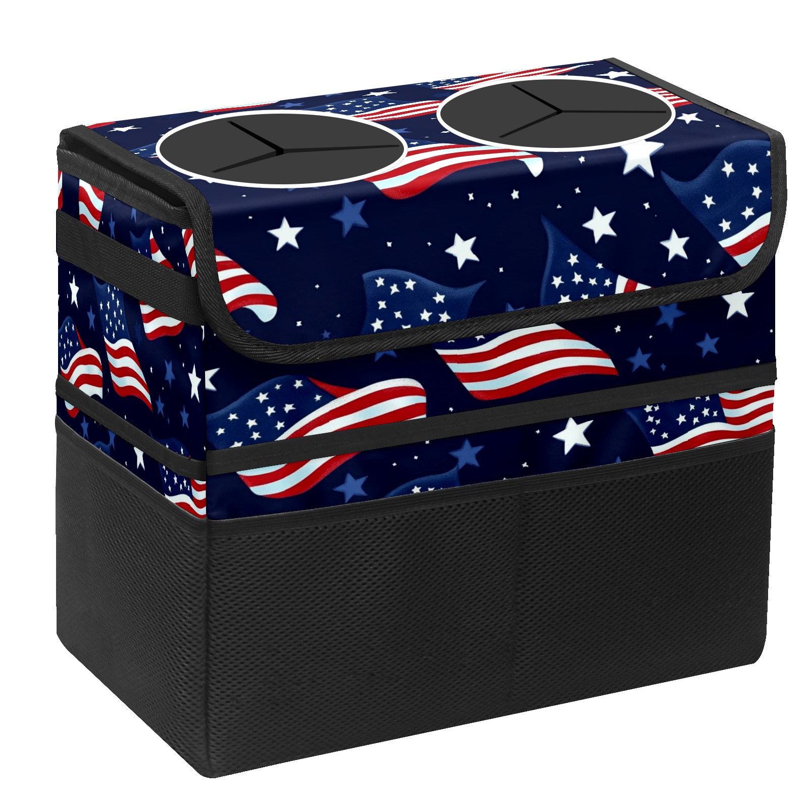 Car Trash Can with Lid, Portable Hanging Automotive Garbage Bin for Vehicles, Leakproof Waste Bag Container for SUV Truck Van Interior Auto Travel Road Trips(Realistic Waving American Flags)