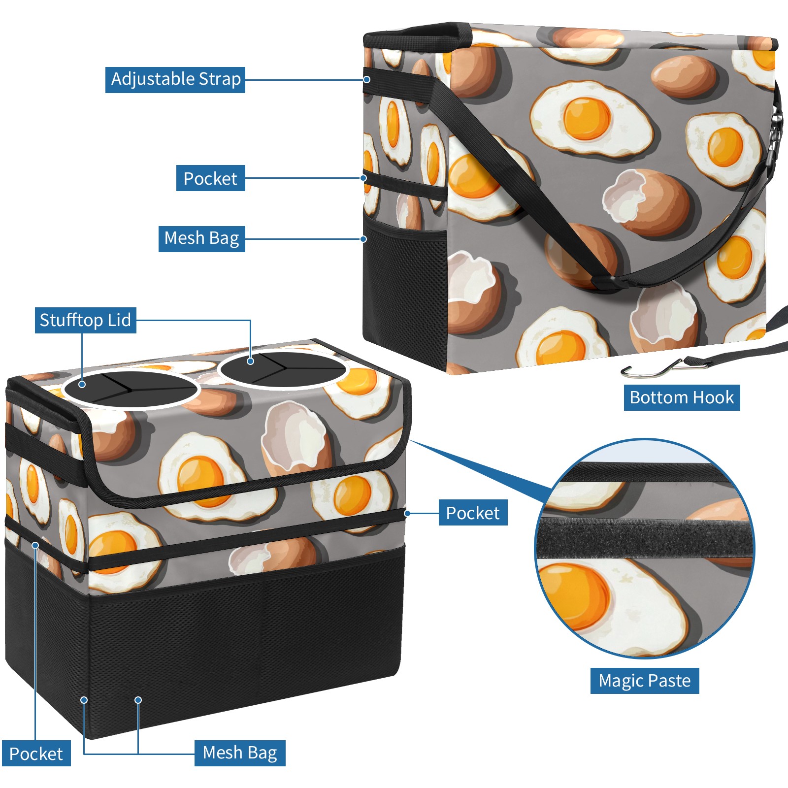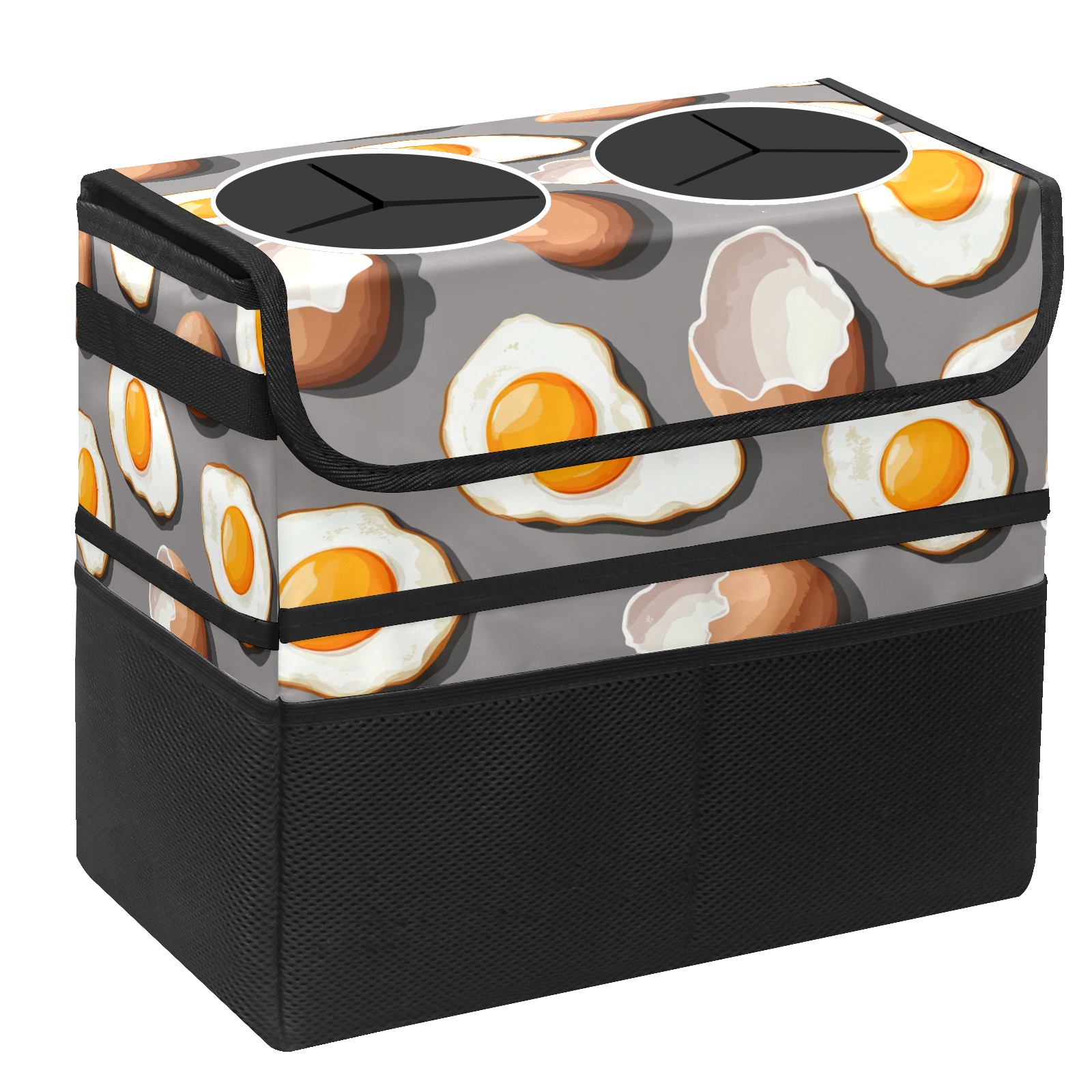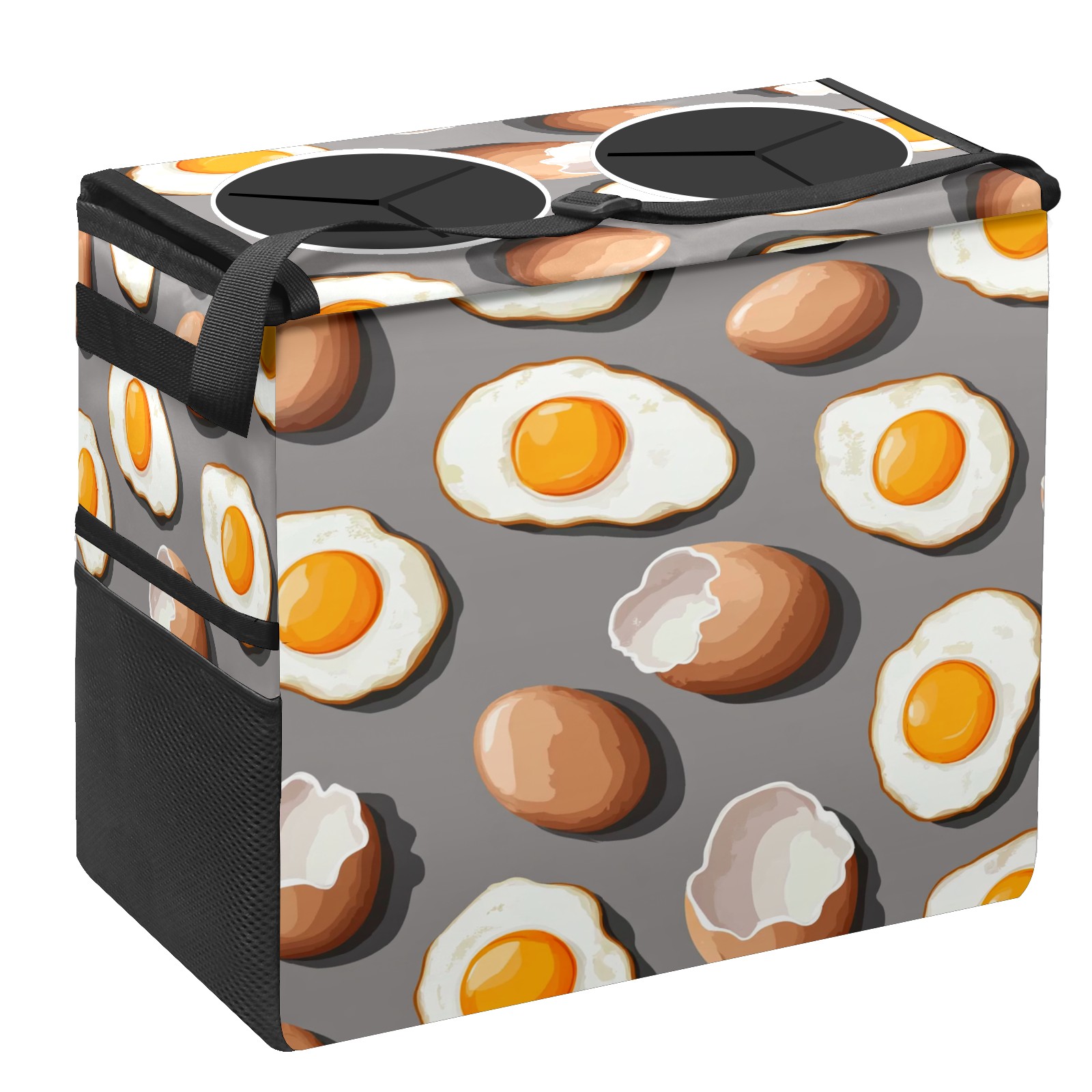 Car Trash Can with Lid, Portable Hanging Automotive Garbage Bin for Vehicles, Leakproof Waste Bag Container for SUV Truck Van Interior Auto Travel Road Trips(Fried Eggs And Eggshells)