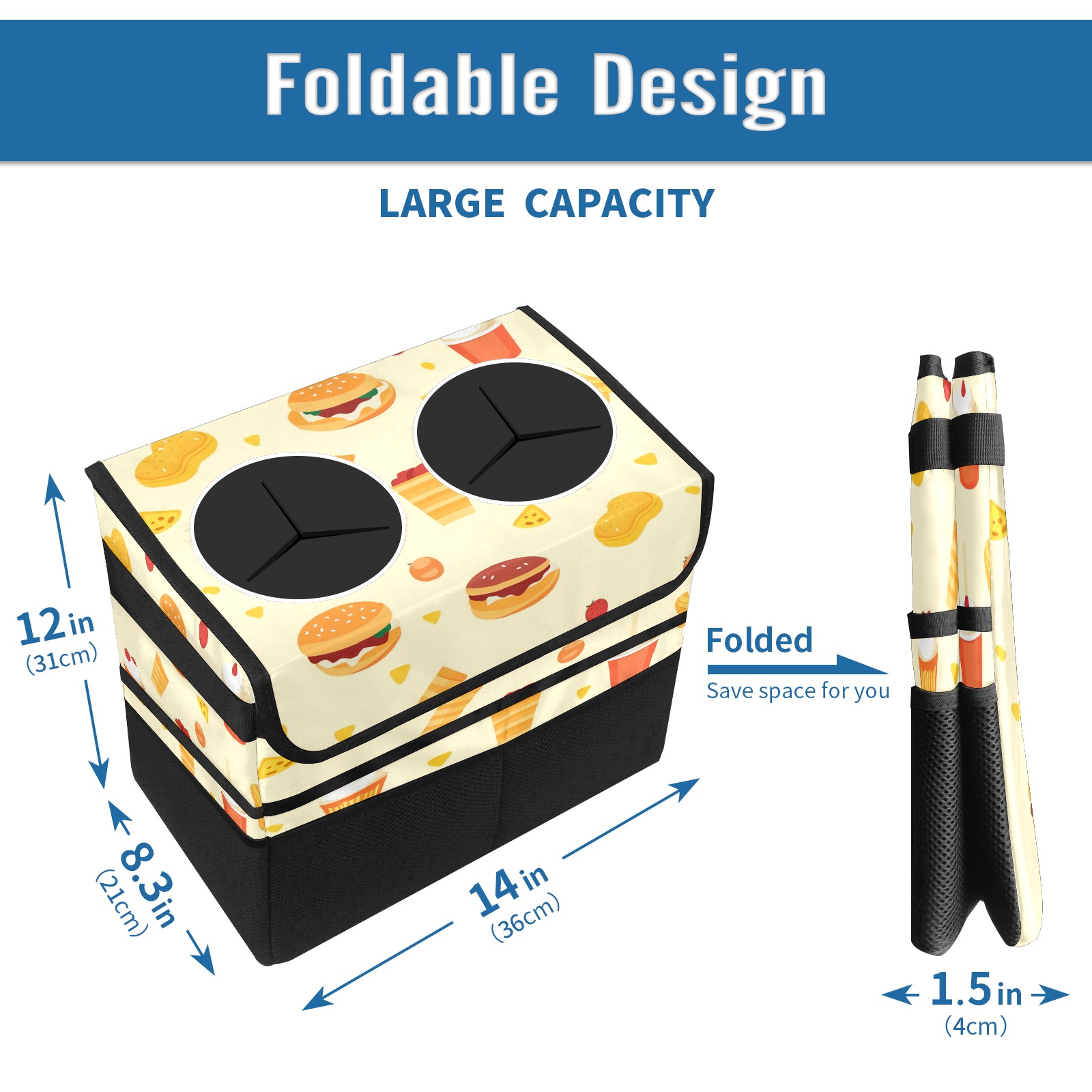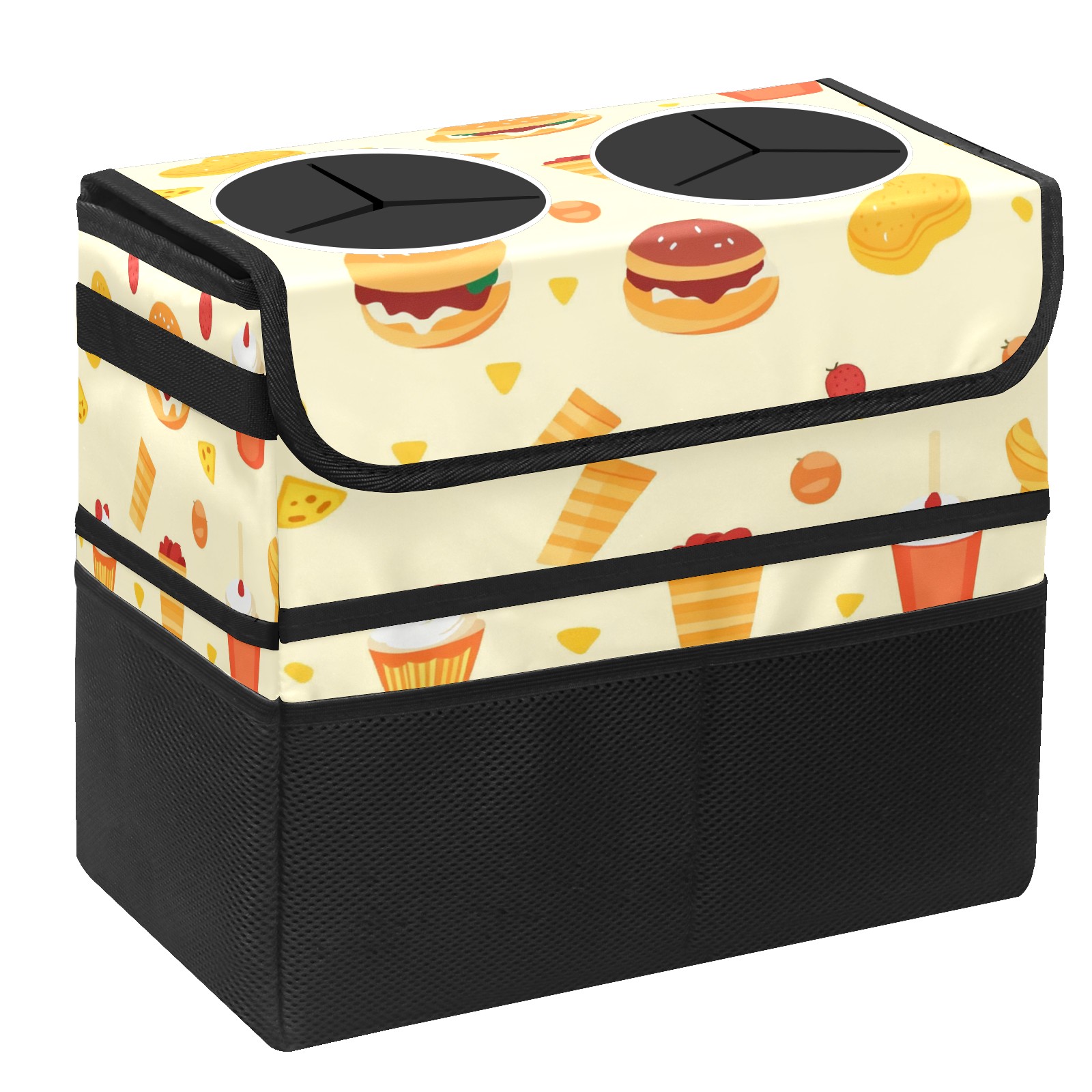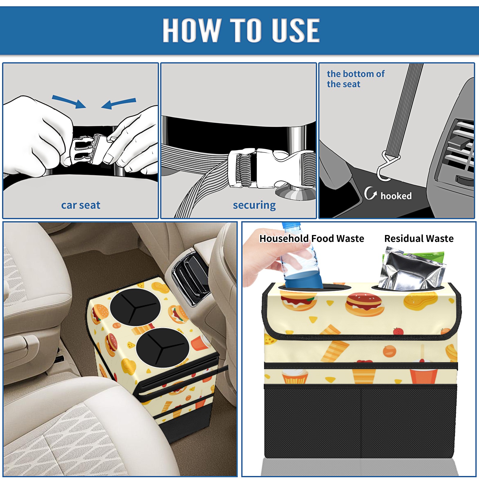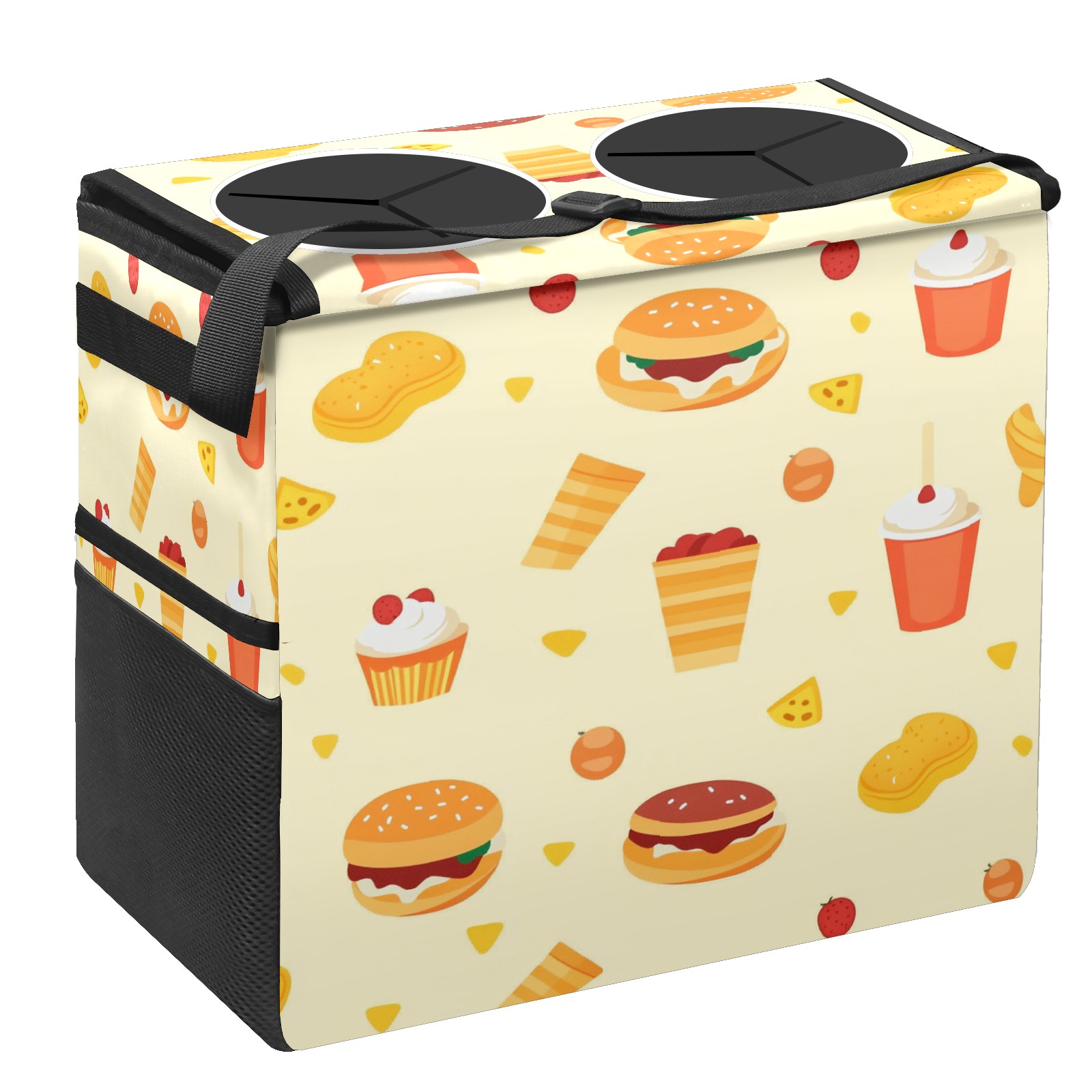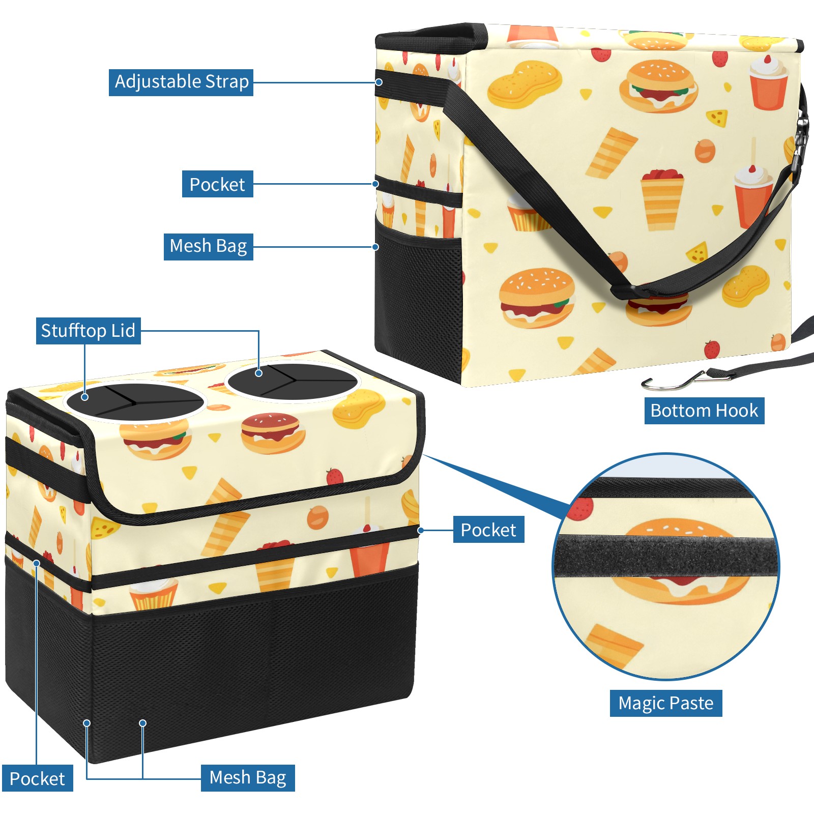 Car Trash Can with Lid, Portable Hanging Automotive Garbage Bin for Vehicles, Leakproof Waste Bag Container for SUV Truck Van Interior Auto Travel Road Trips(Fast Food Pattern)