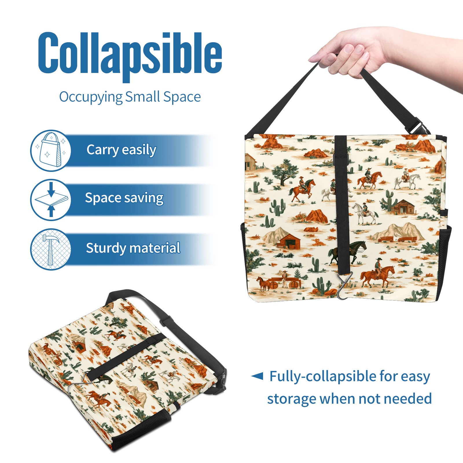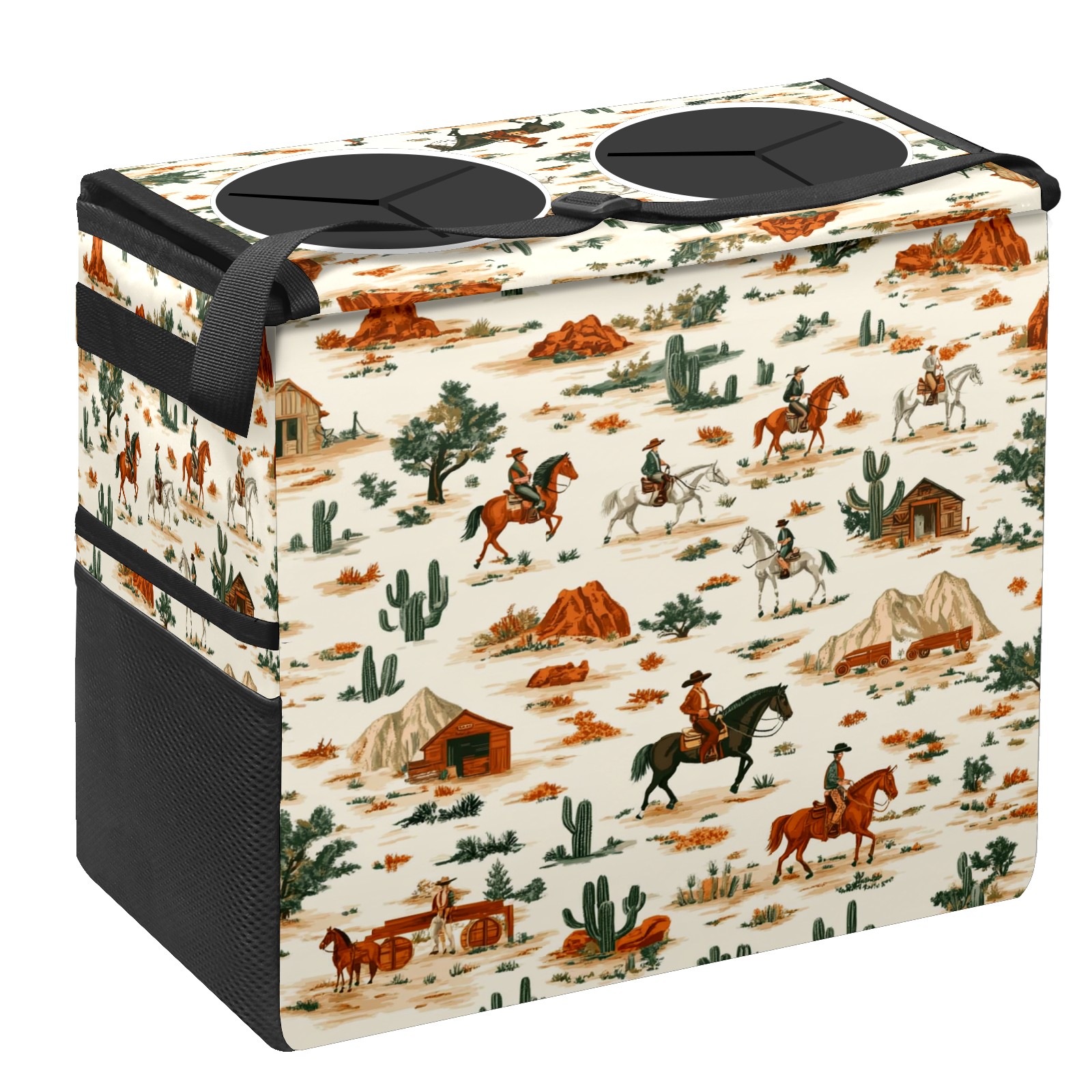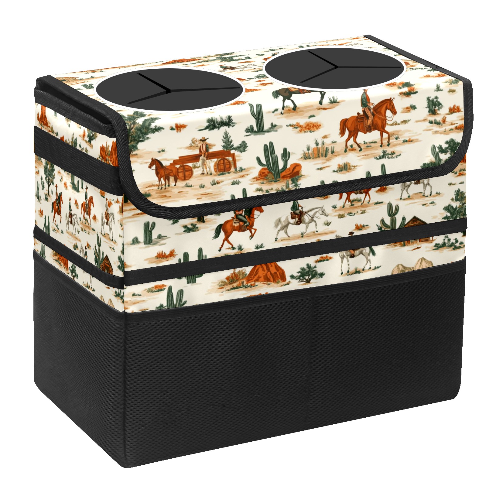 Car Trash Can with Lid, Portable Hanging Automotive Garbage Bin for Vehicles, Leakproof Waste Bag Container for SUV Truck Van Interior Auto Travel Road Trips(Western Theme Pattern)