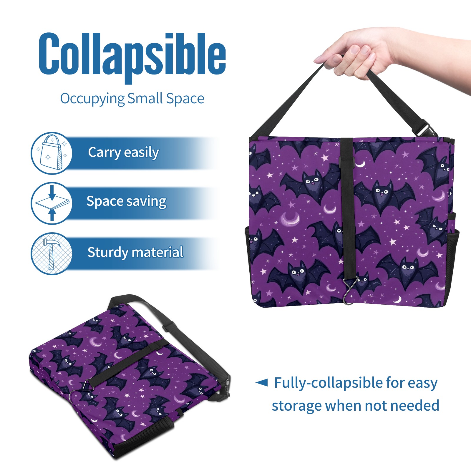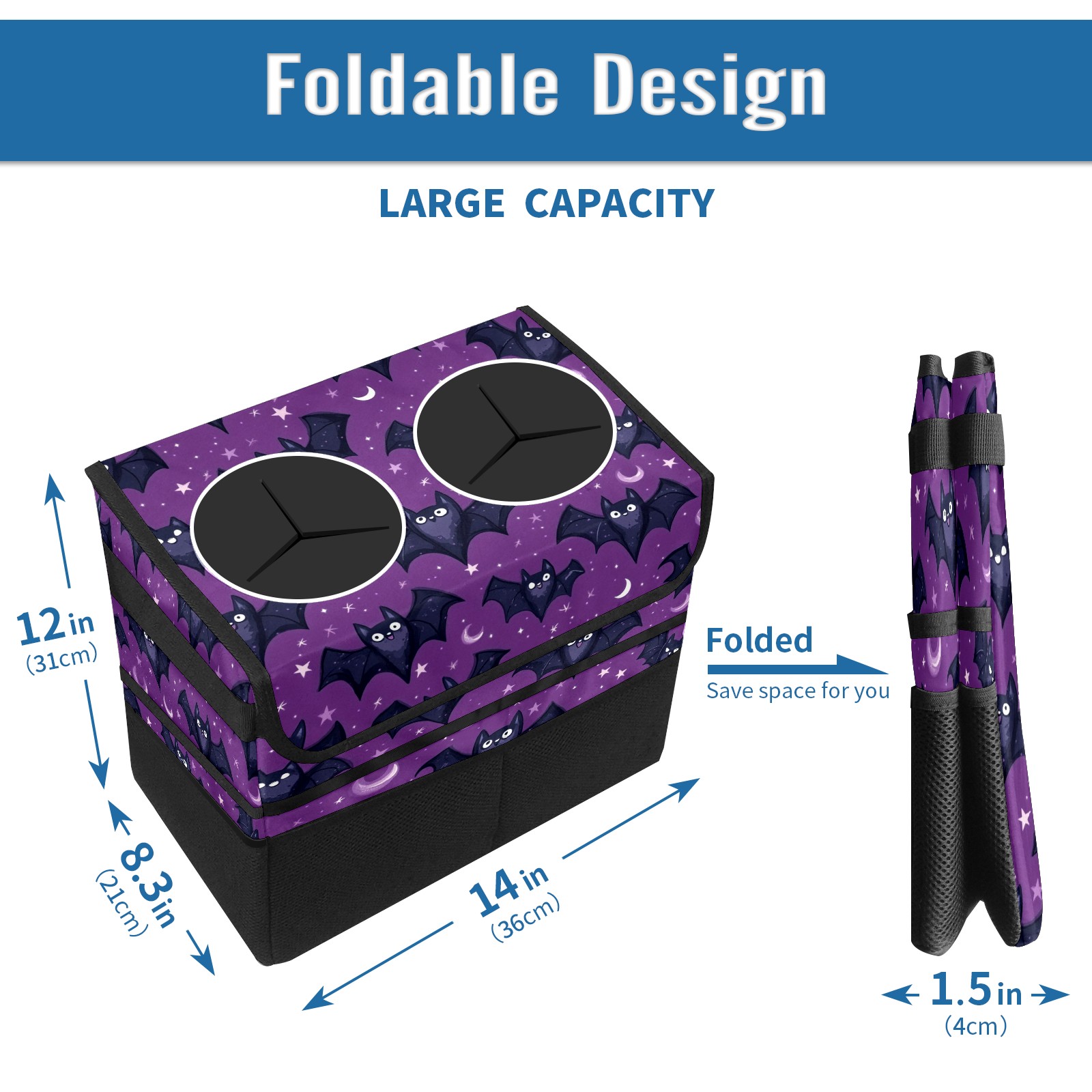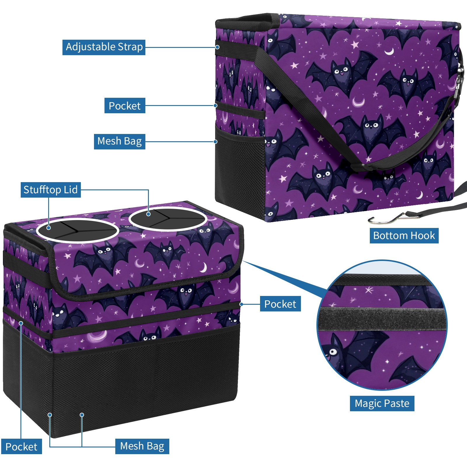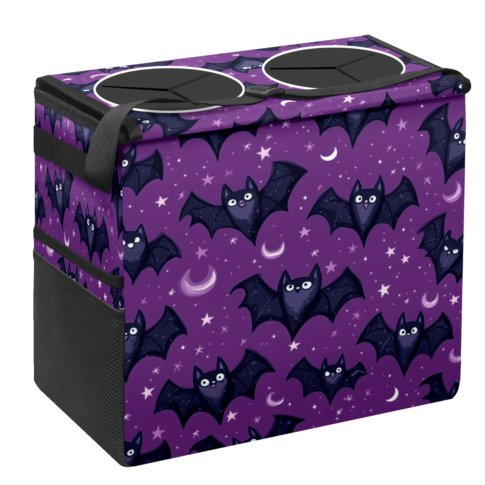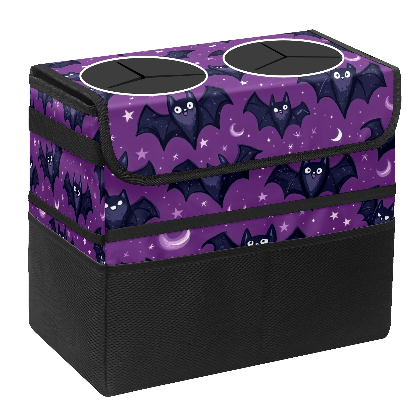 Car Trash Can with Lid, Portable Hanging Automotive Garbage Bin for Vehicles, Leakproof Waste Bag Container for SUV Truck Van Interior Auto Travel Road Trips(Bats With Tiny Stars)