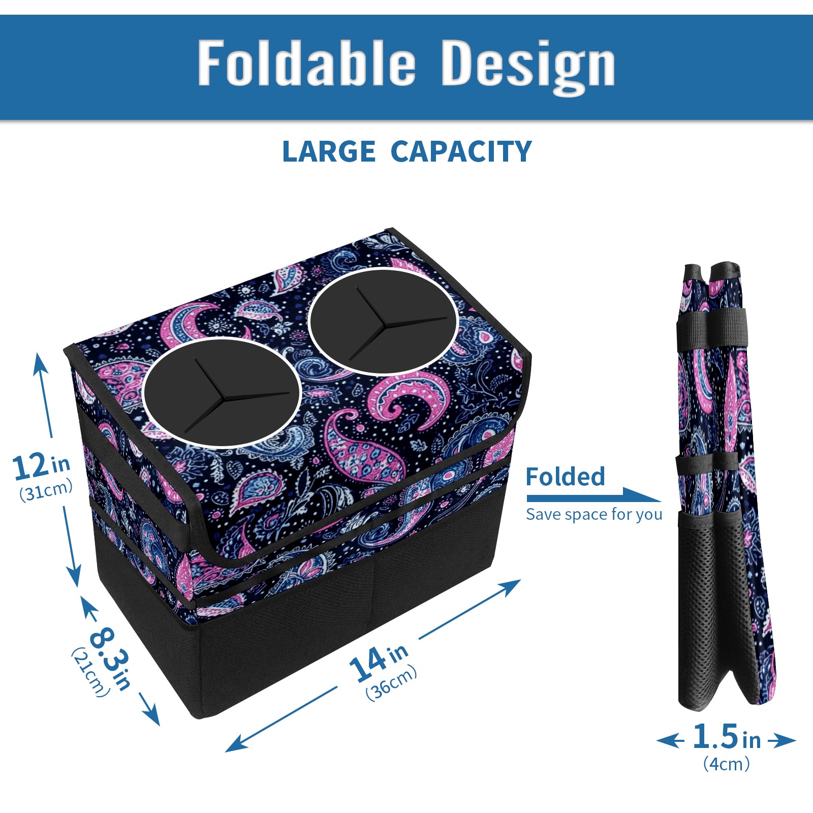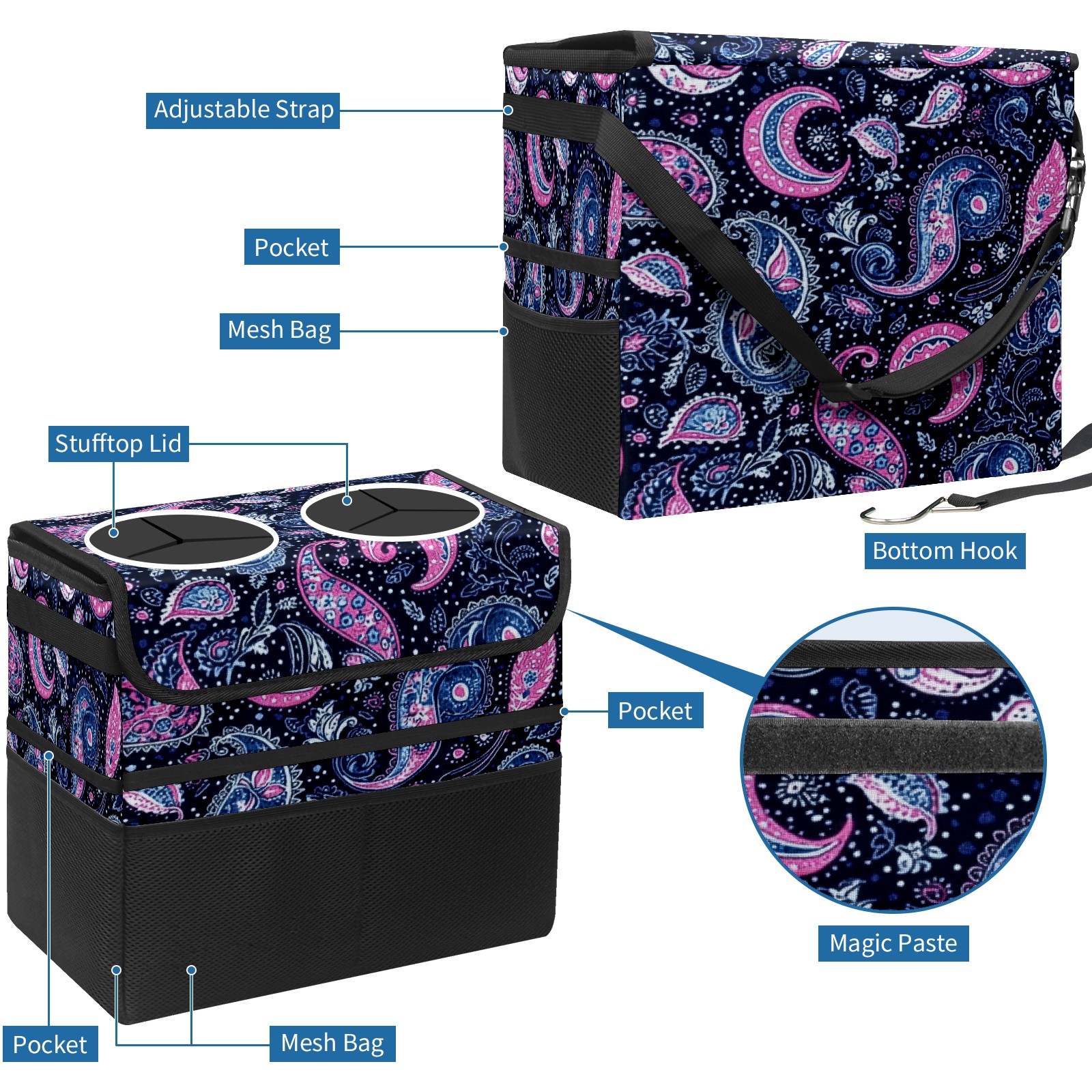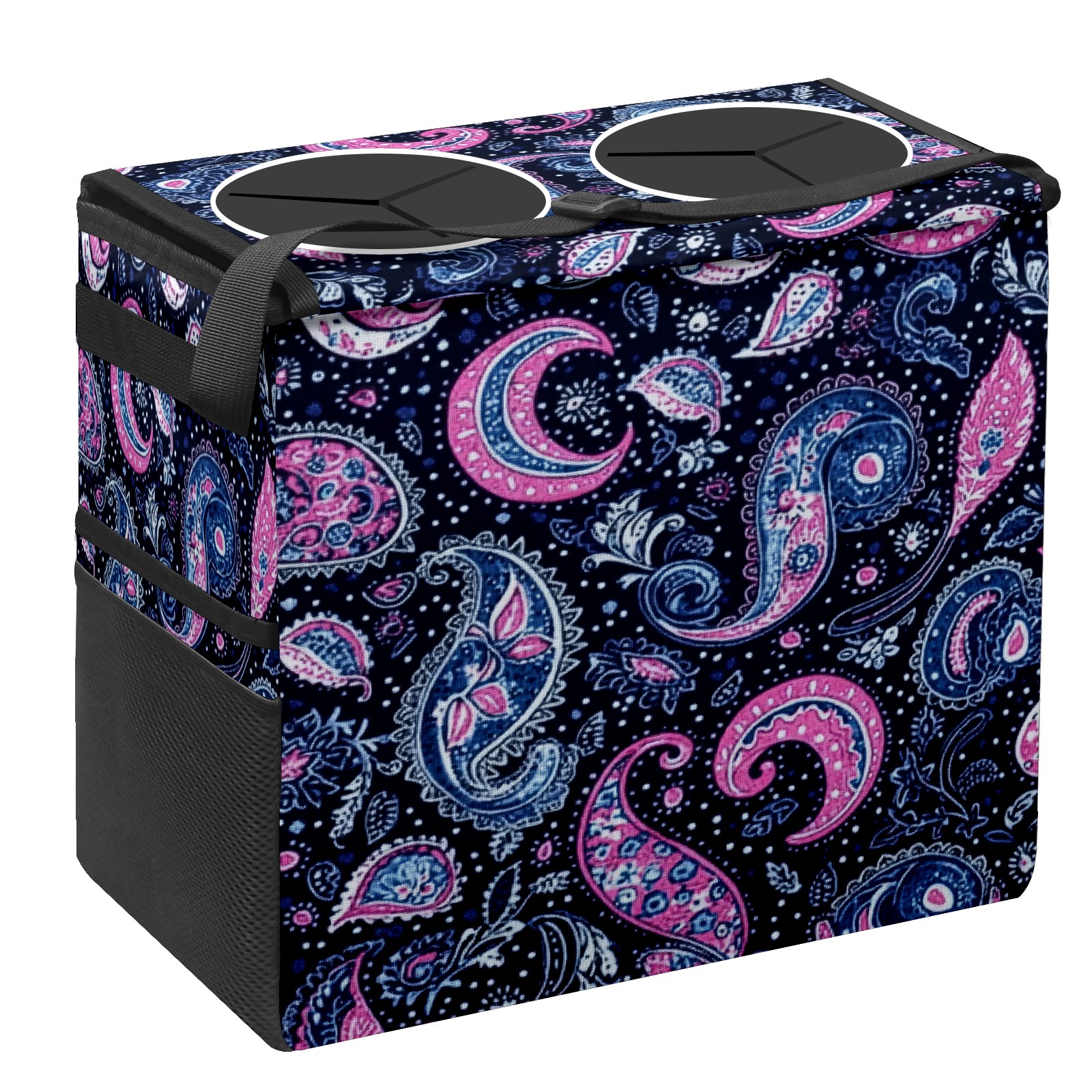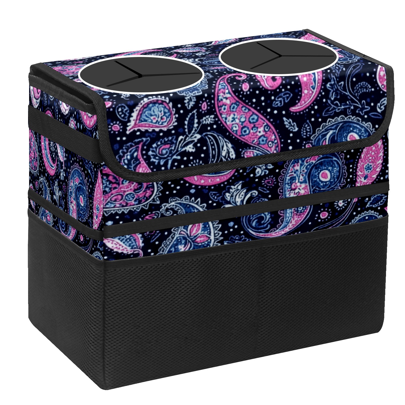 Car Trash Can with Lid, Portable Hanging Automotive Garbage Bin for Vehicles, Leakproof Waste Bag Container for SUV Truck Van Interior Auto Travel Road Trips(Blue Pink And Purple Paisley)