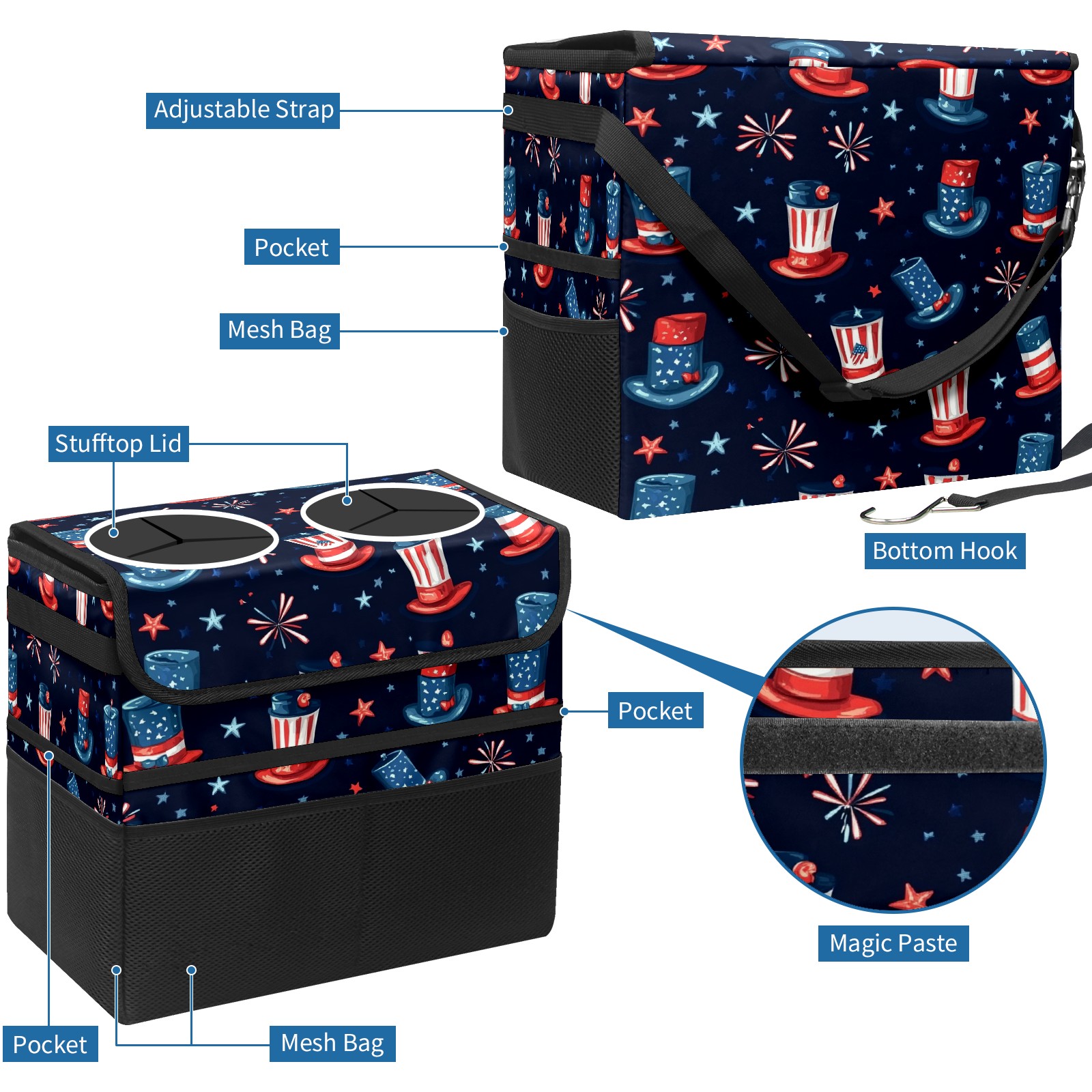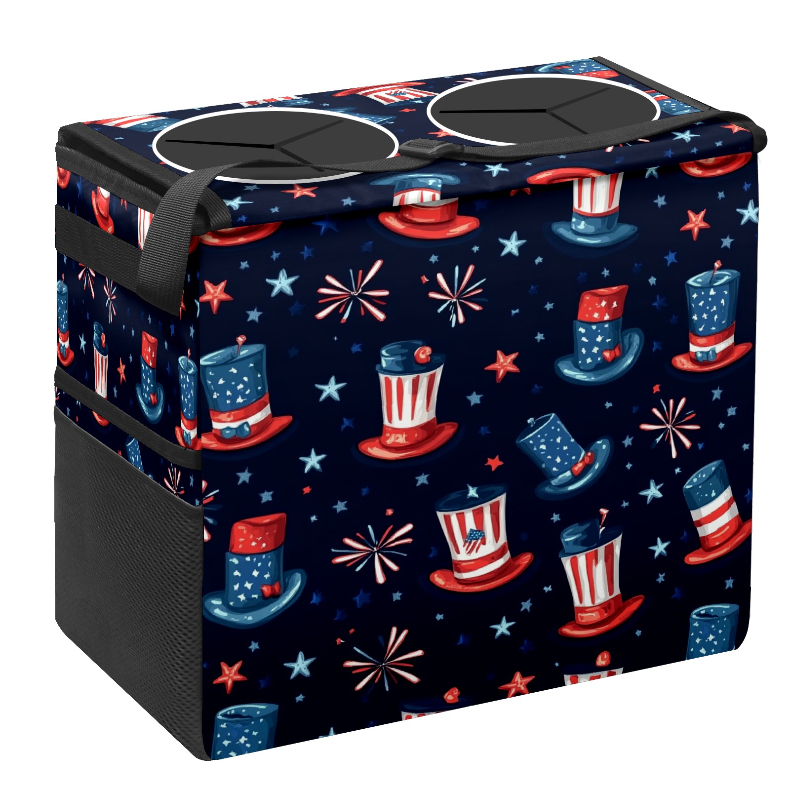 Car Trash Can with Lid, Portable Hanging Automotive Garbage Bin for Vehicles, Leakproof Waste Bag Container for SUV Truck Van Interior Auto Travel Road Trips(American Flag Top Hats)