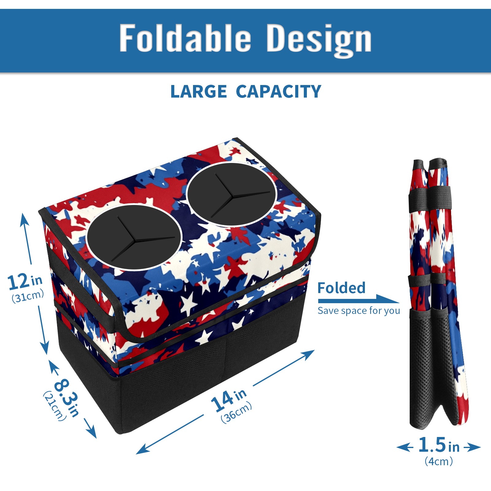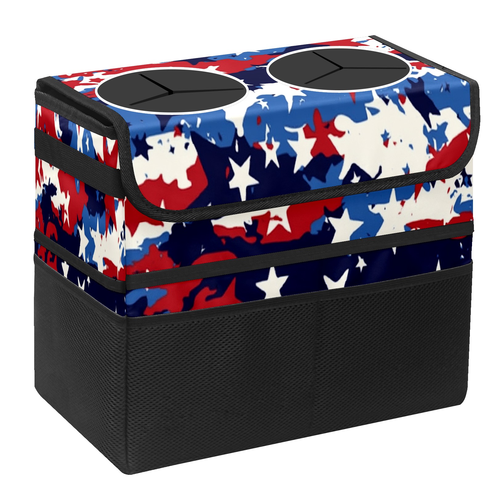 Car Trash Can with Lid, Portable Hanging Automotive Garbage Bin for Vehicles, Leakproof Waste Bag Container for SUV Truck Van Interior Auto Travel Road Trips(Red White And Blue Camouflage)