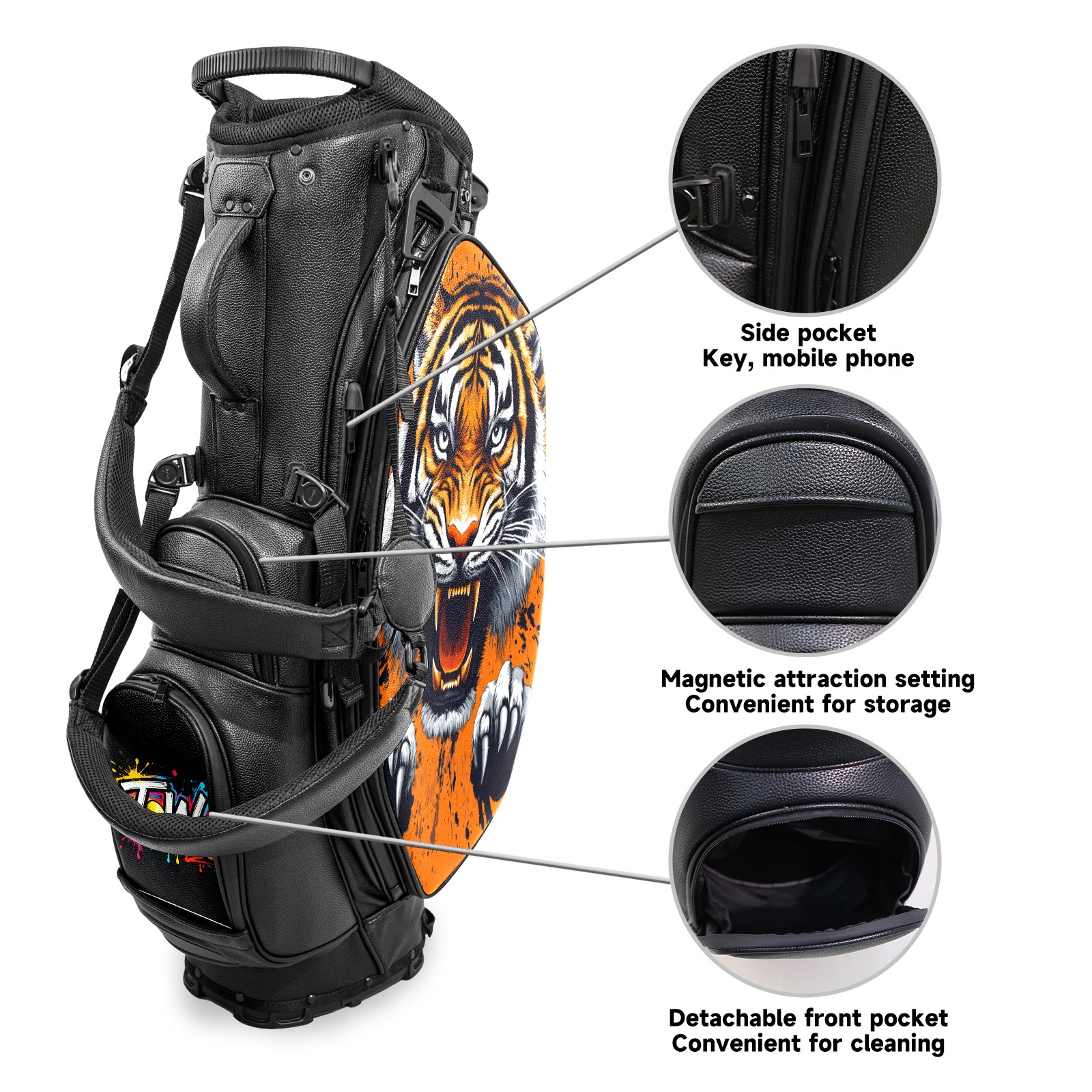 Black 5 Ways Divider Golf Bag Waterproof Leather Golf Stand Bag Large Capacity & Versatile Personalized Customized Printing Golf Club Bag for Men Women Color TW