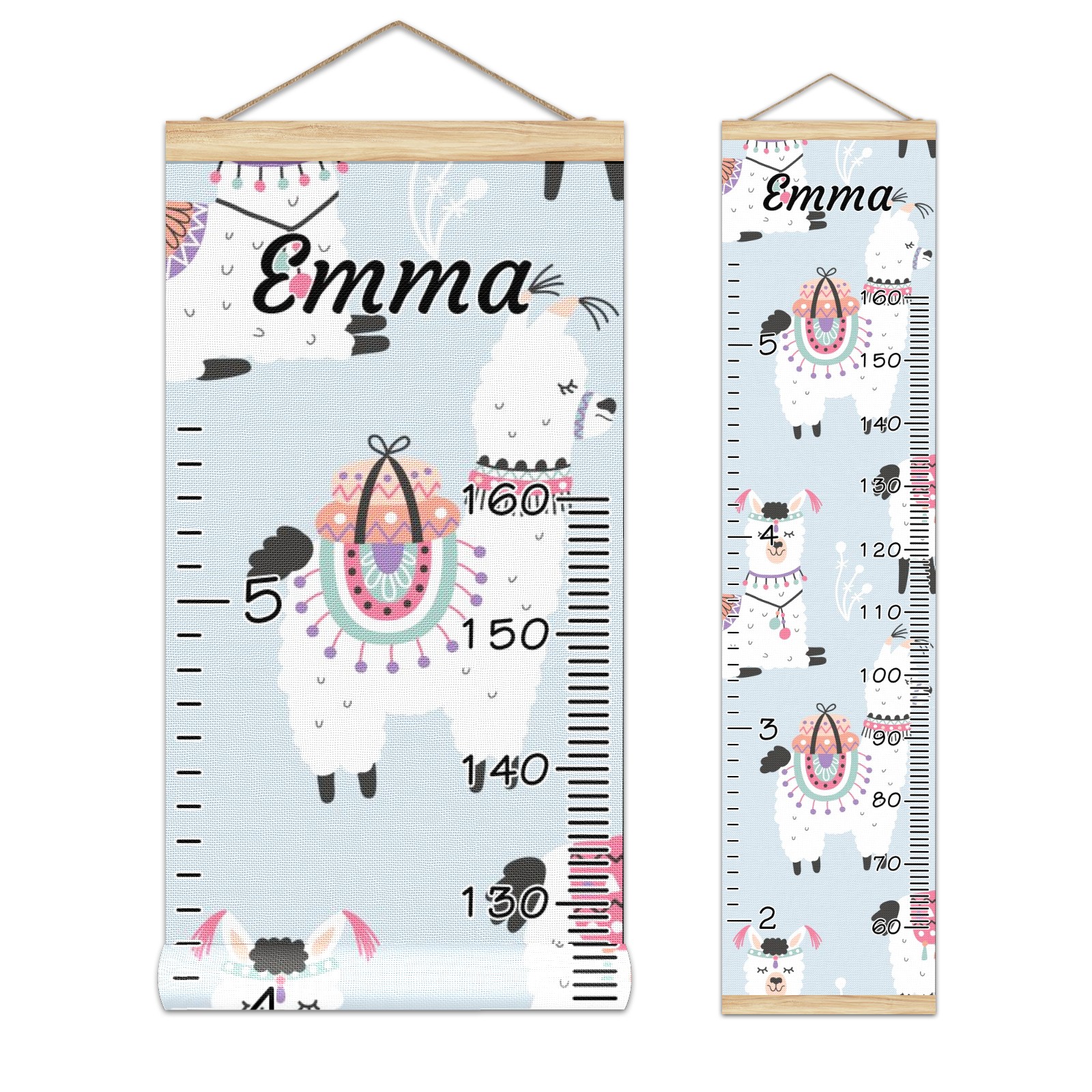 Personalized Kids Name Growth Chart Ruler for Wall Wood Frame Canvas Height Measure Chart 13.4x56 in Hanging Growth Chart Funny Alpaca Llama Cacti10.23 Boys Girls Room Decor