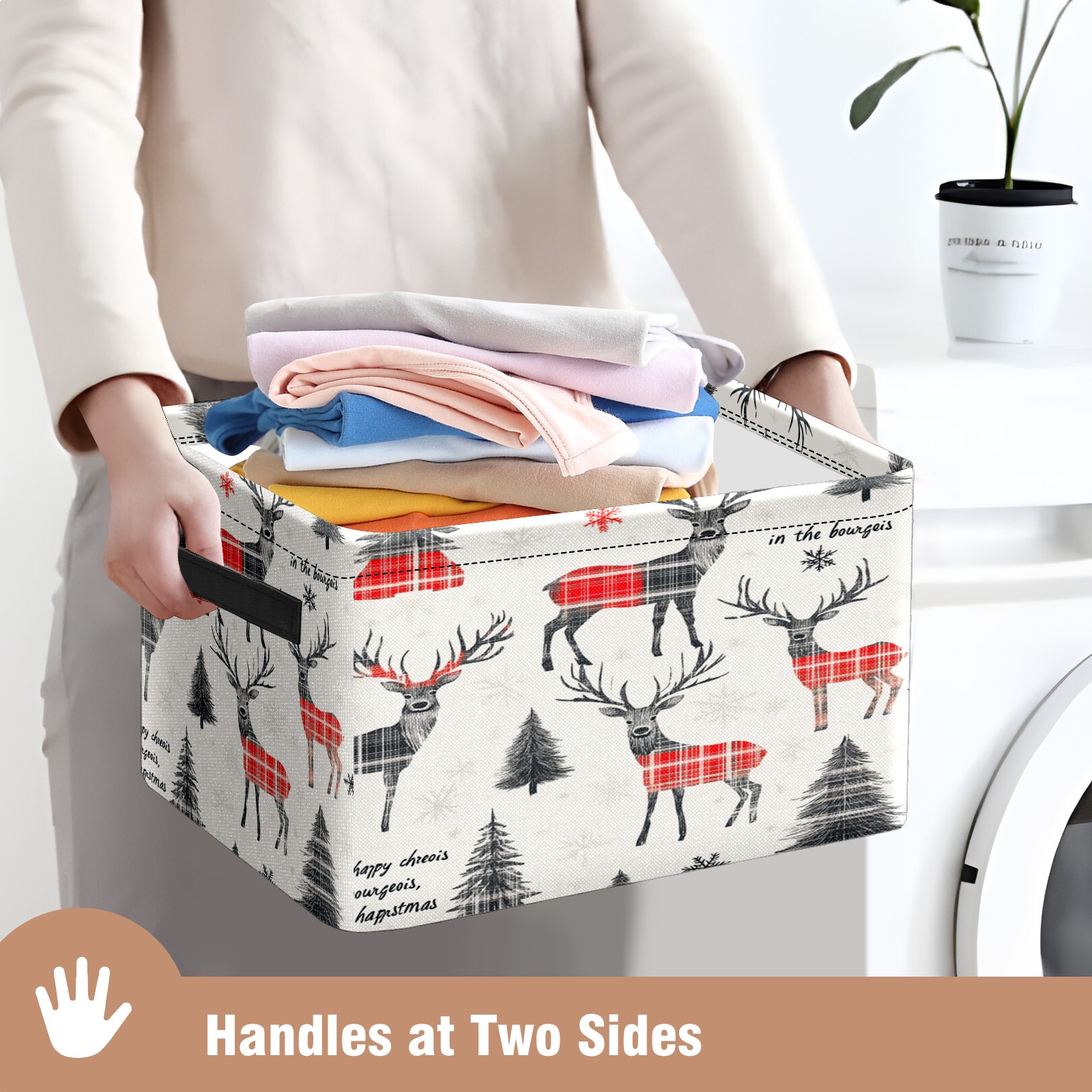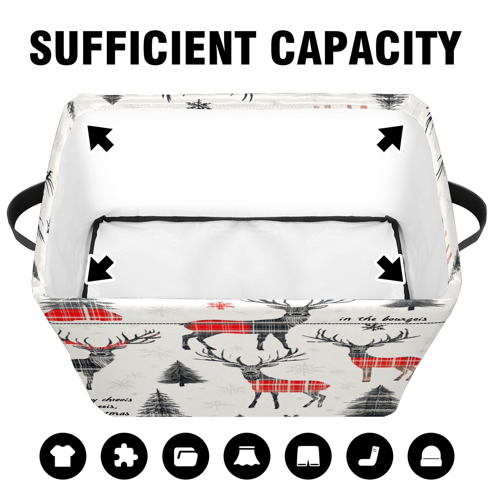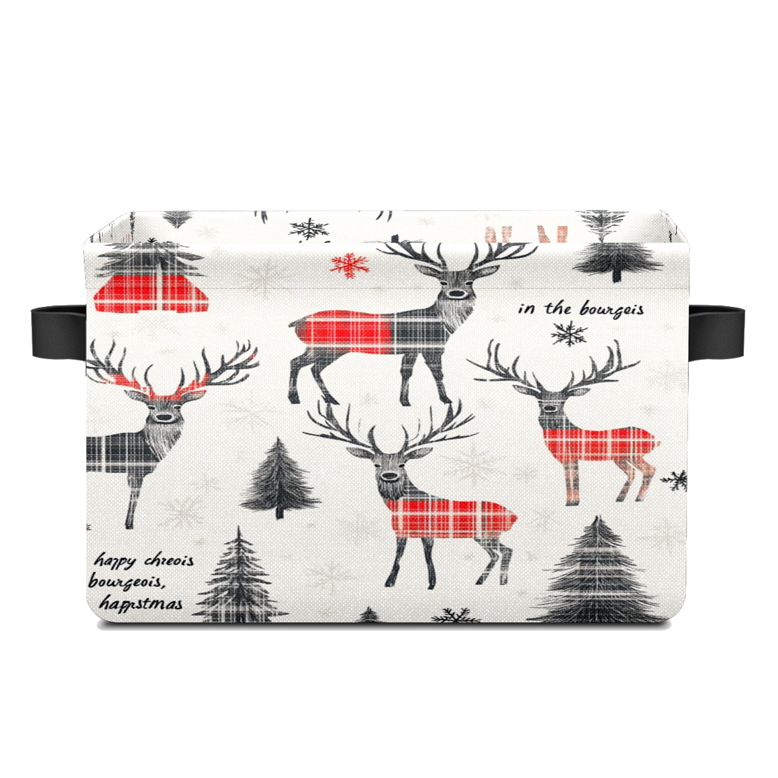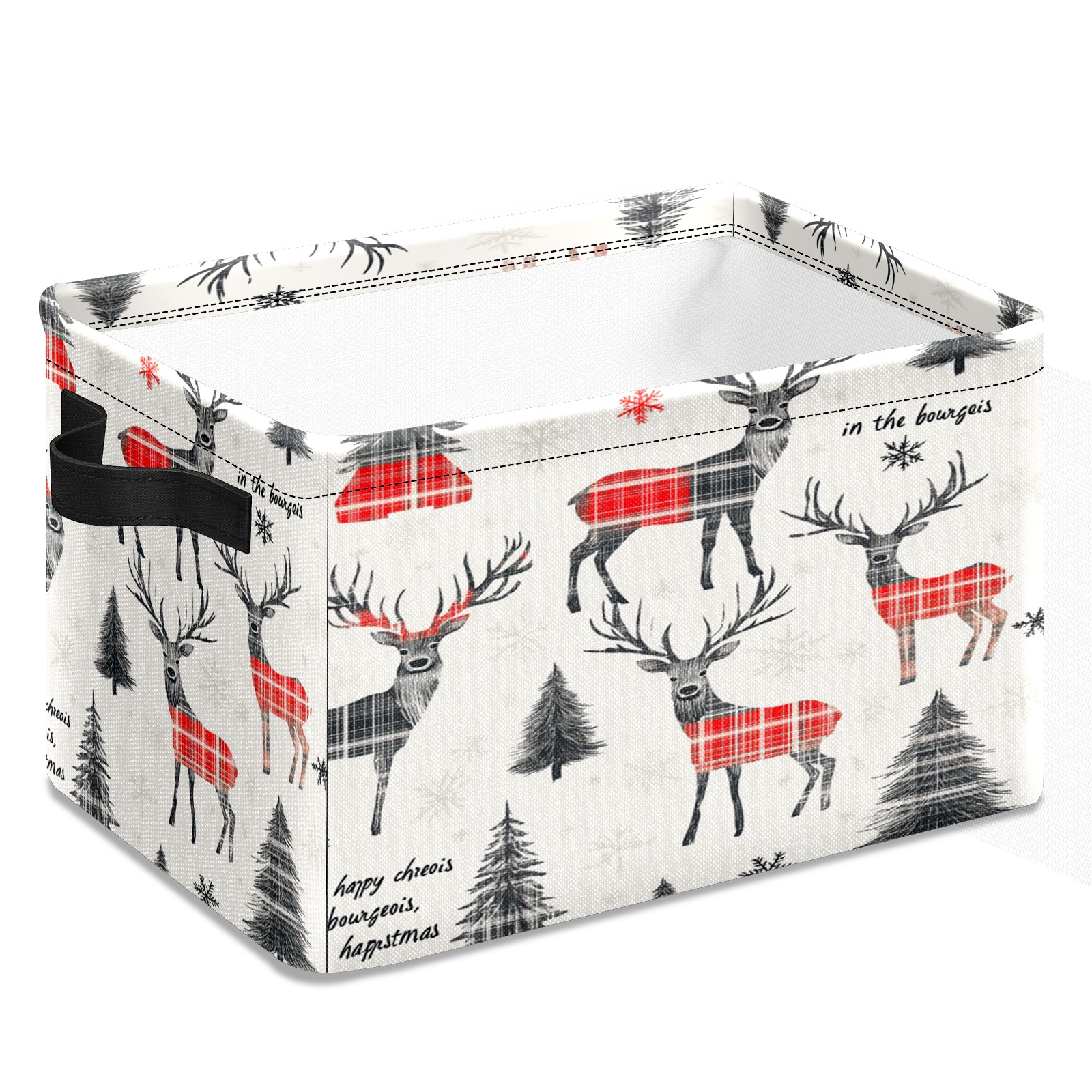 Large Storage Box Black Red Christmas Elk Foldable Storage Baskets with Handles for Organizing Clothes, Gift Storage, Children's Toys