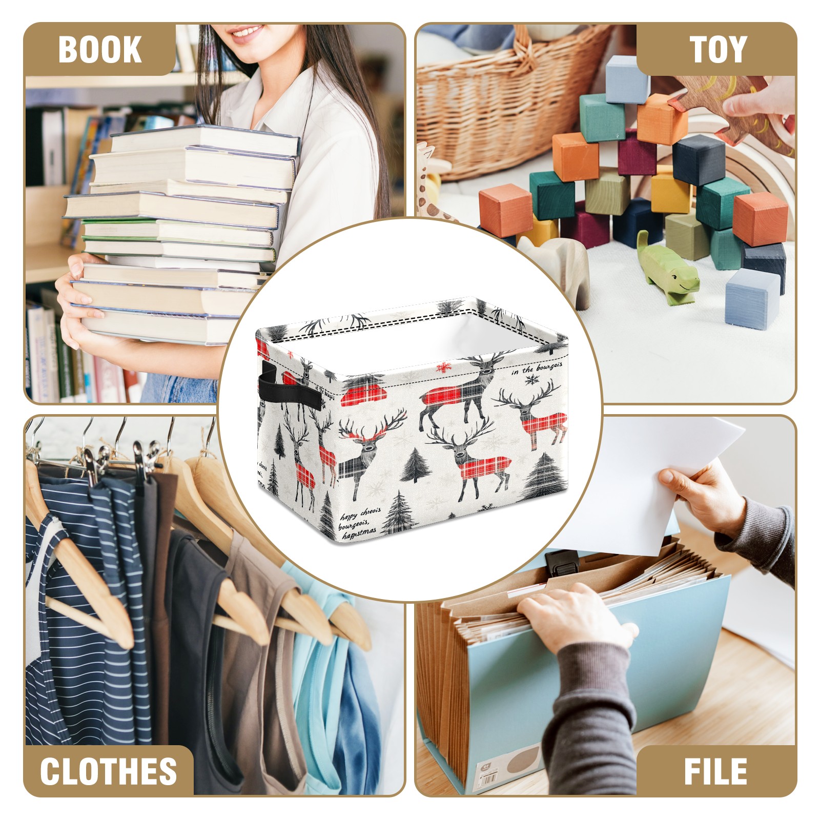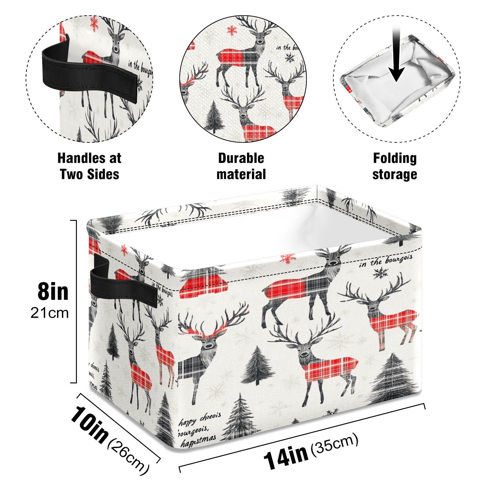 <p>This storage basket can be used for a variety of purposes, including bedroom organization baskets, laundry storage boxes, toy storage boxes, bathroom towel cube storage boxes, toilet storage containers, book and magazine storage boxes, holiday decoration storage cubes, living room storage, etc. The spacious size of 10×14×8 inches gives it ample storage capacity. This Christmas-themed storage basket is a great household item that combines practicality with a festive atmosphere! Made of easy-to-clean Oxford cloth, daily dirt can be cleaned by gently wiping with mild soapy water. With a sturdy metal frame and hard bottom support, it ensures a crisp shape when stored, but also needs to avoid machine washing to extend its service life. It is lightweight and flat after folding, taking up no space</p>