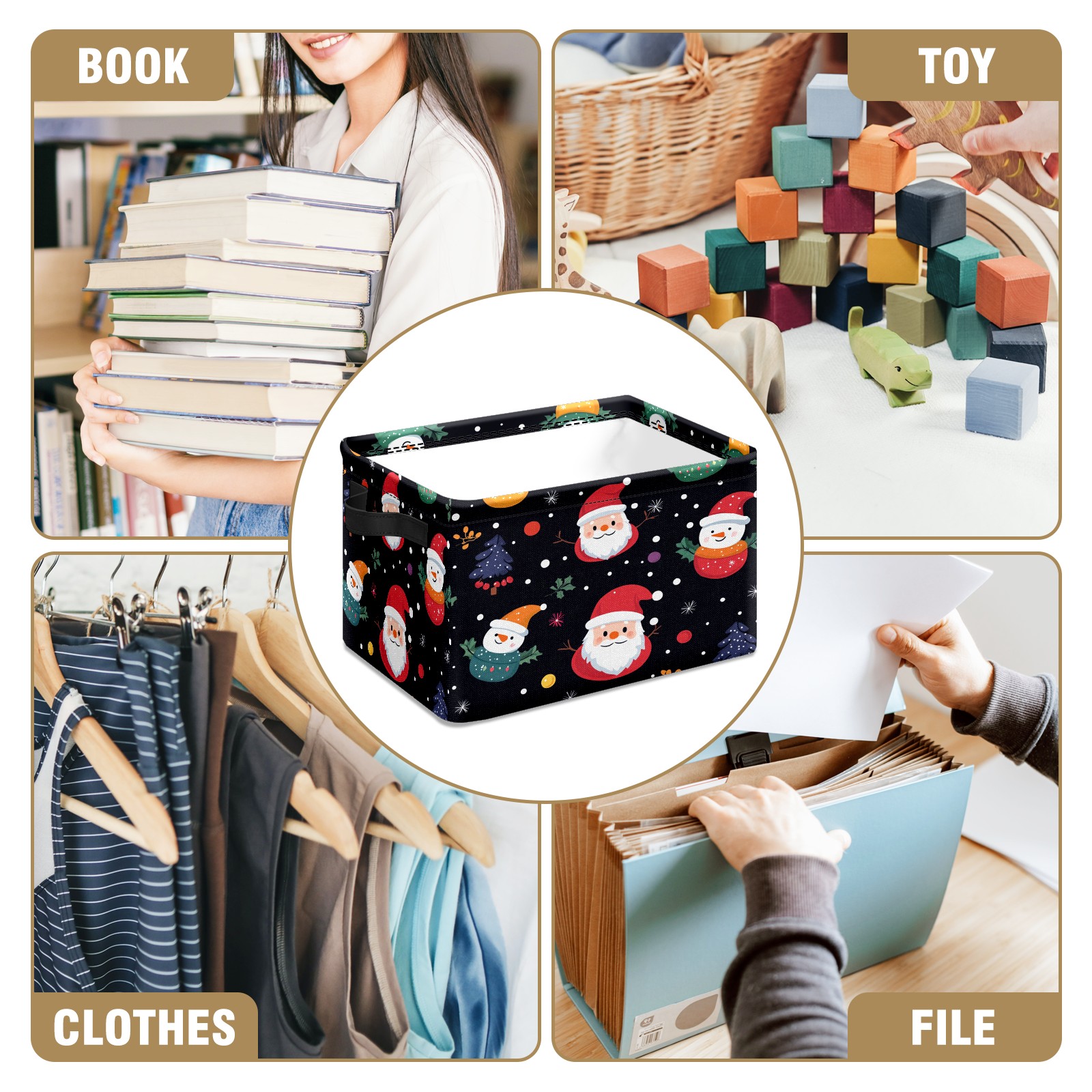 <p>This storage basket can be used for a variety of purposes, including bedroom organization baskets, laundry storage boxes, toy storage boxes, bathroom towel cube storage boxes, toilet storage containers, book and magazine storage boxes, holiday decoration storage cubes, living room storage, etc. The spacious size of 10×14×8 inches gives it ample storage capacity. This Christmas-themed storage basket is a great household item that combines practicality with a festive atmosphere! Made of easy-to-clean Oxford cloth, daily dirt can be cleaned by gently wiping with mild soapy water. With a sturdy metal frame and hard bottom support, it ensures a crisp shape when stored, but also needs to avoid machine washing to extend its service life. It is lightweight and flat after folding, taking up no space</p>
