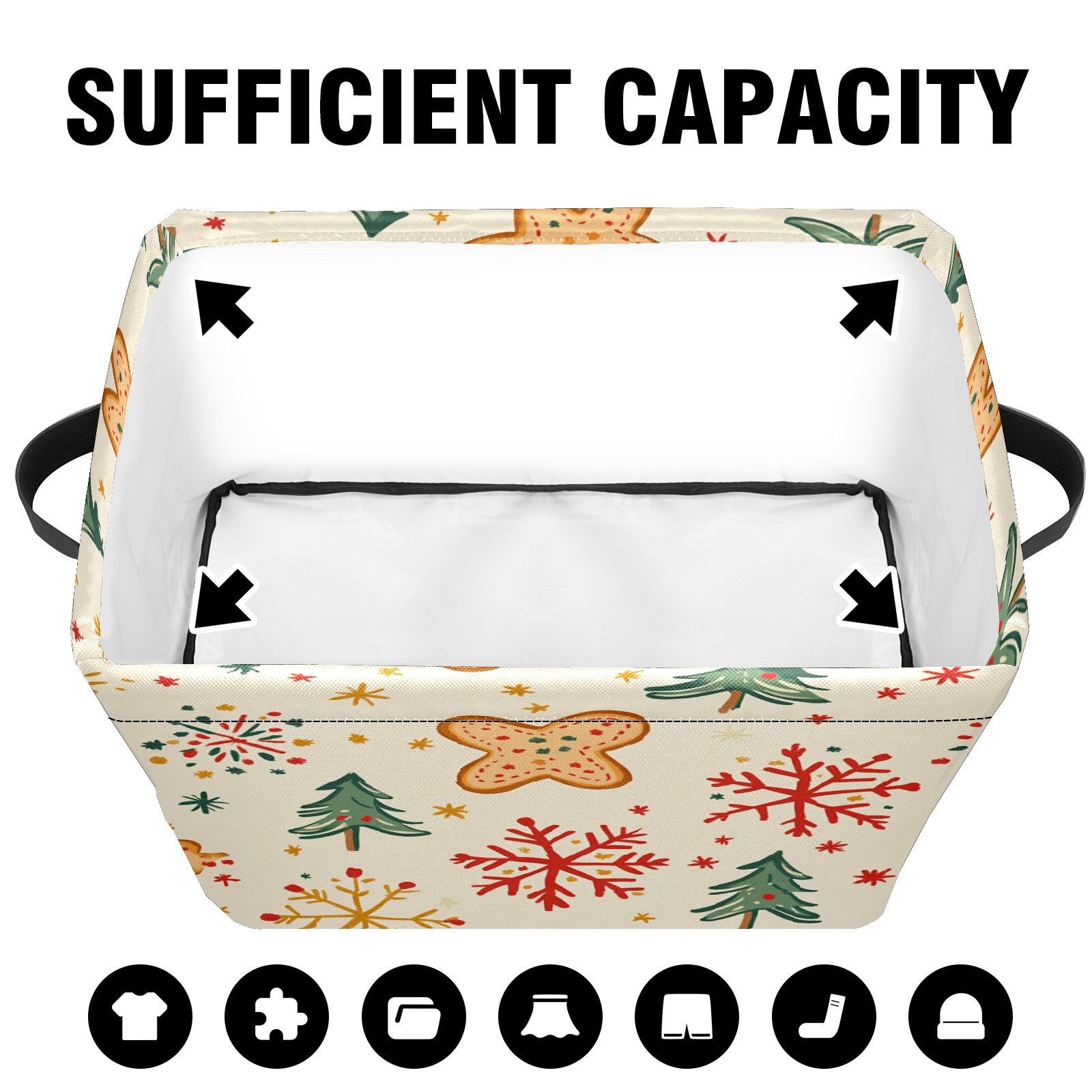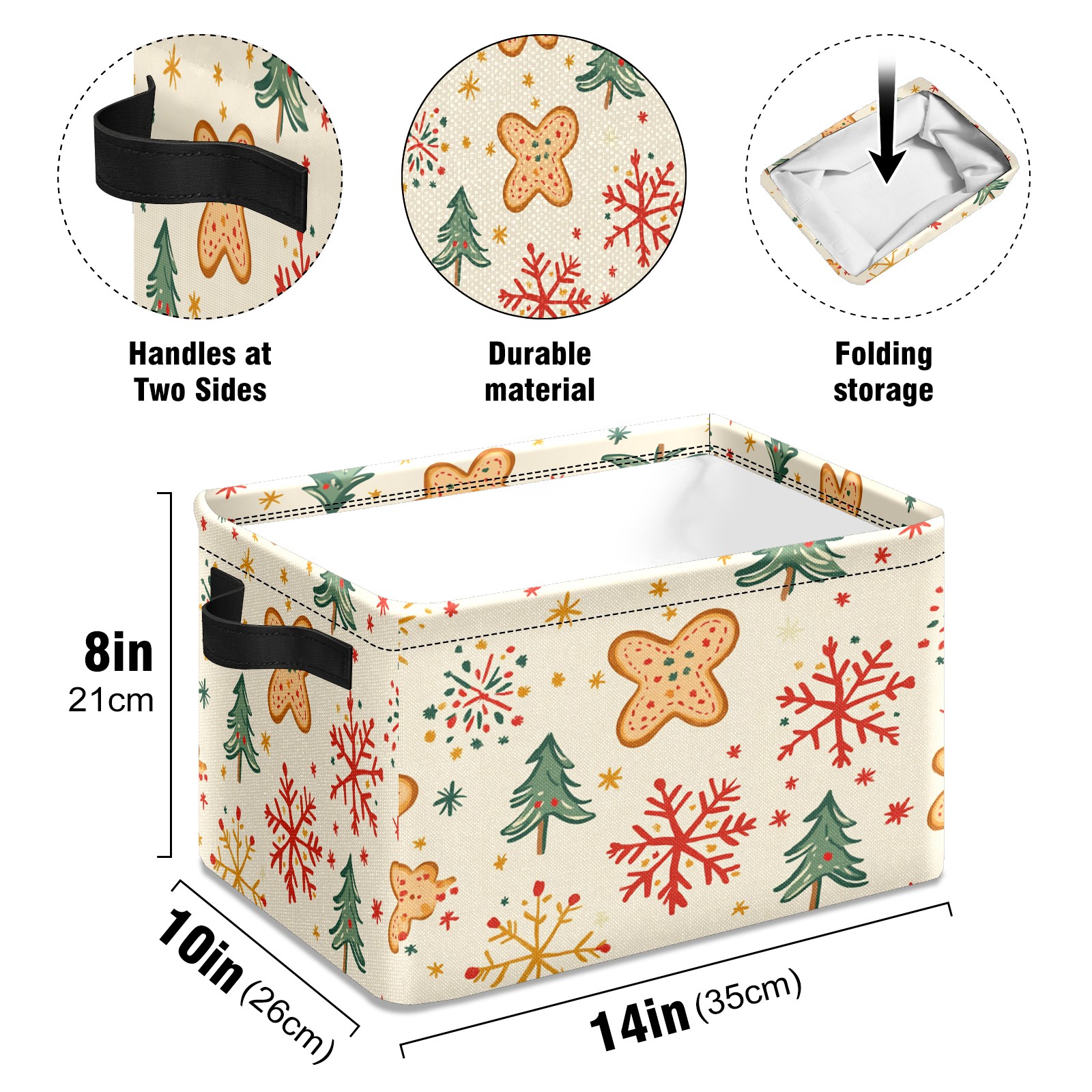 <p>This storage basket can be used for a variety of purposes, including bedroom organization baskets, laundry storage boxes, toy storage boxes, bathroom towel cube storage boxes, toilet storage containers, book and magazine storage boxes, holiday decoration storage cubes, living room storage, etc. The spacious size of 10×14×8 inches gives it ample storage capacity. This Christmas-themed storage basket is a great household item that combines practicality with a festive atmosphere! Made of easy-to-clean Oxford cloth, daily dirt can be cleaned by gently wiping with mild soapy water. With a sturdy metal frame and hard bottom support, it ensures a crisp shape when stored, but also needs to avoid machine washing to extend its service life. It is lightweight and flat after folding, taking up no space</p>