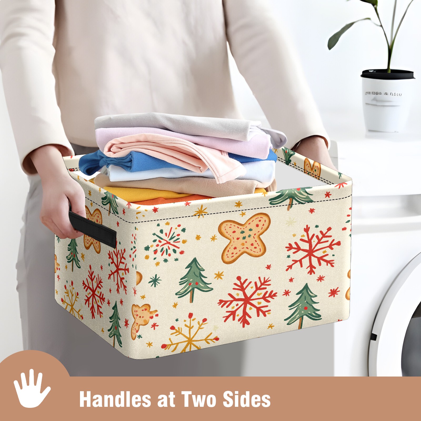 Large Storage Box Gingerbread Man Christmas Tree Snowflakes Foldable Storage Baskets with Handles for Organizing Clothes, Gift Storage, Children's Toys