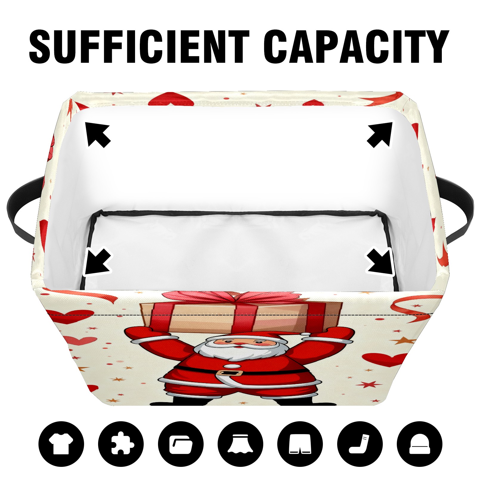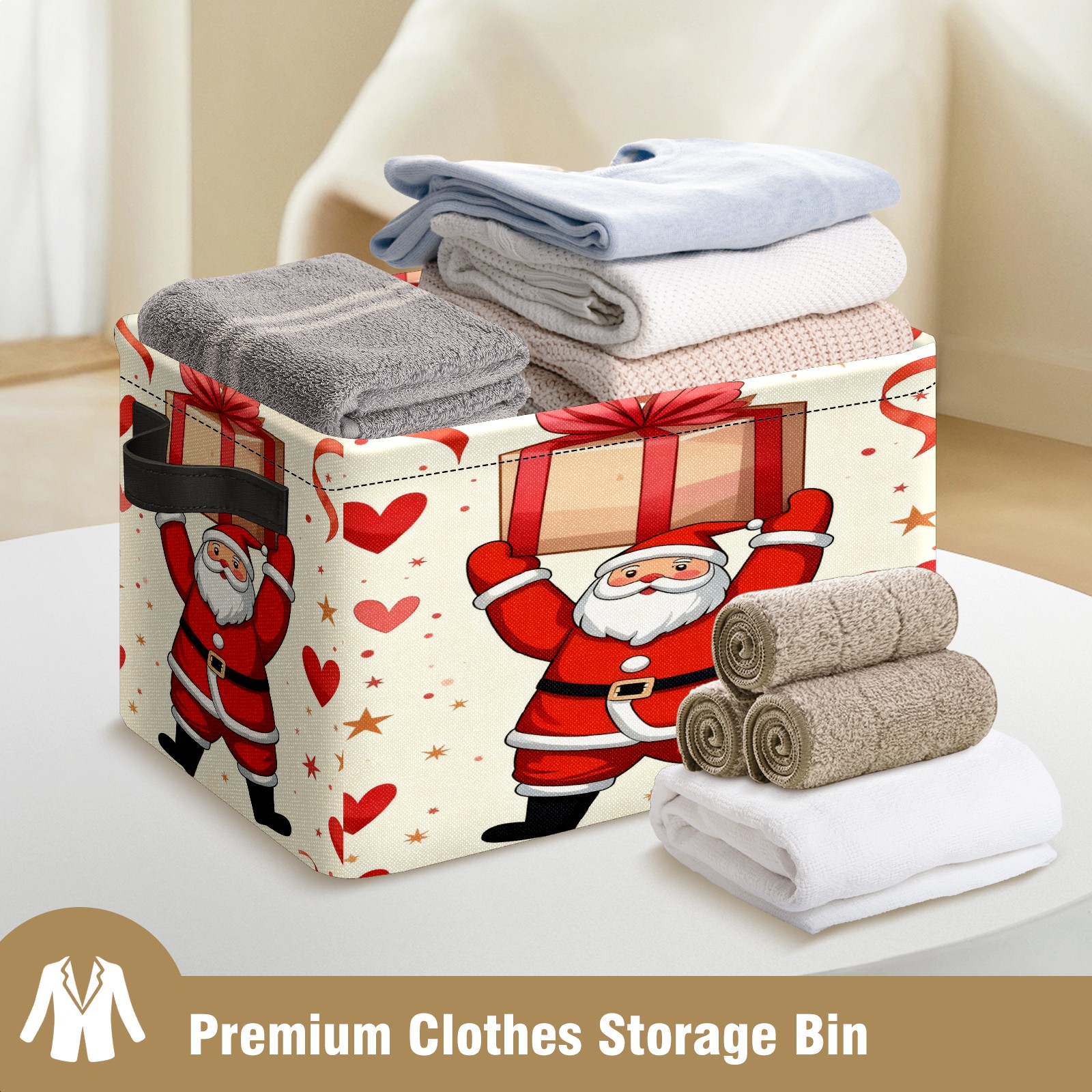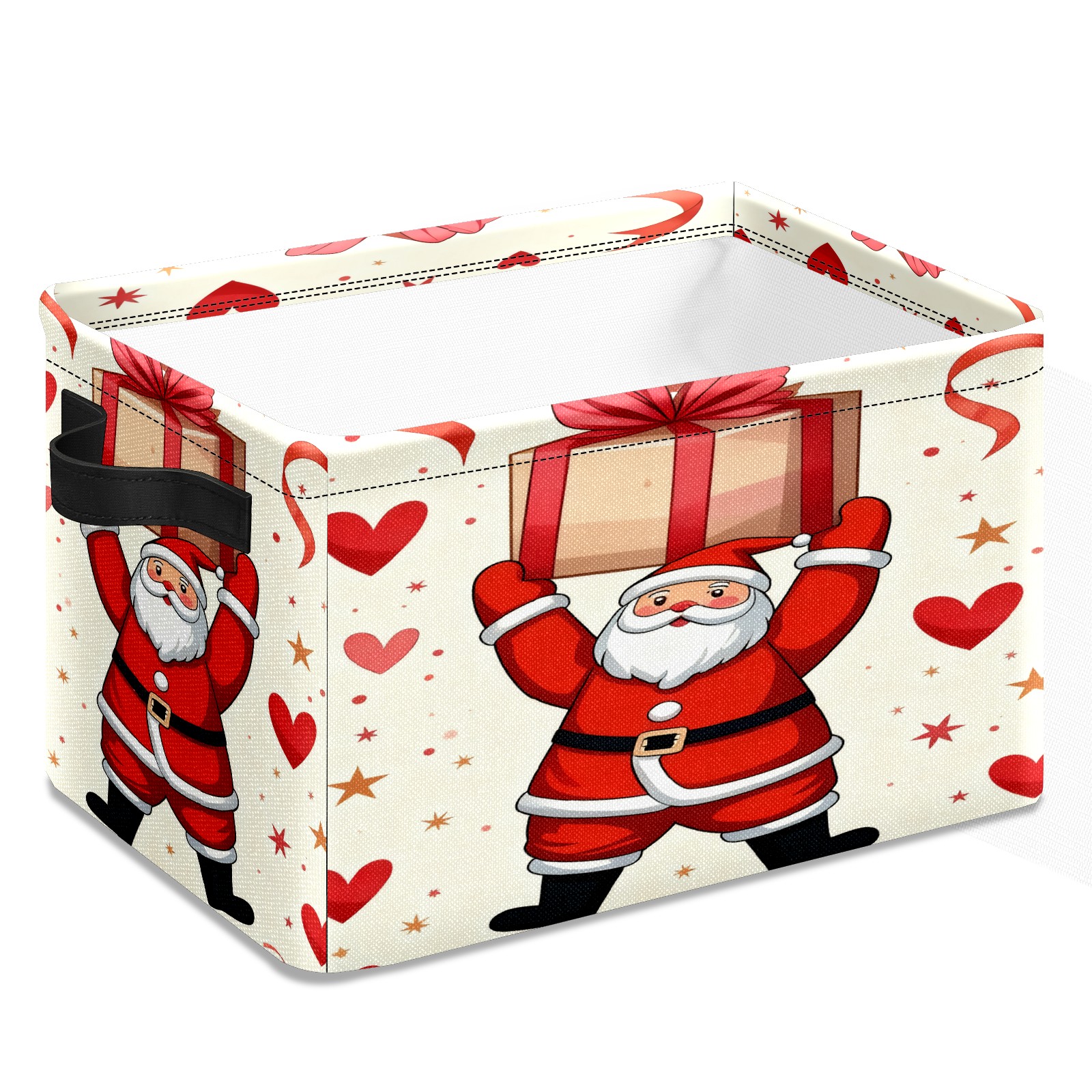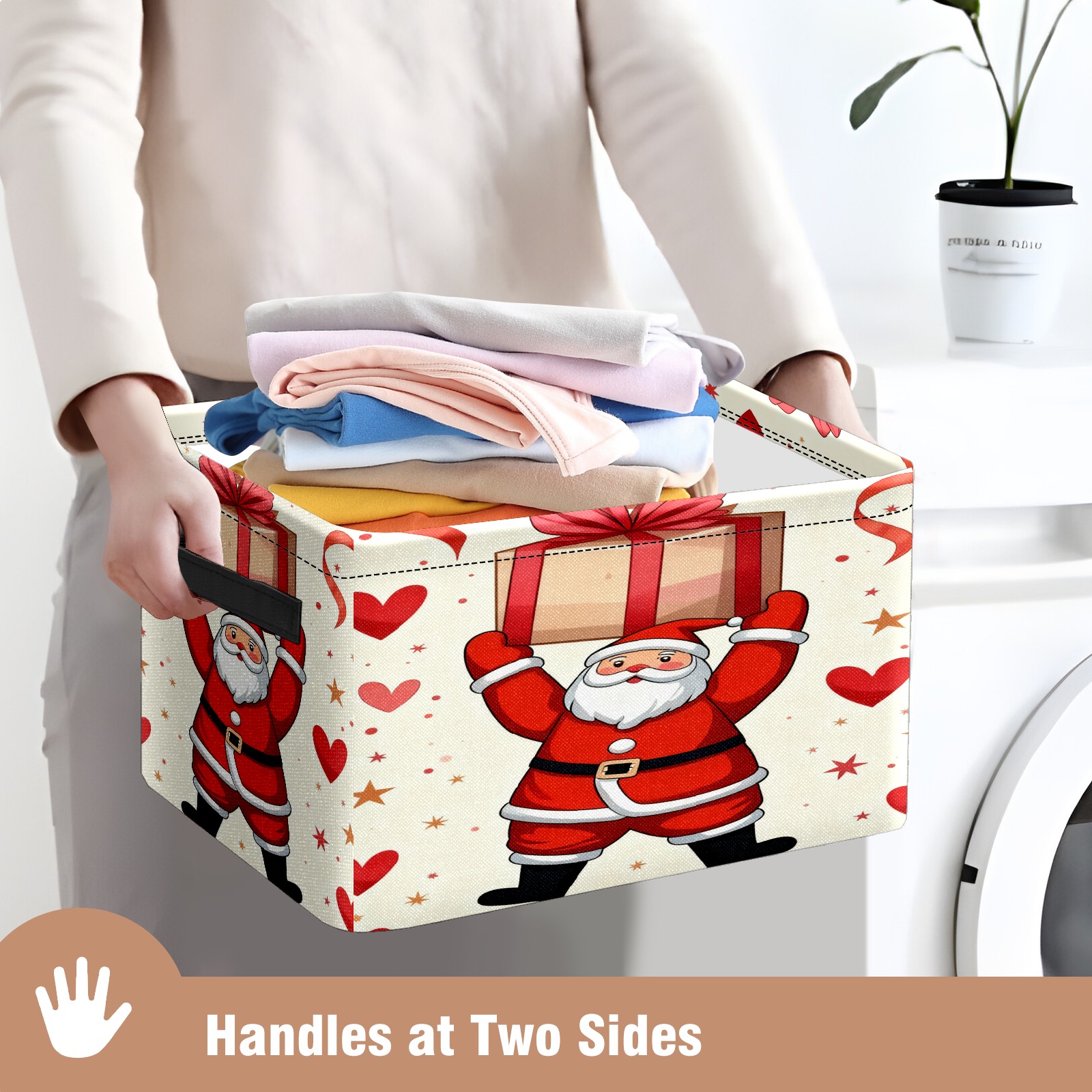 Large Storage Box Santa Claus Holding Gifts Foldable Storage Baskets with Handles for Organizing Clothes, Gift Storage, Children's Toys