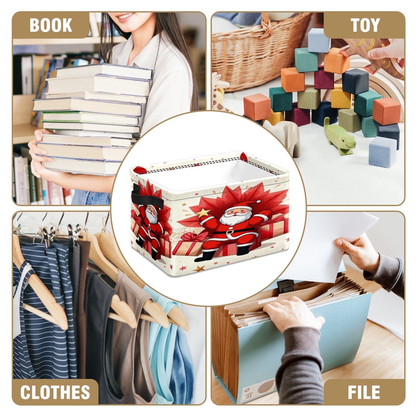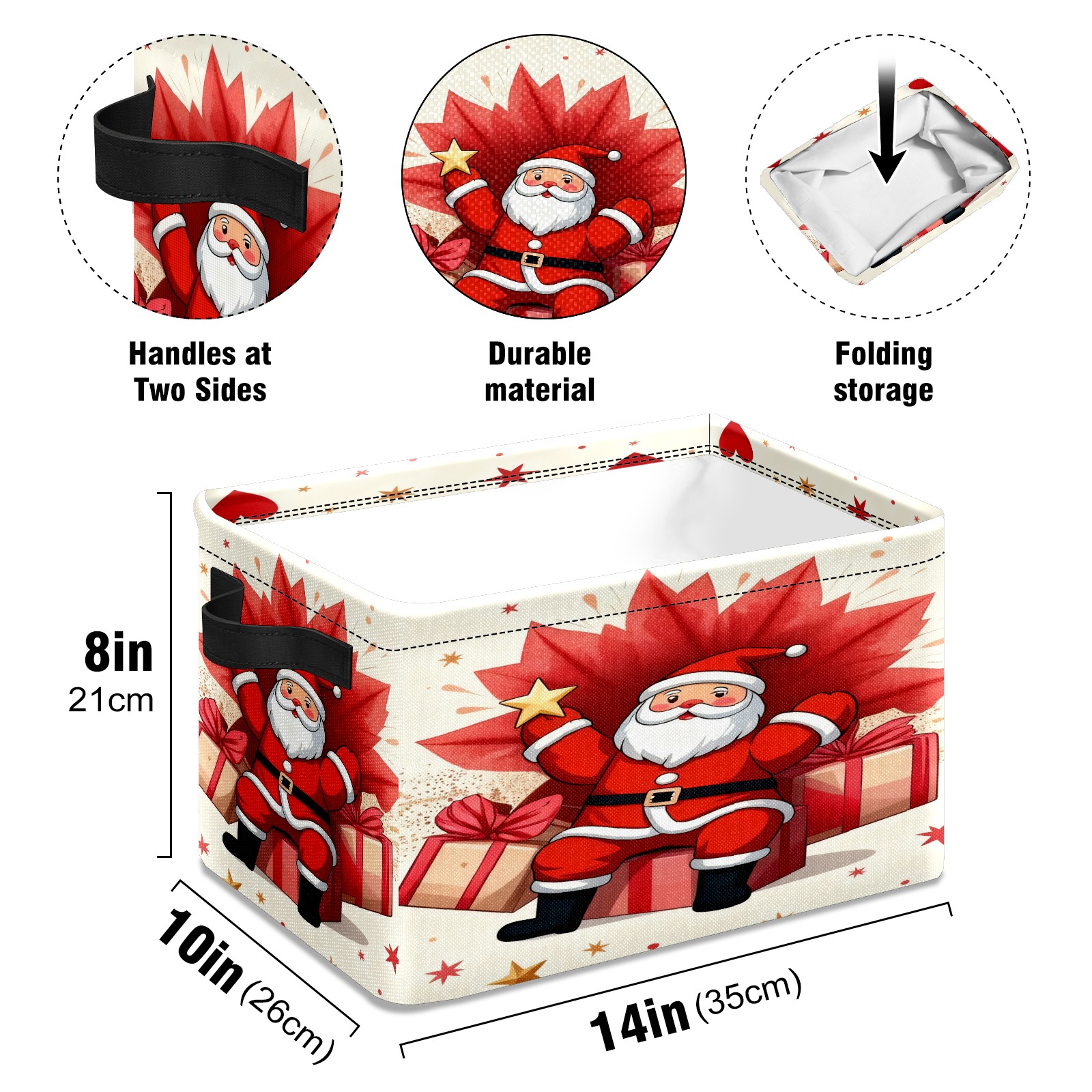 <p>This storage basket can be used for a variety of purposes, including bedroom organization baskets, laundry storage boxes, toy storage boxes, bathroom towel cube storage boxes, toilet storage containers, book and magazine storage boxes, holiday decoration storage cubes, living room storage, etc. The spacious size of 10×14×8 inches gives it ample storage capacity. This Christmas-themed storage basket is a great household item that combines practicality with a festive atmosphere! Made of easy-to-clean Oxford cloth, daily dirt can be cleaned by gently wiping with mild soapy water. With a sturdy metal frame and hard bottom support, it ensures a crisp shape when stored, but also needs to avoid machine washing to extend its service life. It is lightweight and flat after folding, taking up no space</p>
