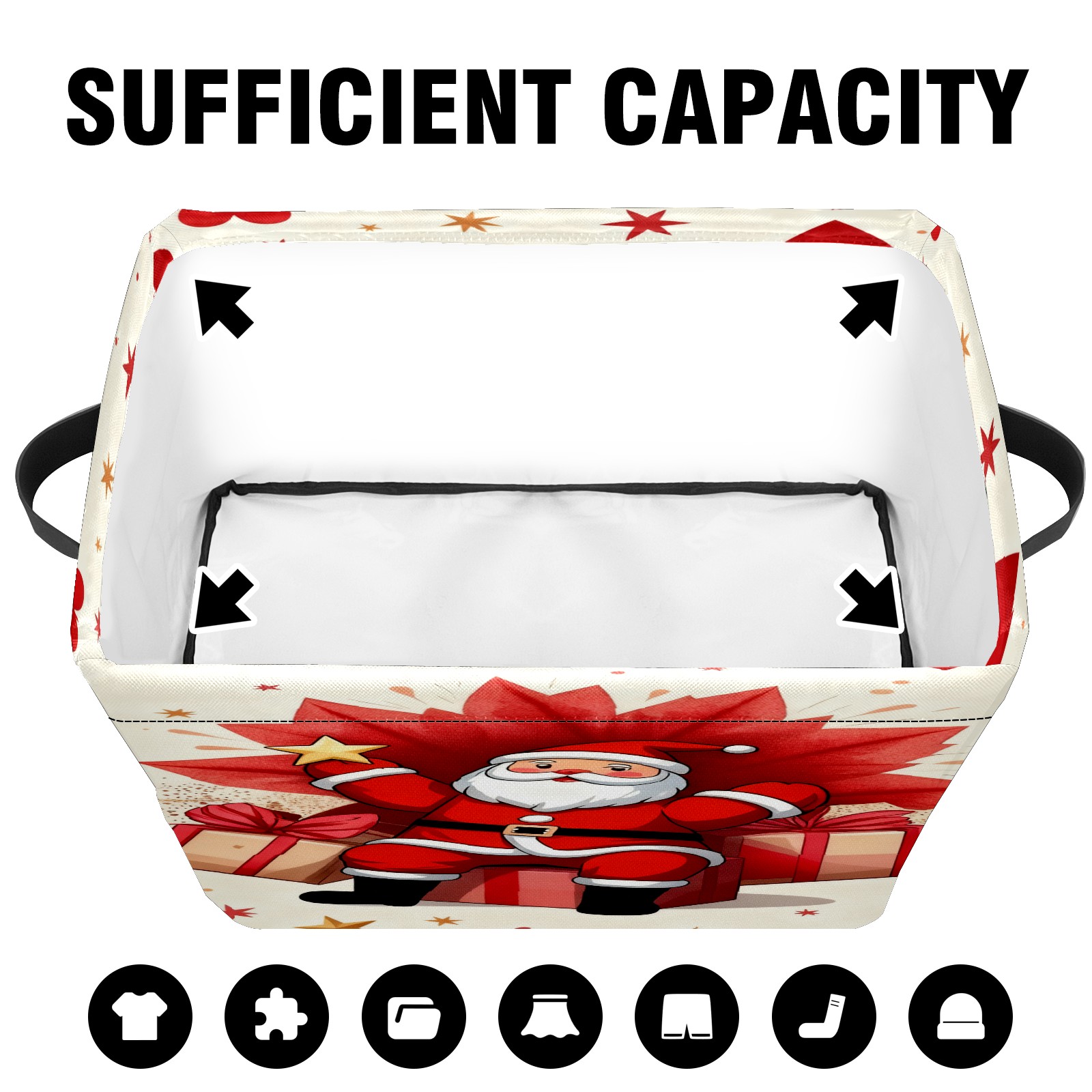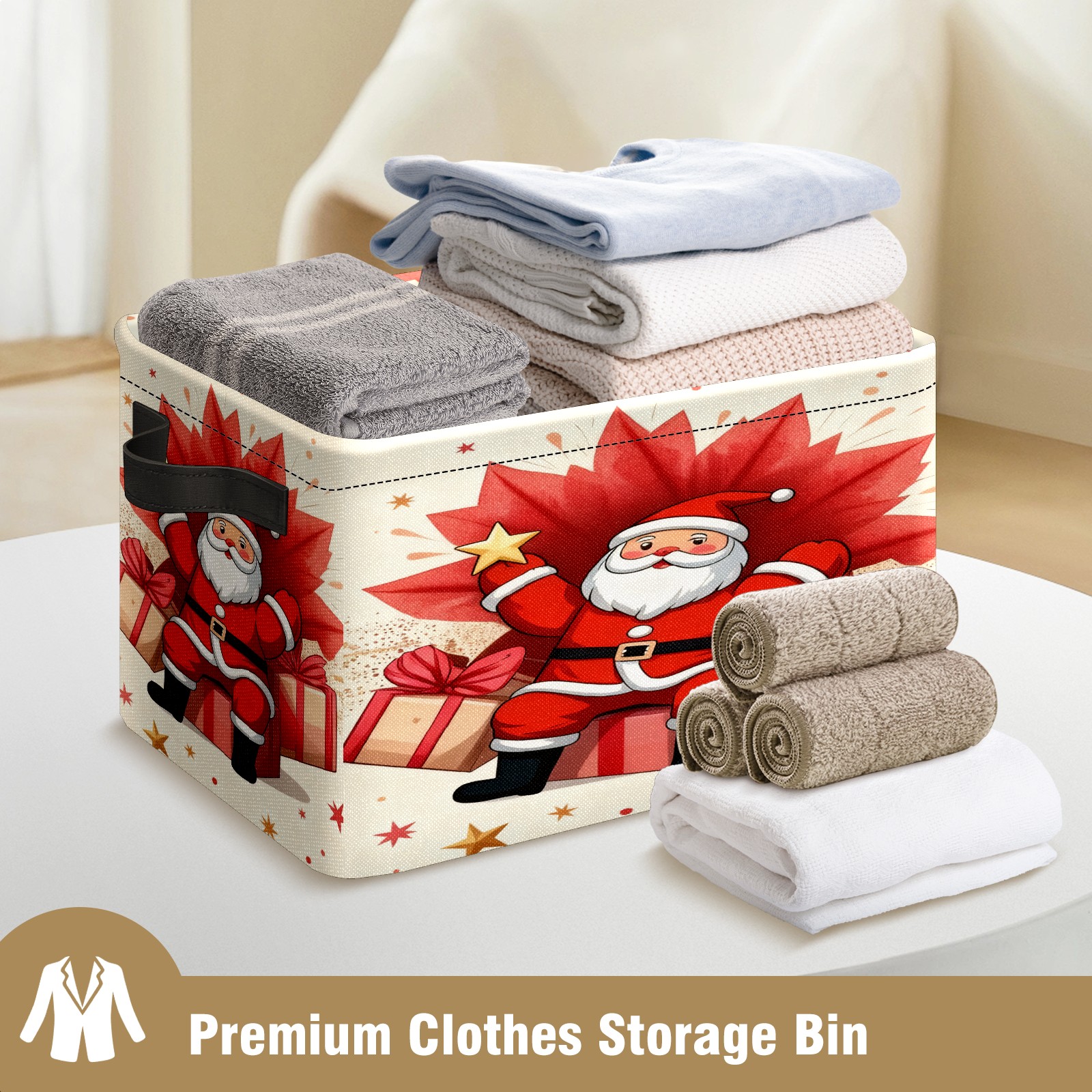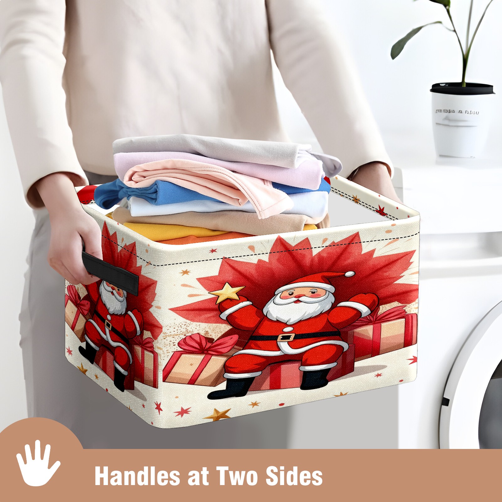 Large Storage Box Santa Claus With Gifts Foldable Storage Baskets with Handles for Organizing Clothes, Gift Storage, Children's Toys