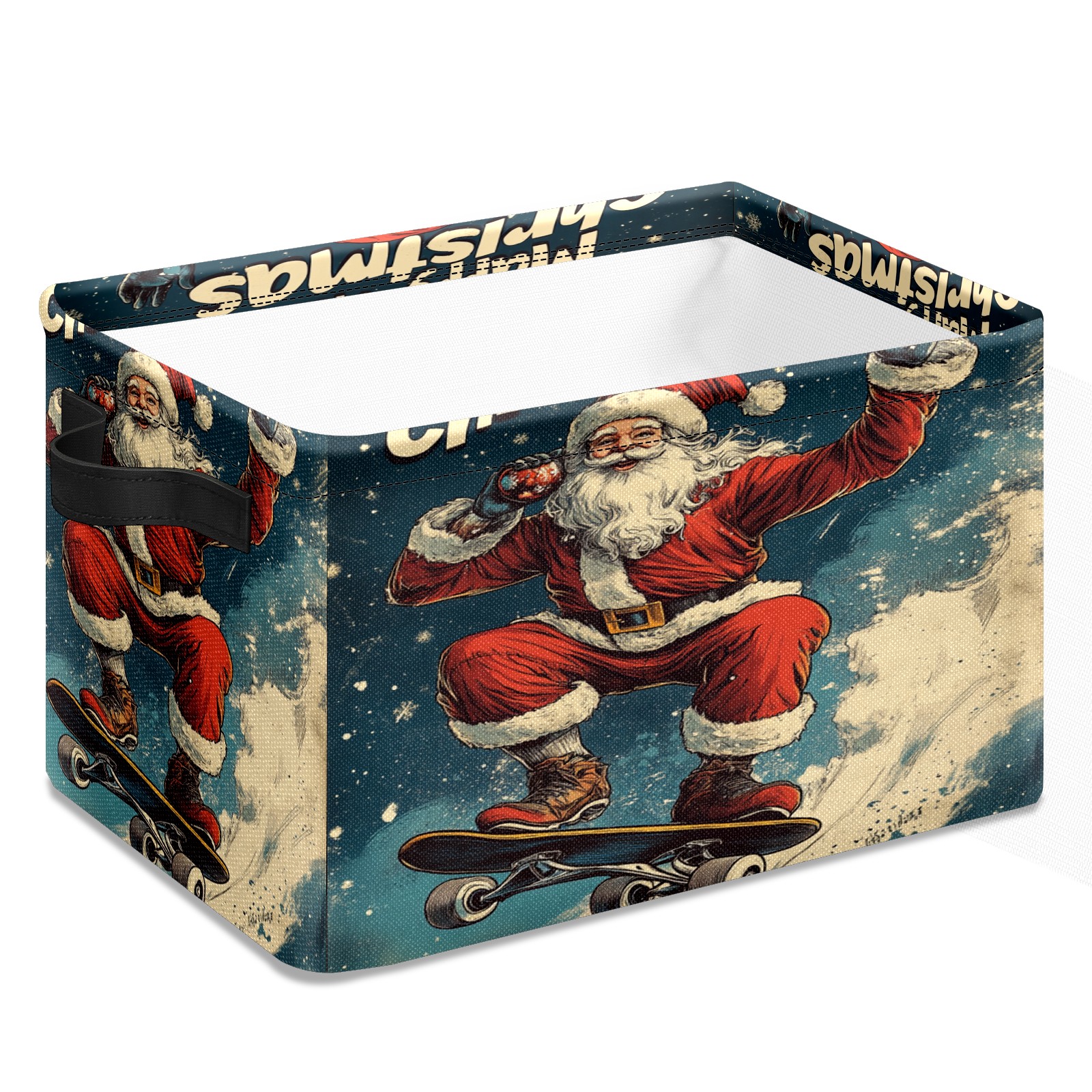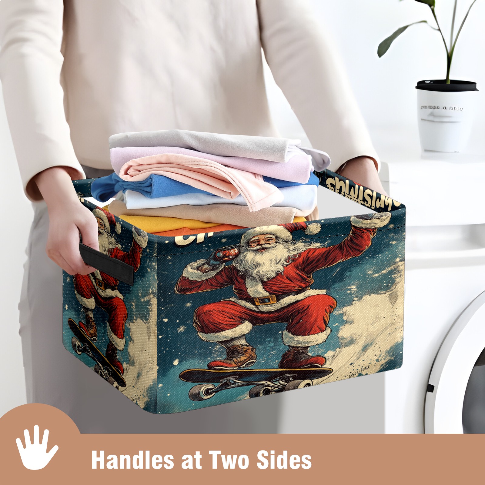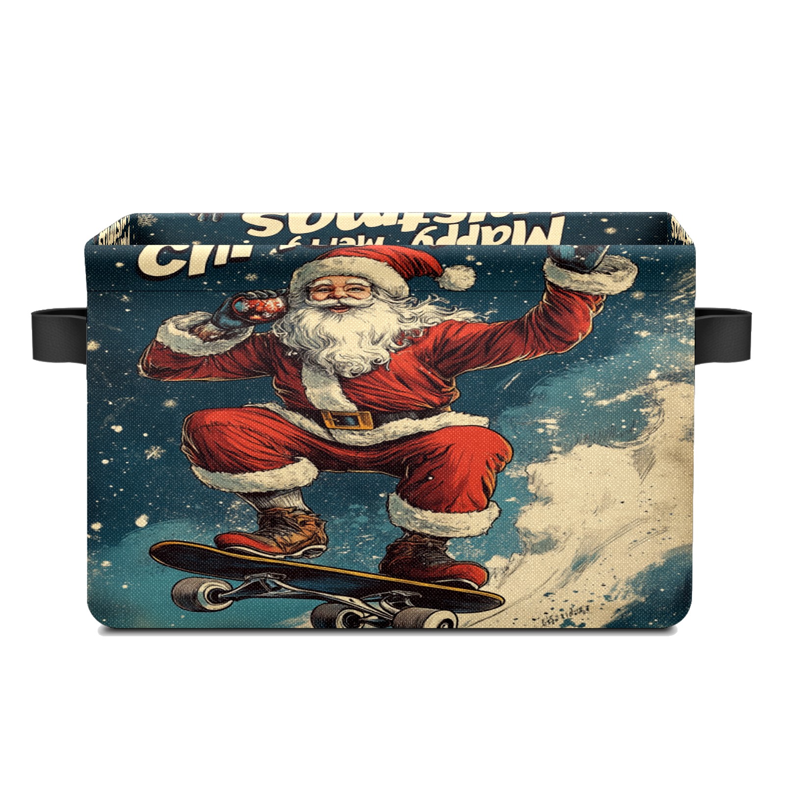 Large Storage Box Skateboard Santa Foldable Storage Baskets with Handles for Organizing Clothes, Gift Storage, Children's Toys