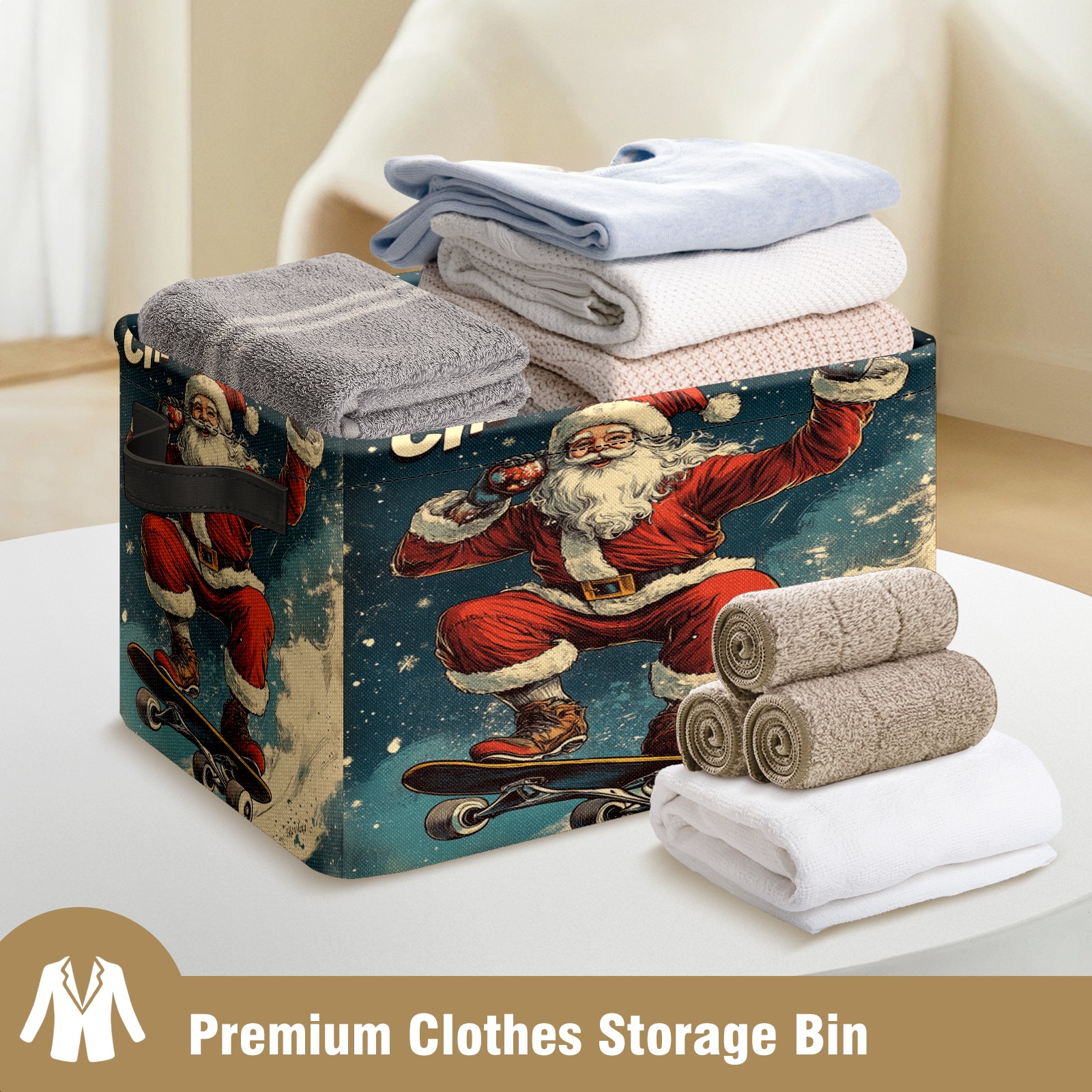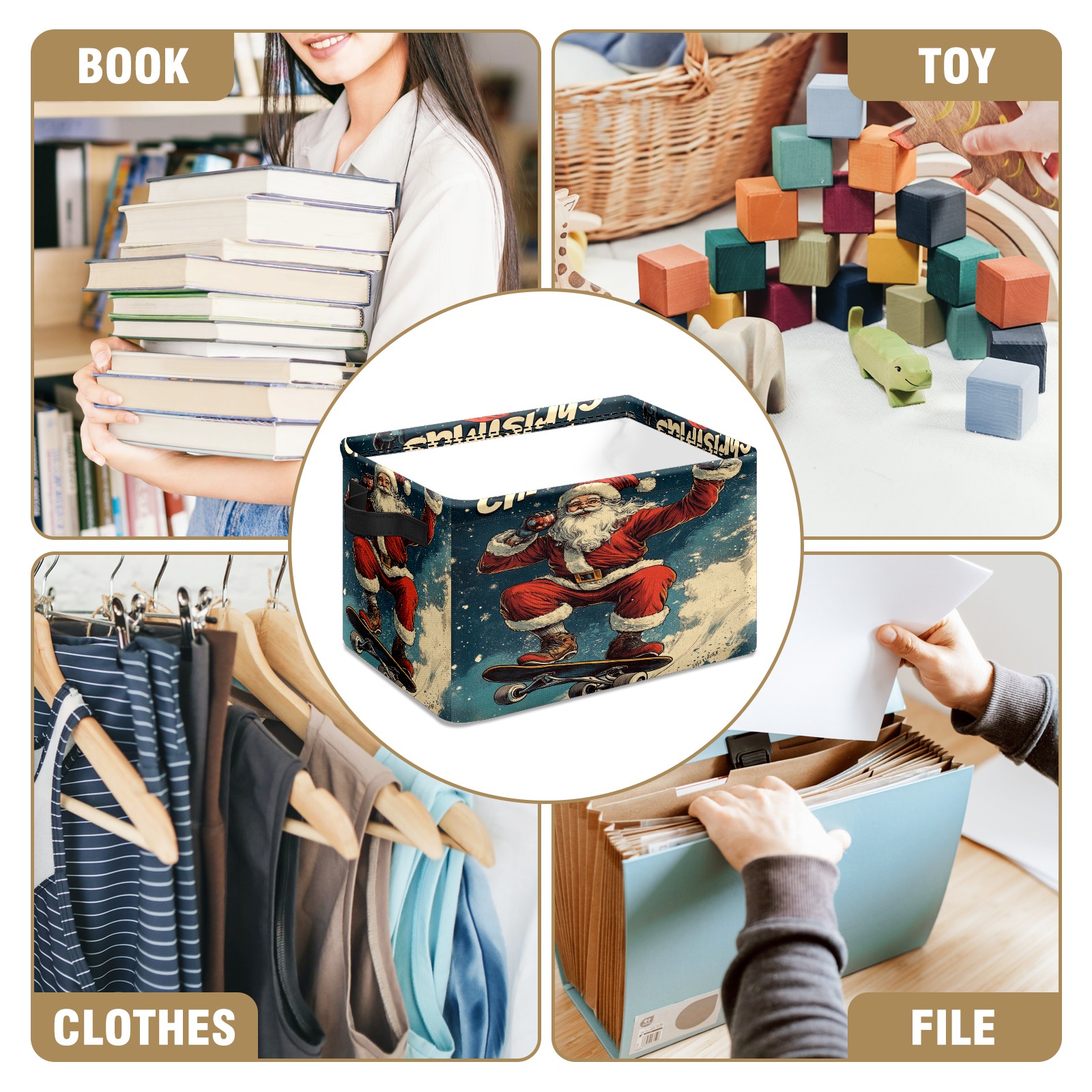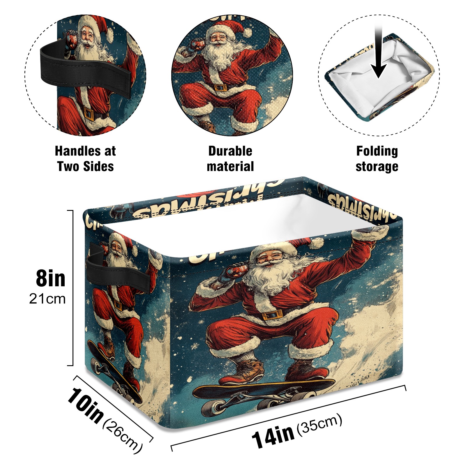 Large Storage Box Skateboard Santa Foldable Storage Baskets with Handles for Organizing Clothes, Gift Storage, Children's Toys