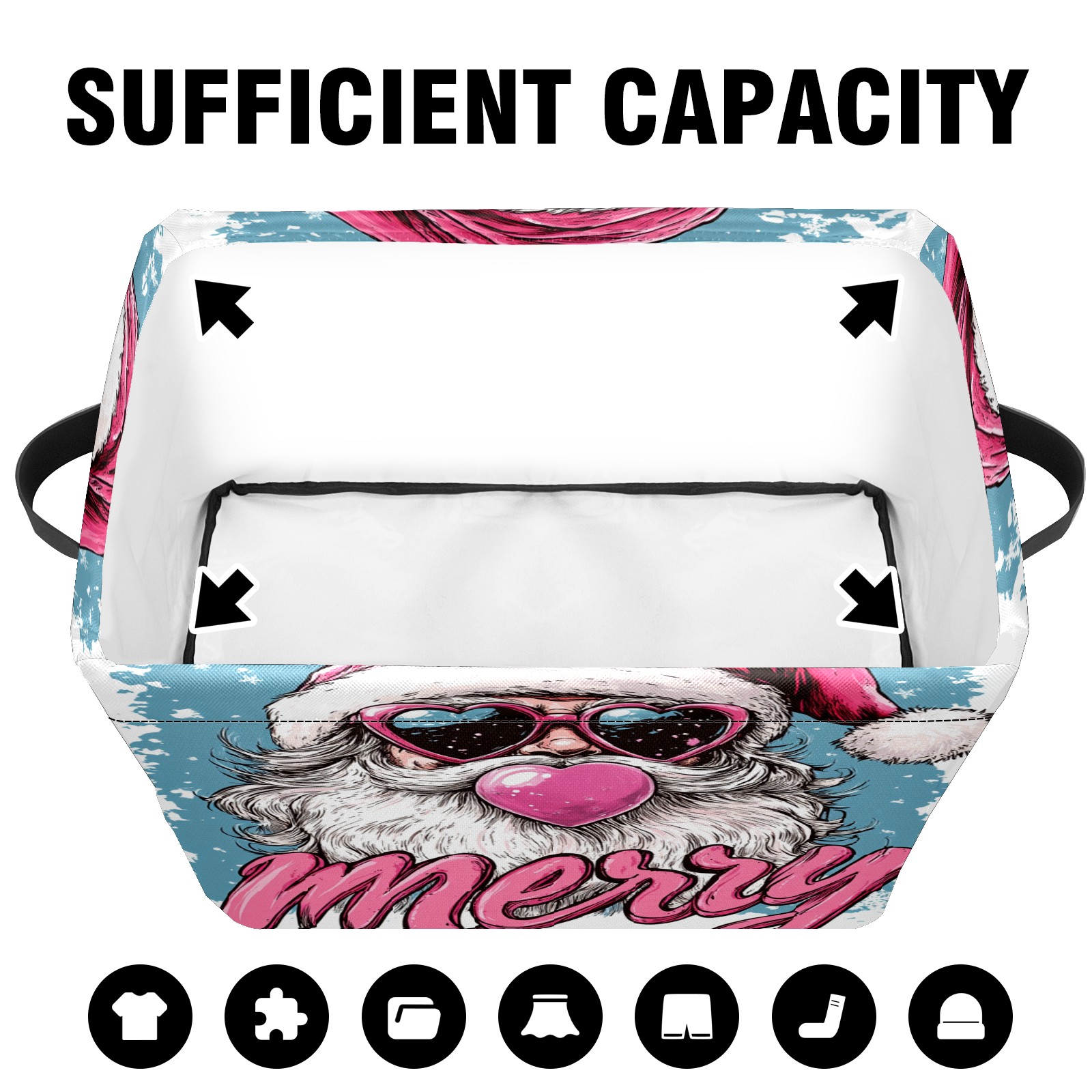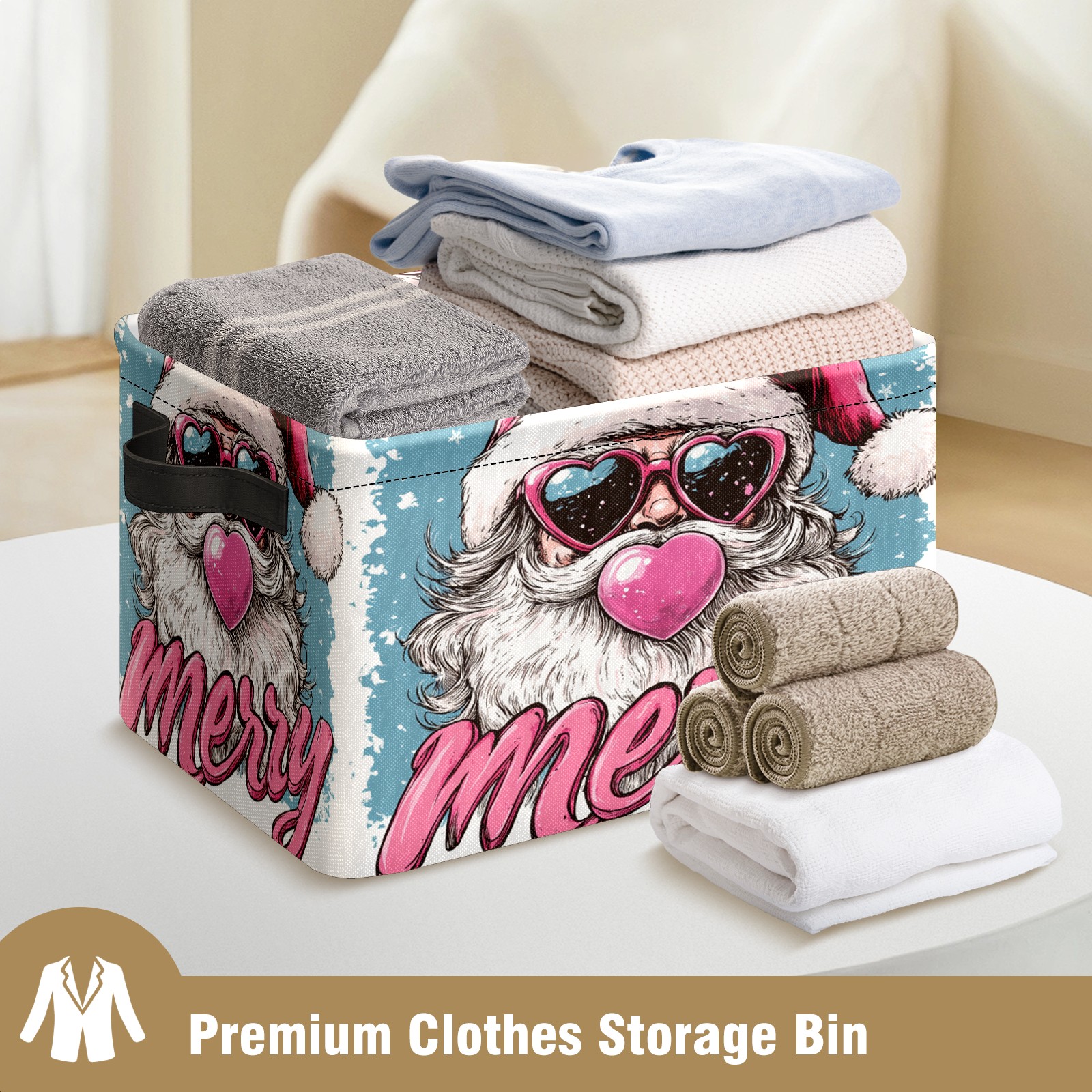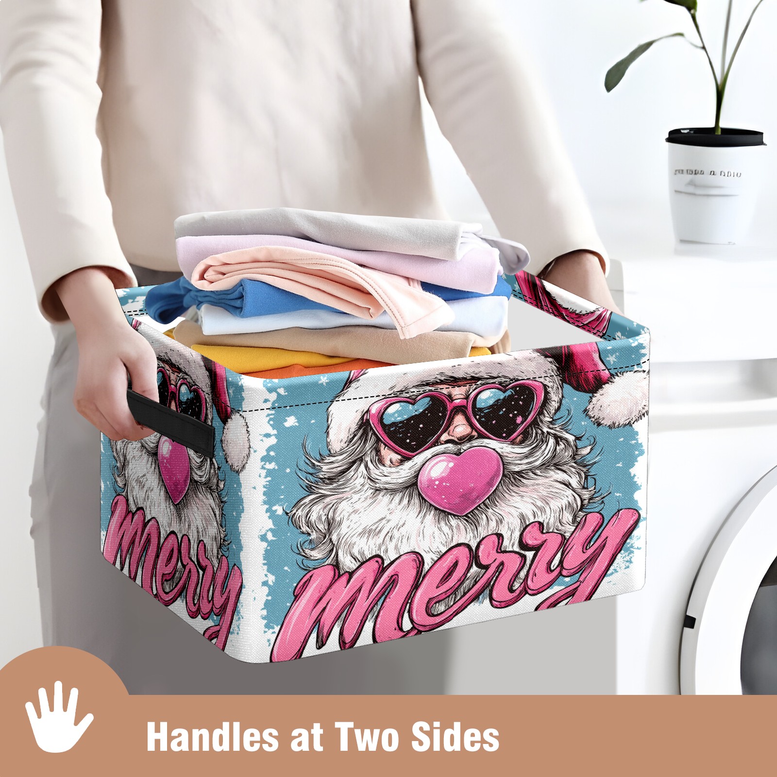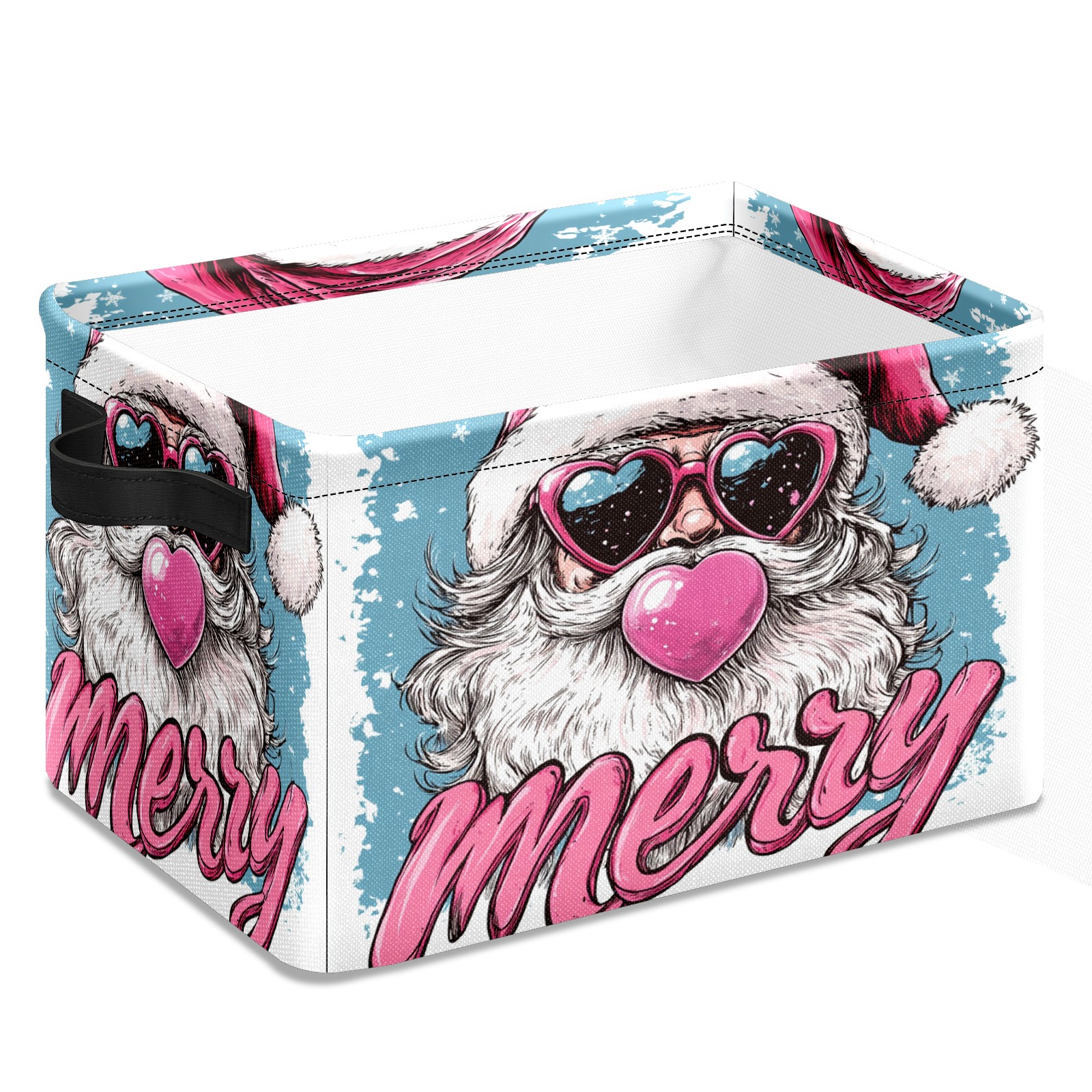 Large Storage Box Santa Claus With Love Sunglasses Foldable Storage Baskets with Handles for Organizing Clothes, Gift Storage, Children's Toys