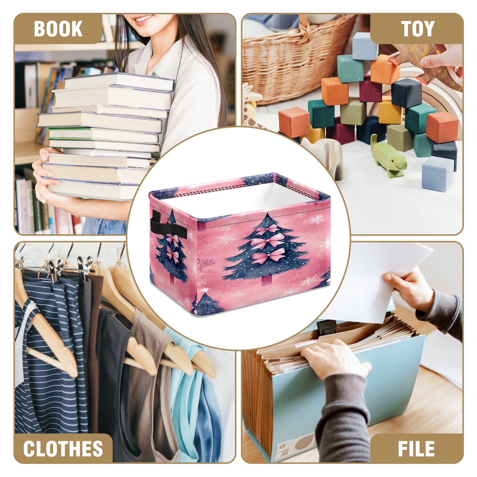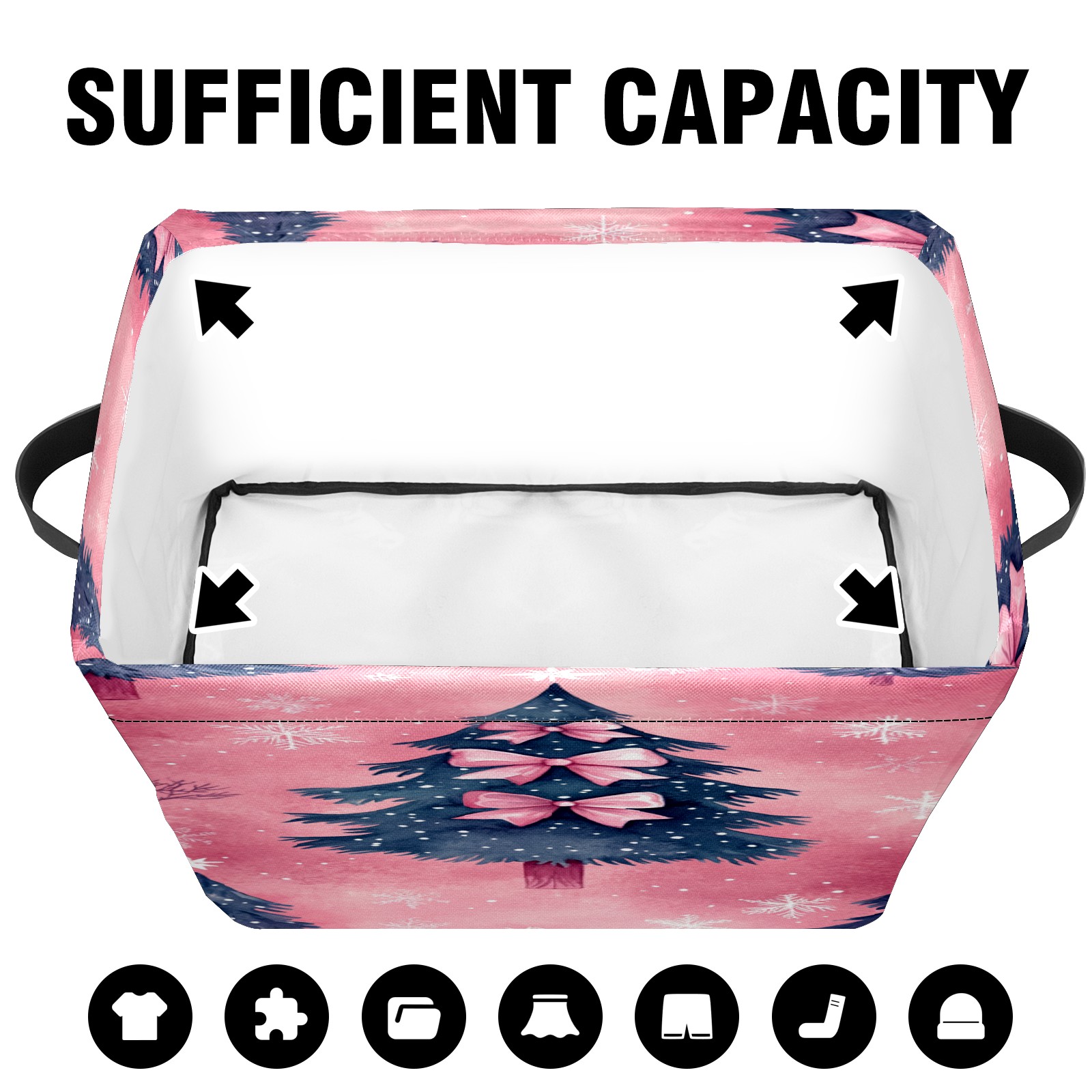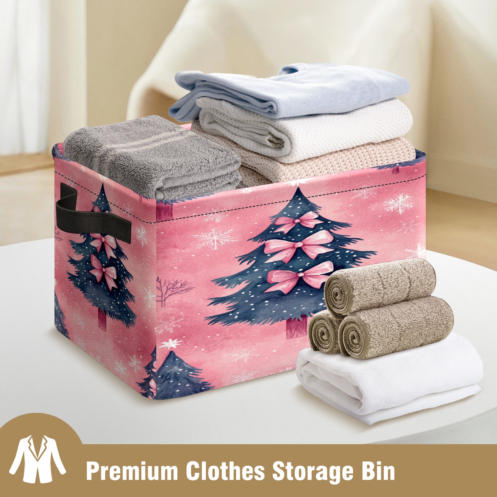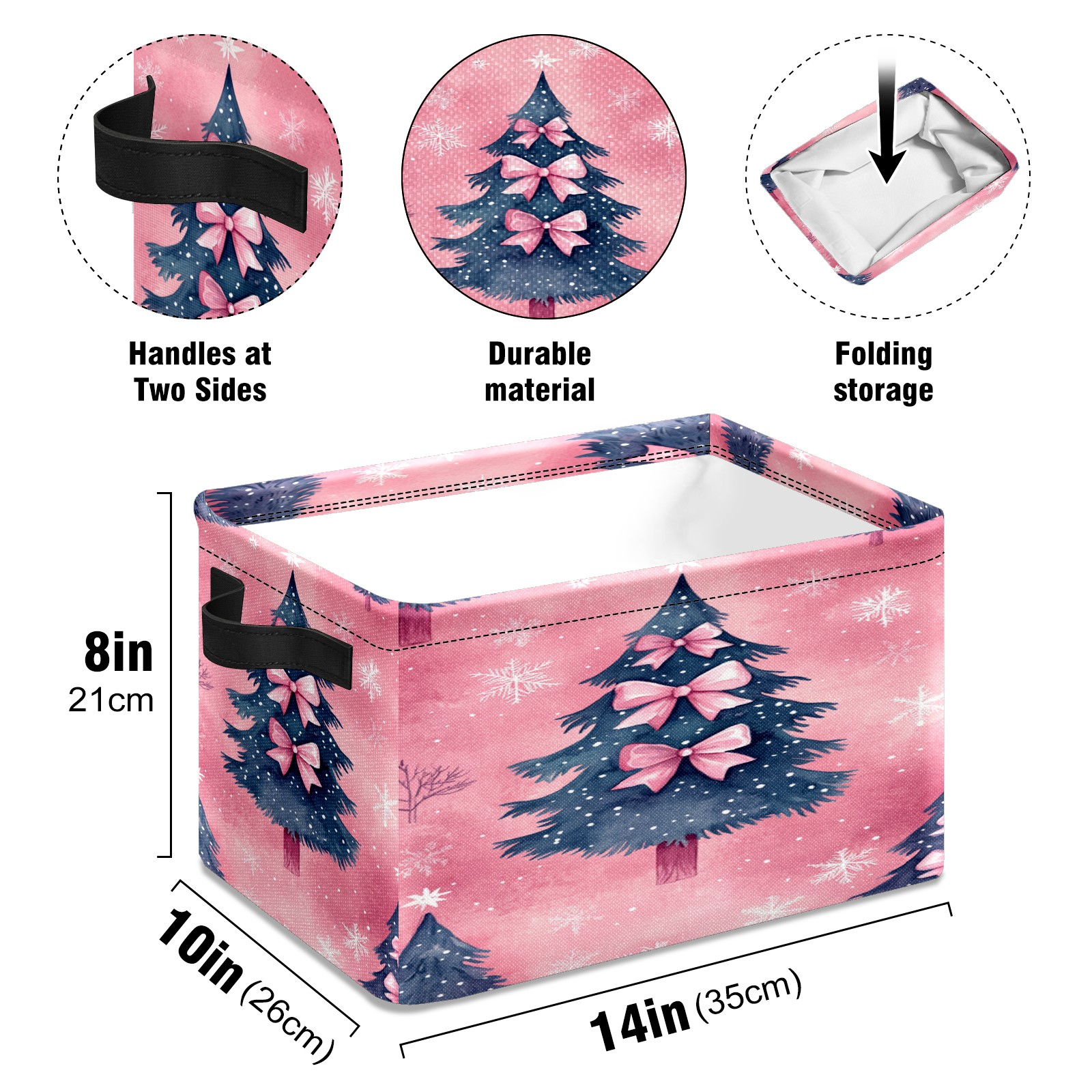 <p>This storage basket can be used for a variety of purposes, including bedroom organization baskets, laundry storage boxes, toy storage boxes, bathroom towel cube storage boxes, toilet storage containers, book and magazine storage boxes, holiday decoration storage cubes, living room storage, etc. The spacious size of 10×14×8 inches gives it ample storage capacity. This Christmas-themed storage basket is a great household item that combines practicality with a festive atmosphere! Made of easy-to-clean Oxford cloth, daily dirt can be cleaned by gently wiping with mild soapy water. With a sturdy metal frame and hard bottom support, it ensures a crisp shape when stored, but also needs to avoid machine washing to extend its service life. It is lightweight and flat after folding, taking up no space</p>