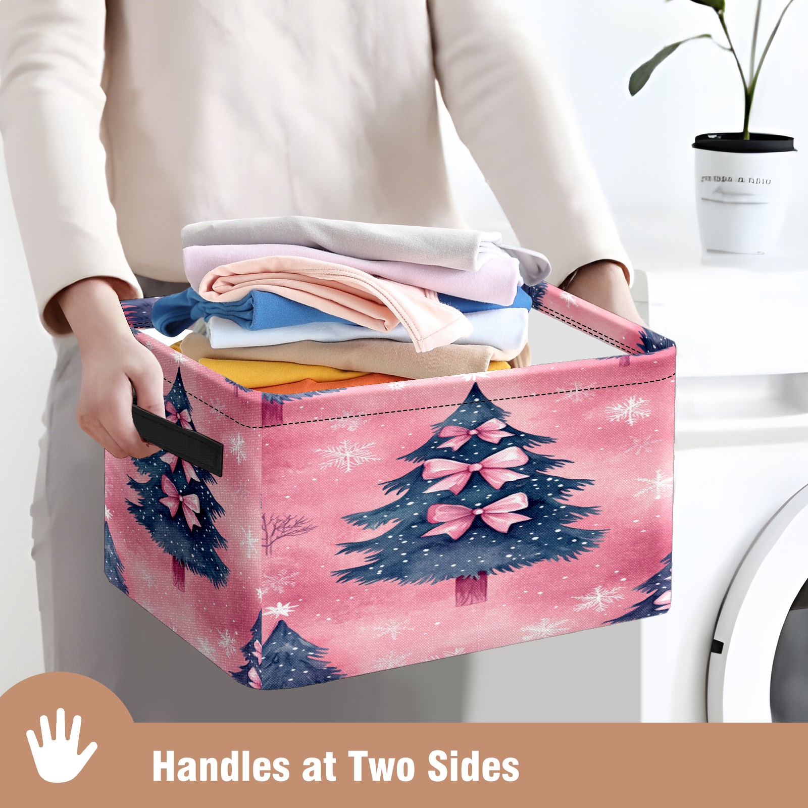 Large Storage Box Pink Butterfly Christmas Tree Foldable Storage Baskets with Handles for Organizing Clothes, Gift Storage, Children's Toys