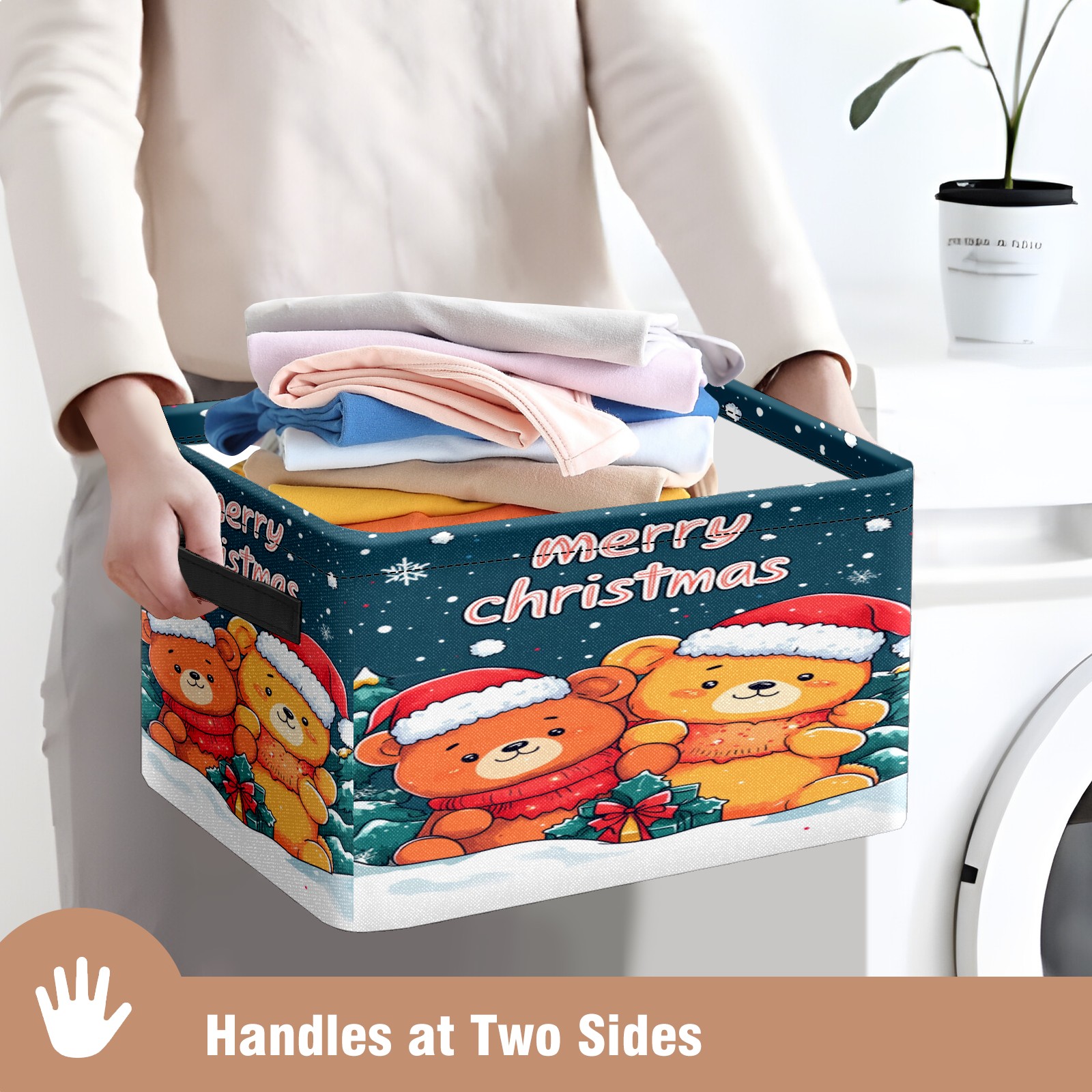 Large Storage Box Christmas Bear Foldable Storage Baskets with Handles for Organizing Clothes, Gift Storage, Children's Toys