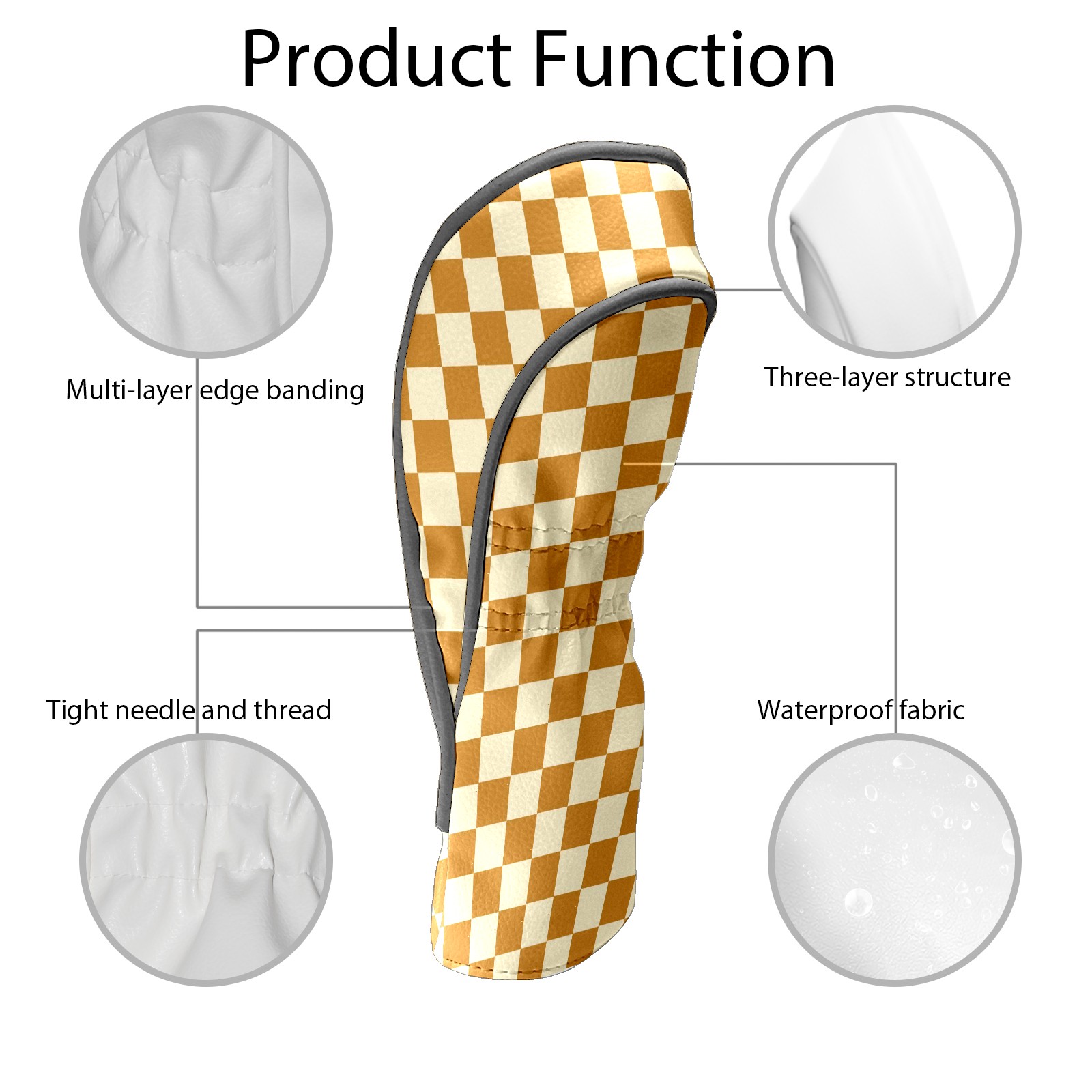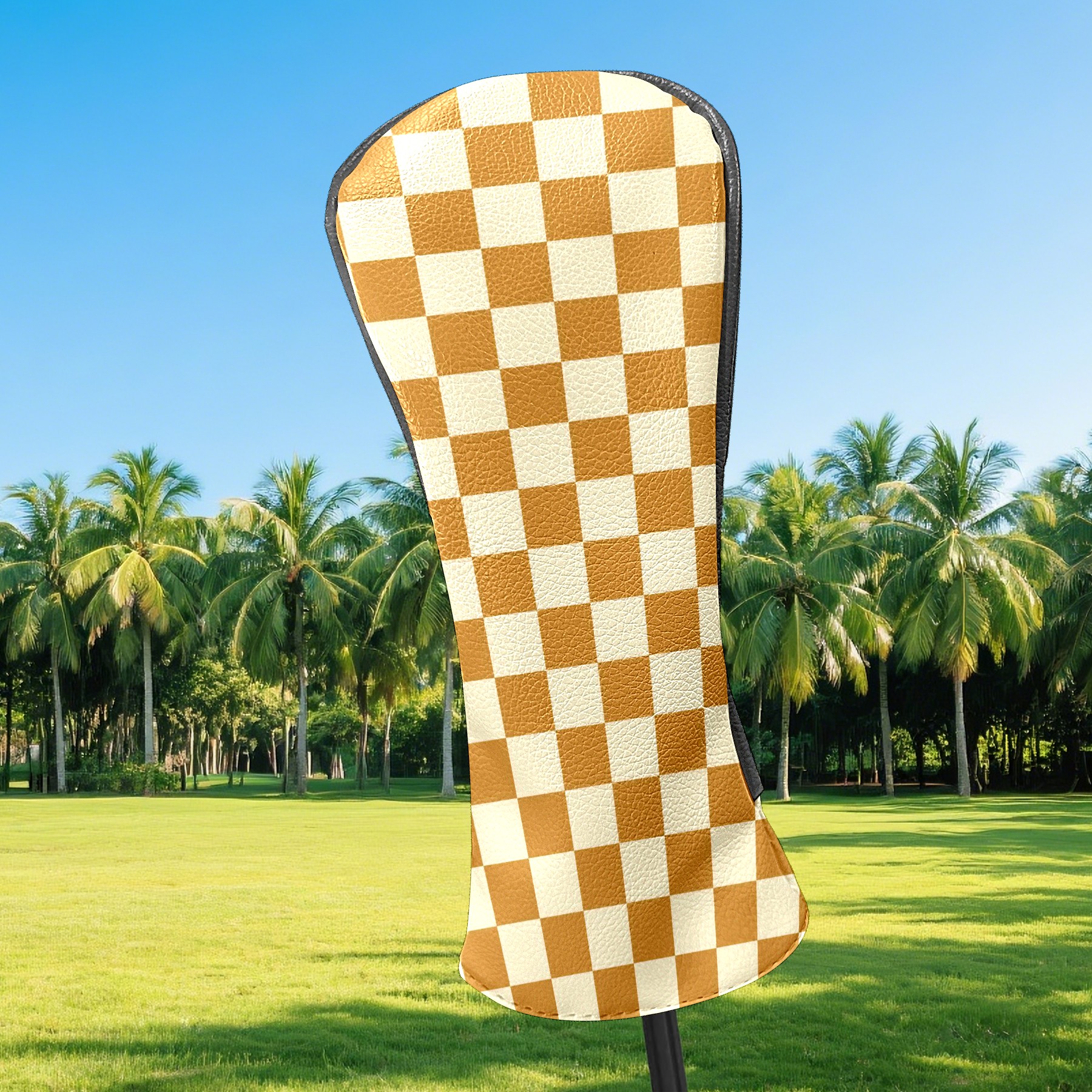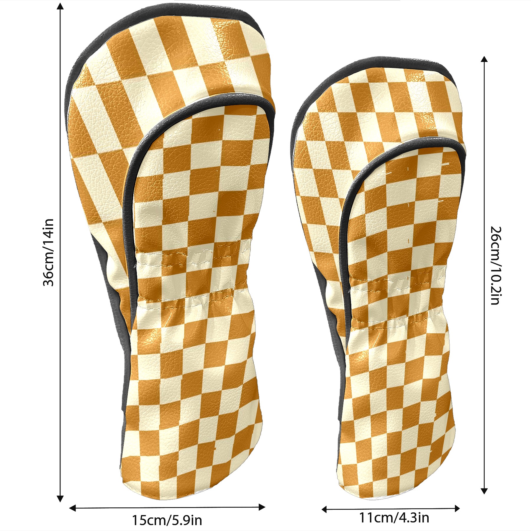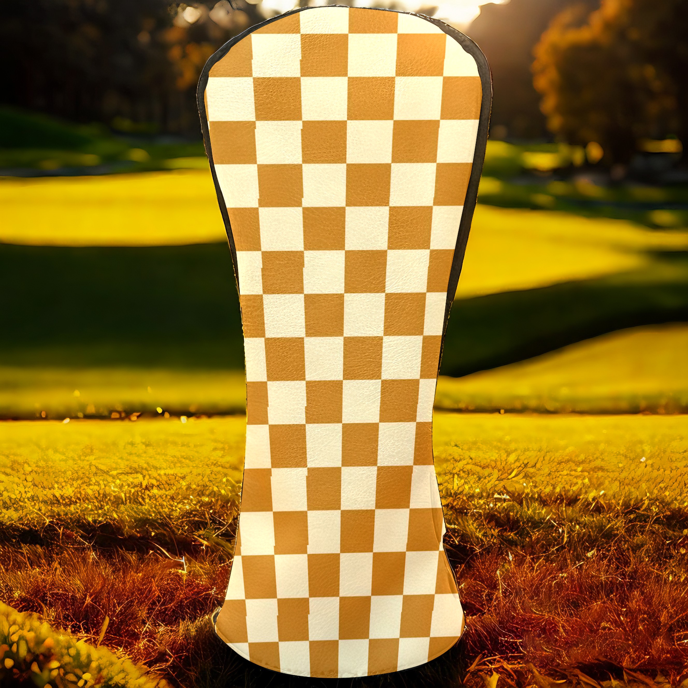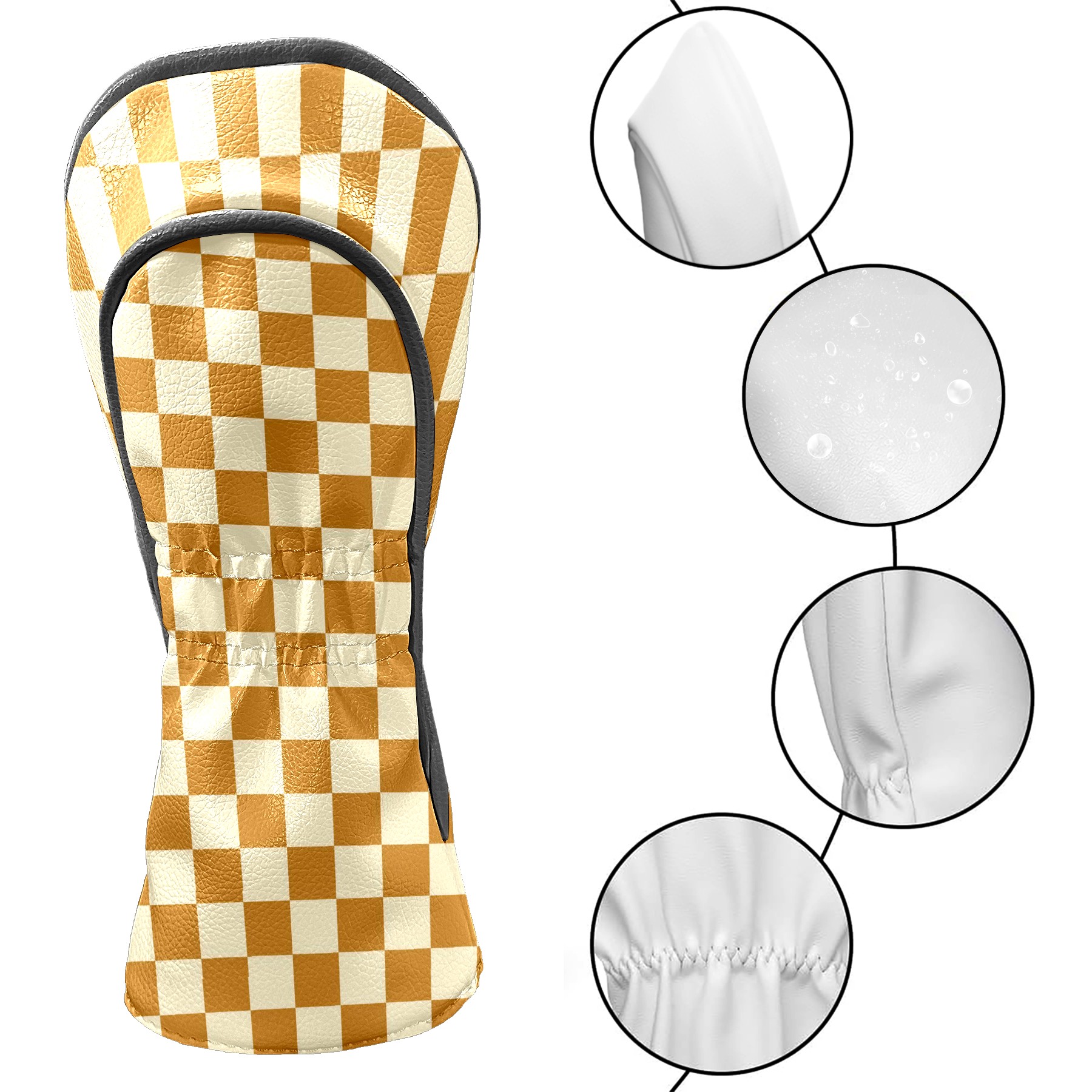 Golf Head Covers Leather Driver Headcovers, Premium Golf Club Covers with Anti-Scratch Lining 1/3/5 Wood Cover for golf clubs for Women Men (Yellow Grid Checkered)