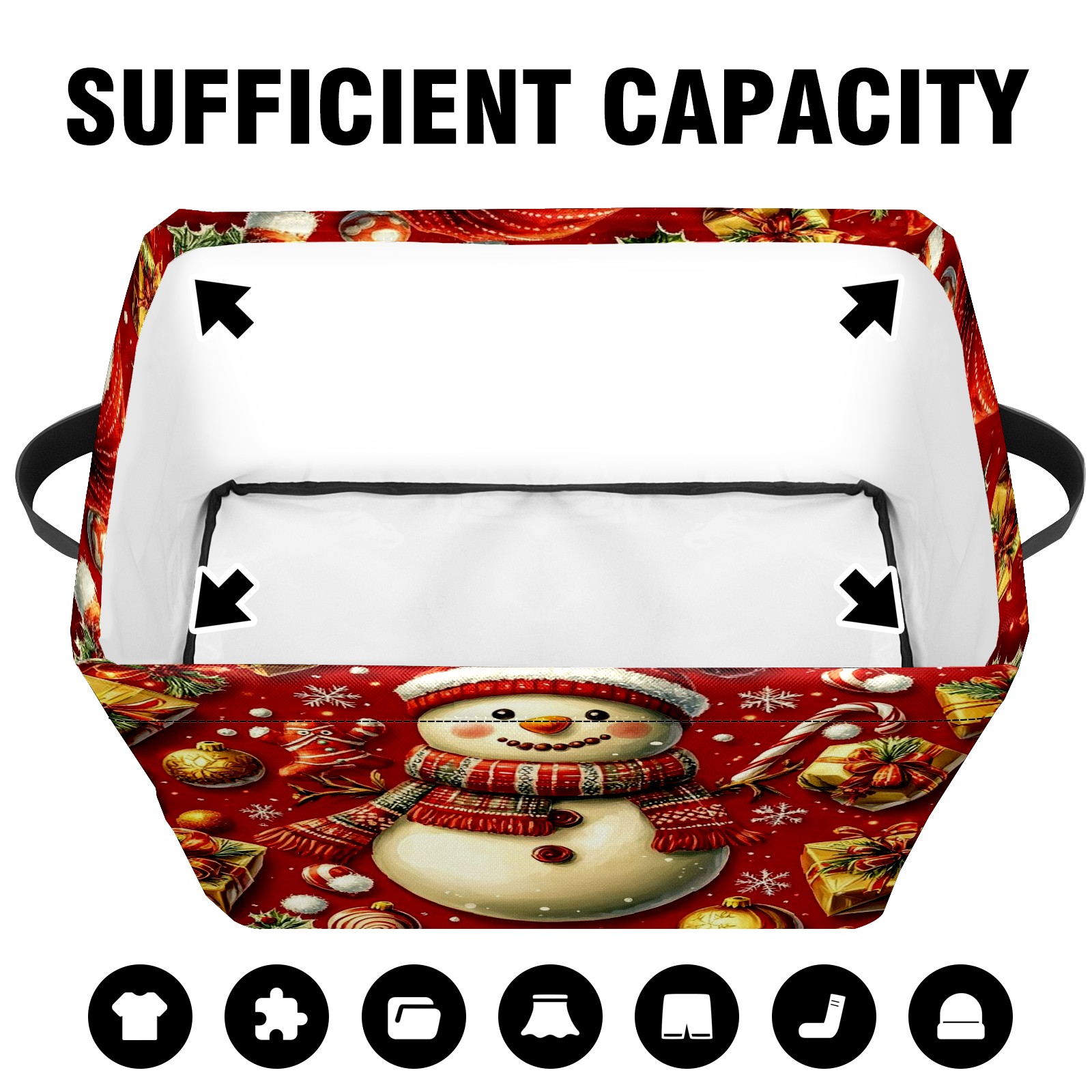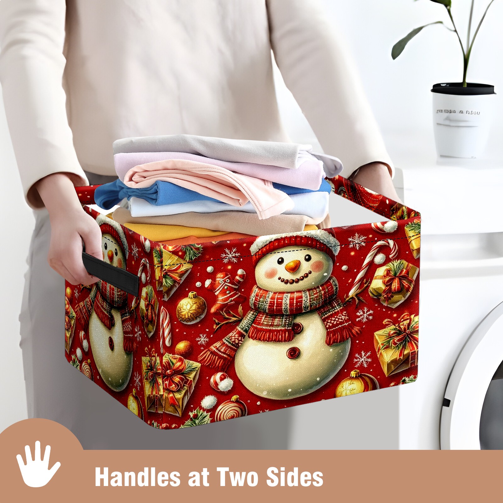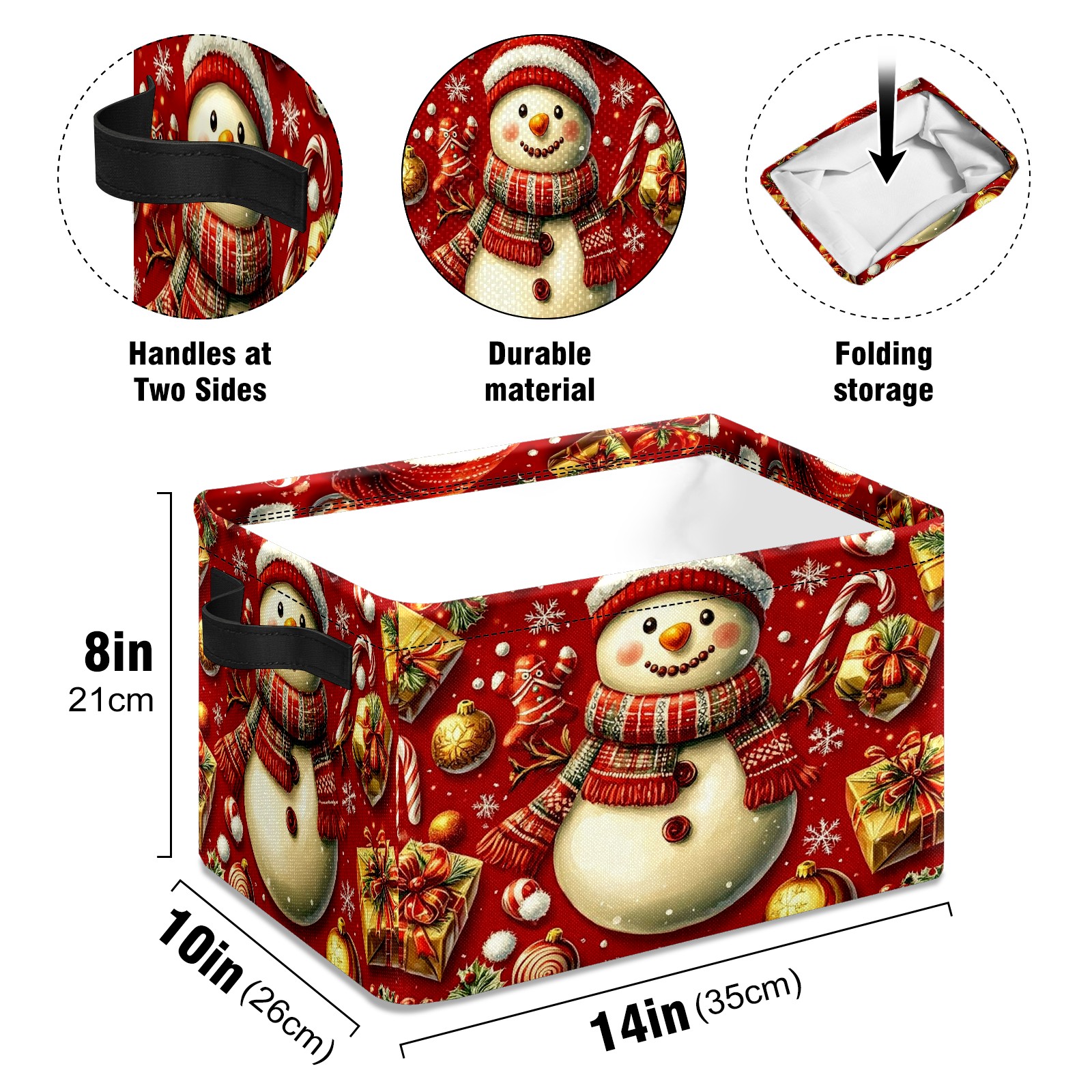 Foldable Storage Basket with Handles 10x14x8In Storage Baskets for Shelves Oxford Fabric Organizer Bin for Home, Office & School Use Snowman