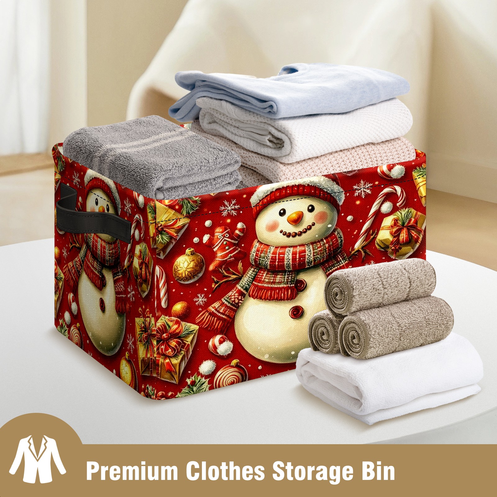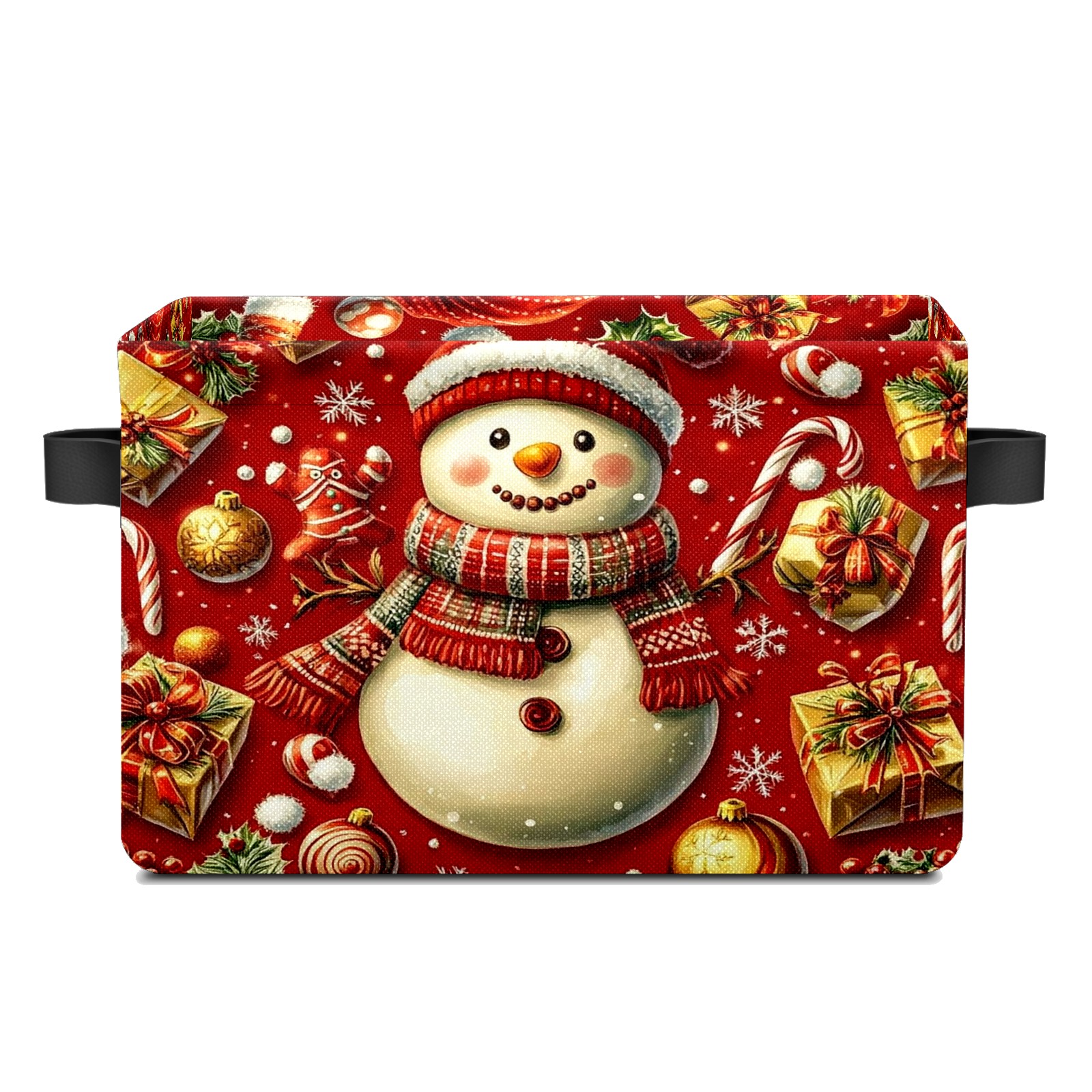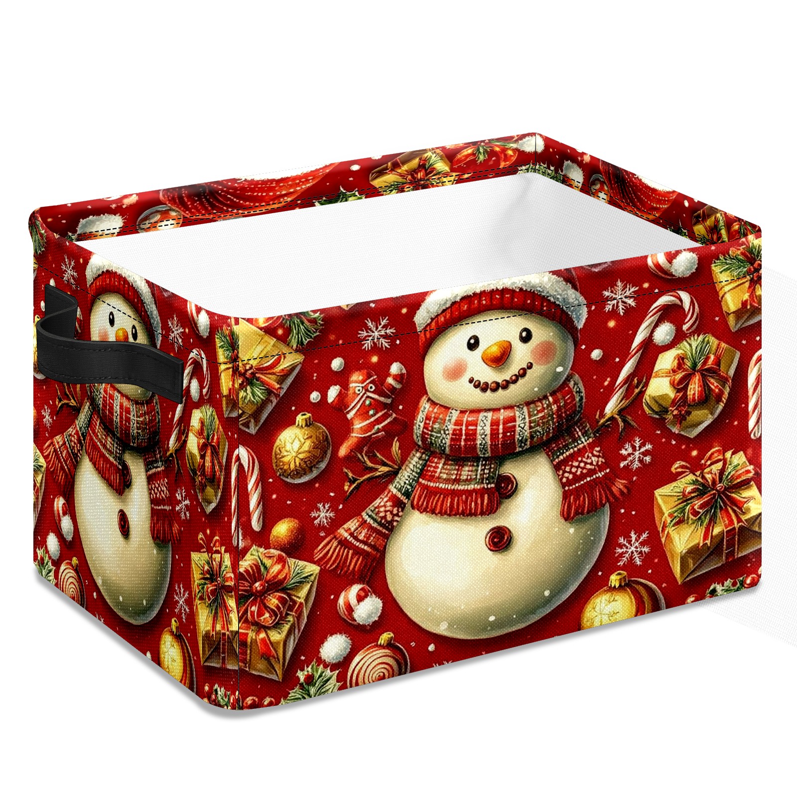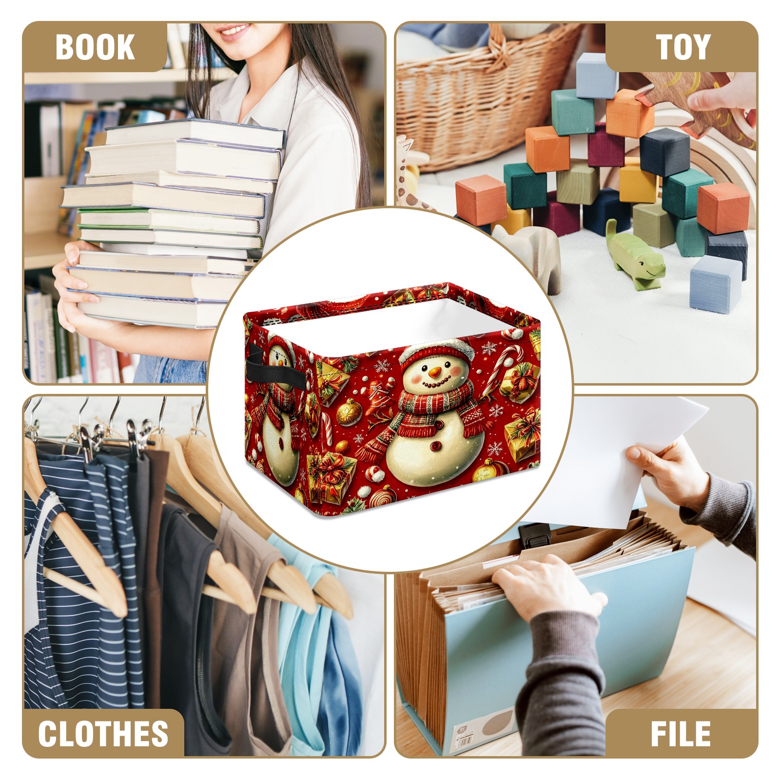 Foldable Storage Basket with Handles 10x14x8In Storage Baskets for Shelves Oxford Fabric Organizer Bin for Home, Office & School Use Snowman