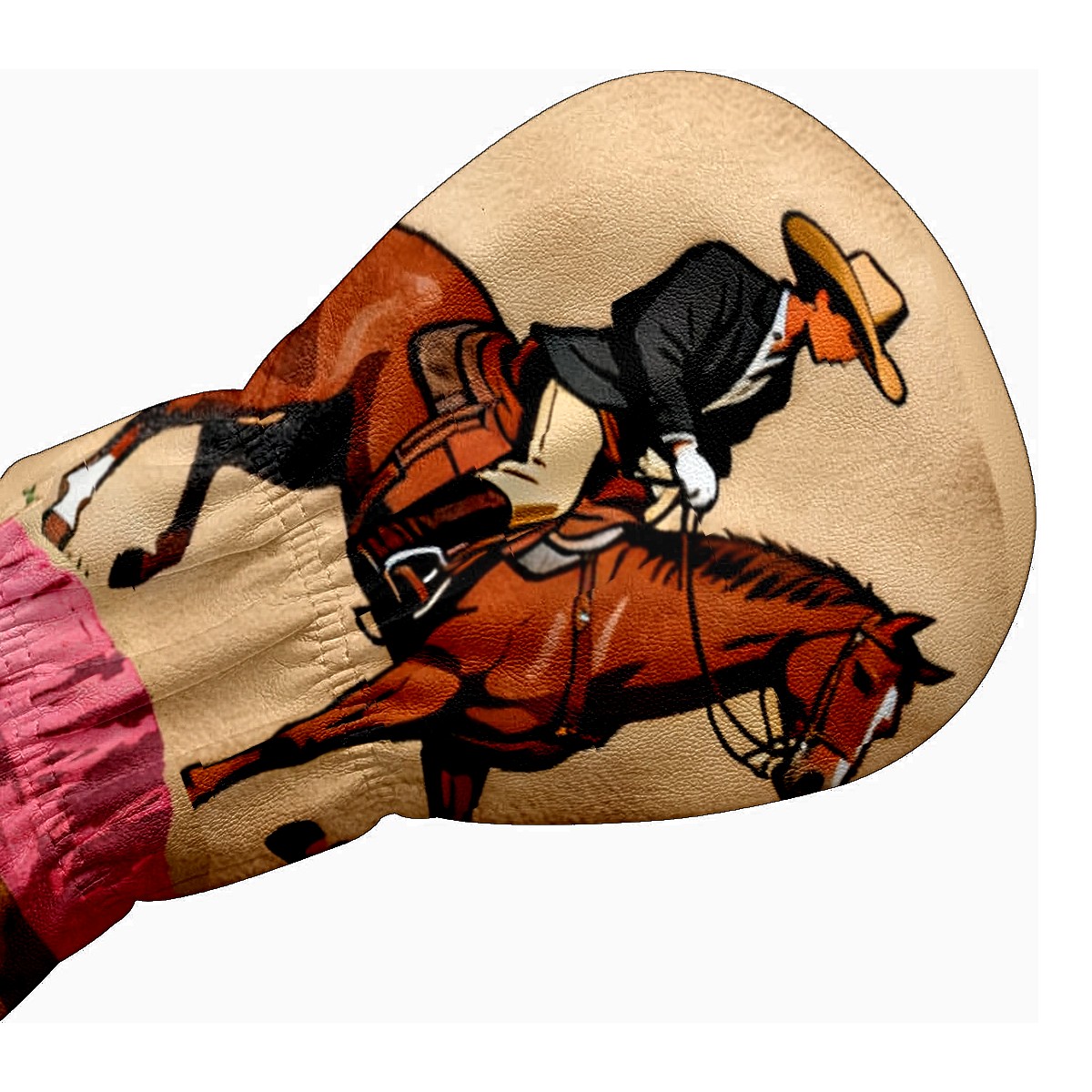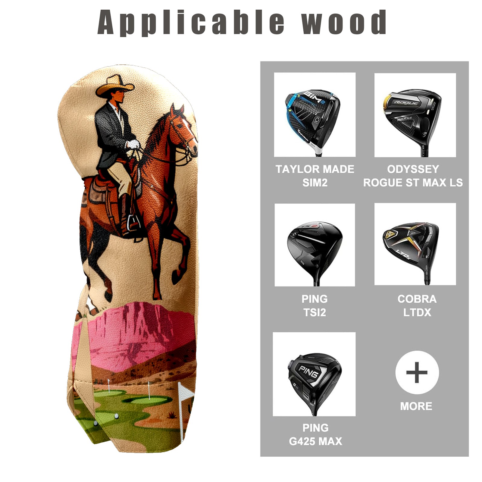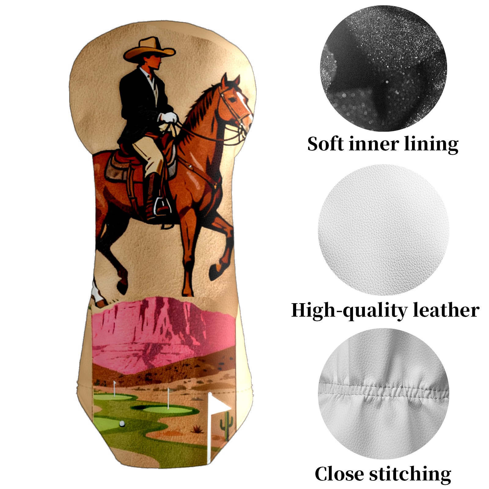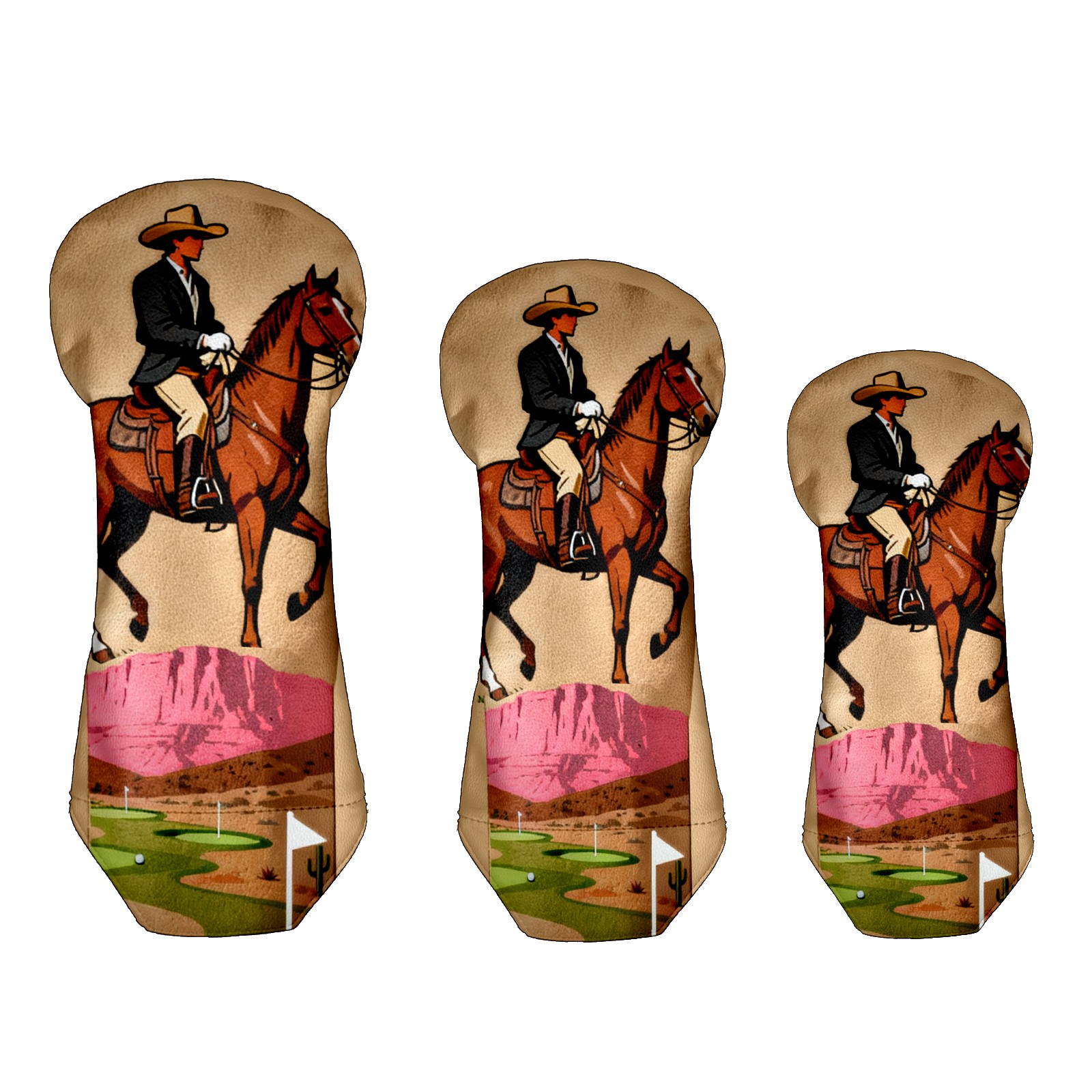 Jimeng-2025-10-20-8703-复古插画风格的高尔夫球杆套设计,主体是一个米色或浅棕色的高尔夫球杆套,表面印有精...