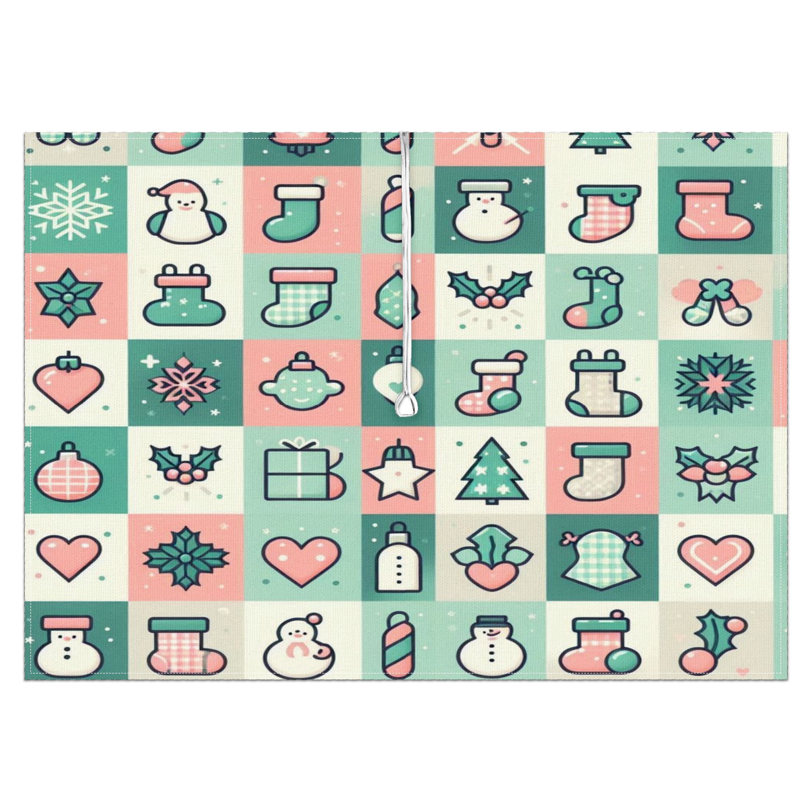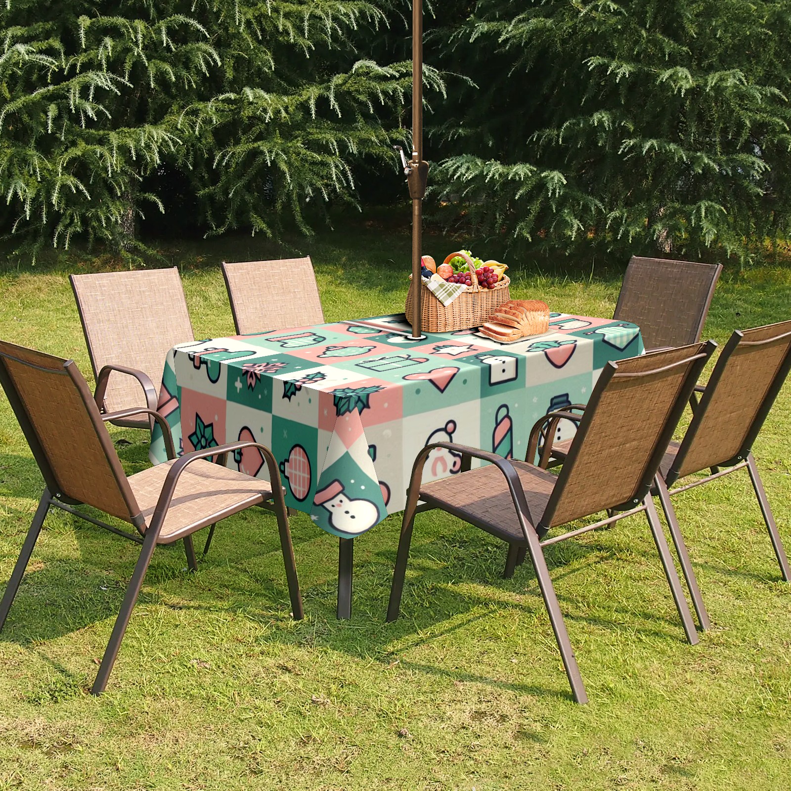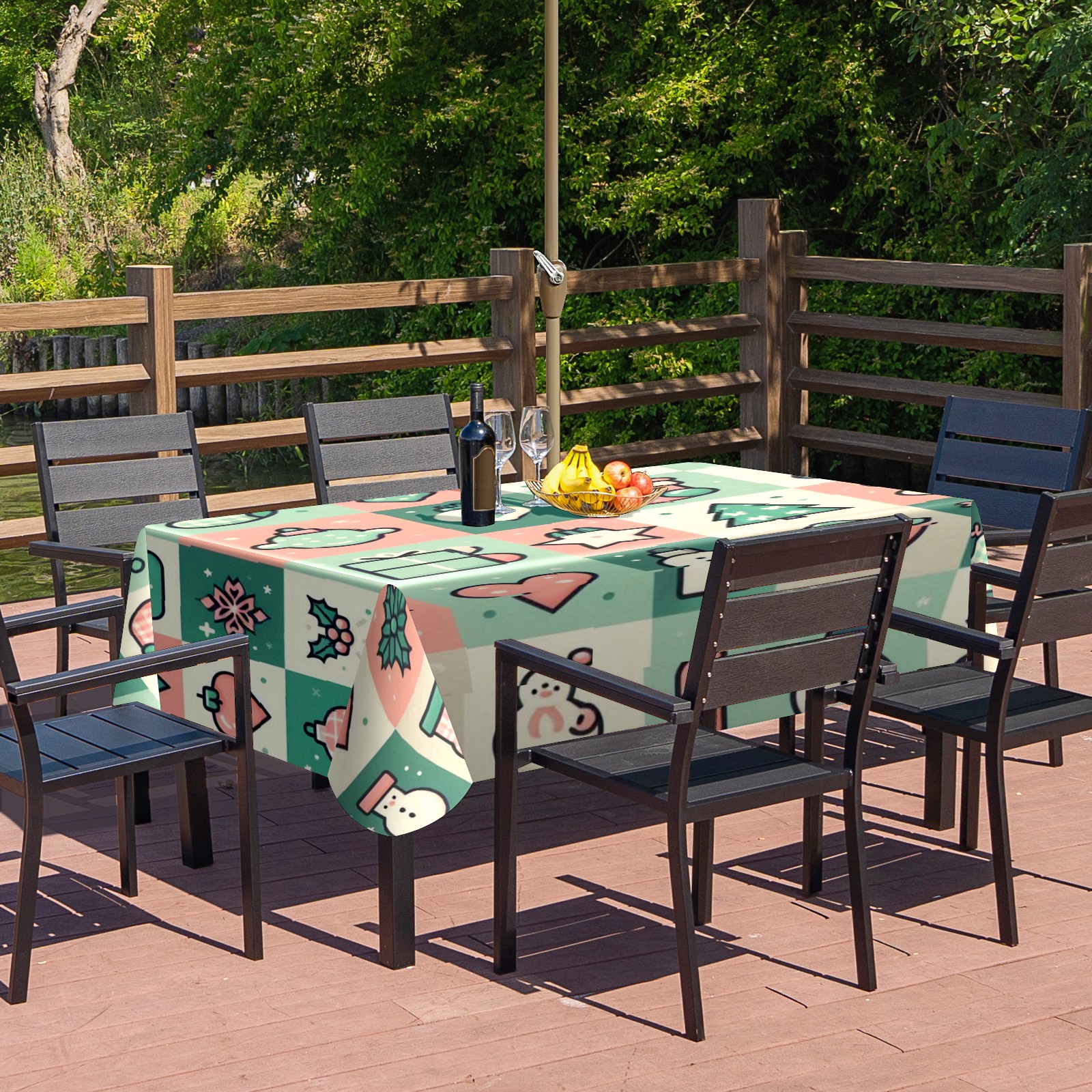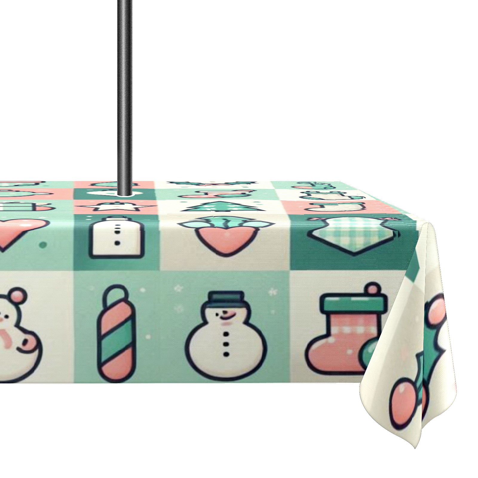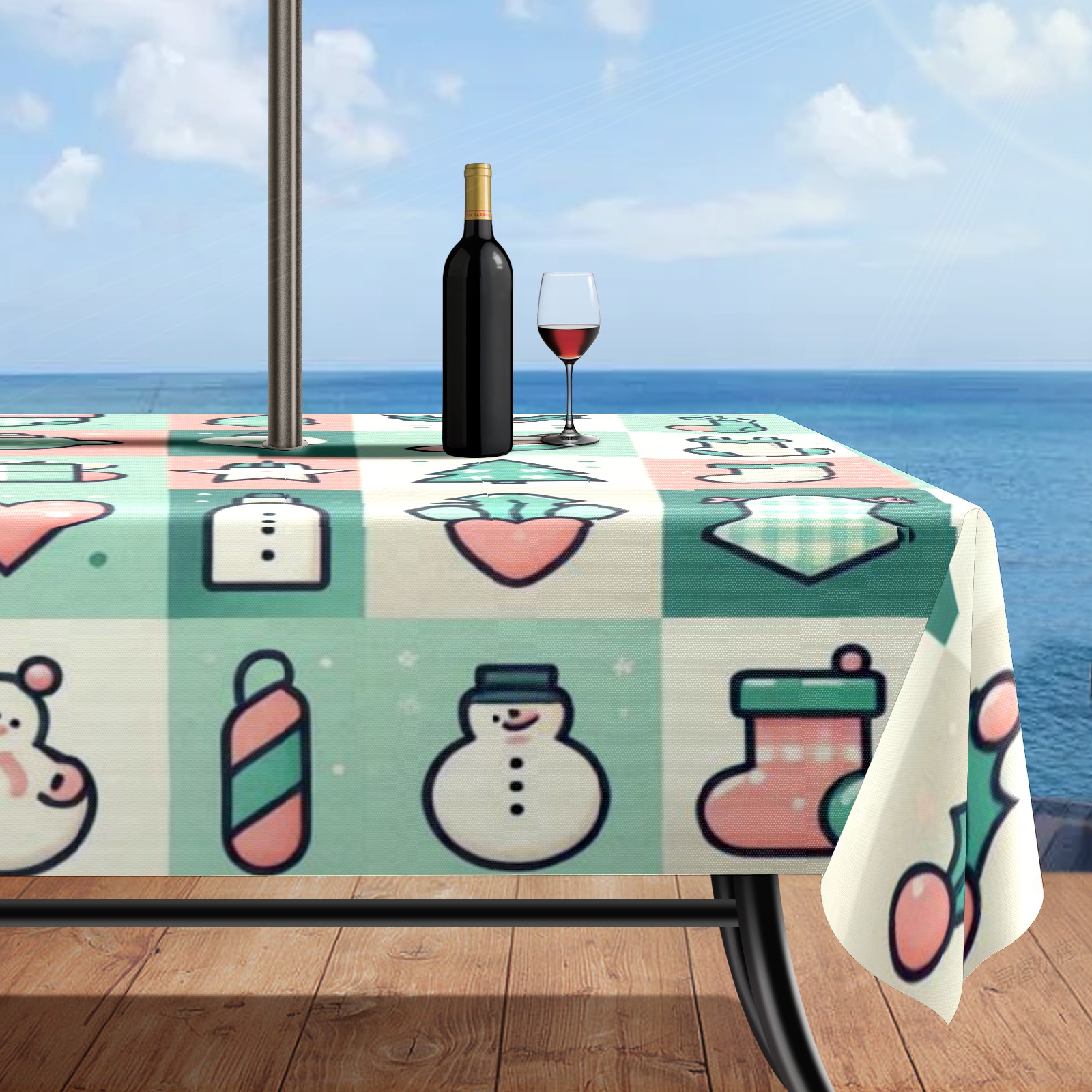 Square Umbrella Hole Tablecloth with Zipper, Light Blue Christmas Icons Waterproof Outdoor Patio Table Cover for Rectangular Table, 52x70 Inch, Fits 6-8 Seater, Easy Setup Without Removing Umbrella