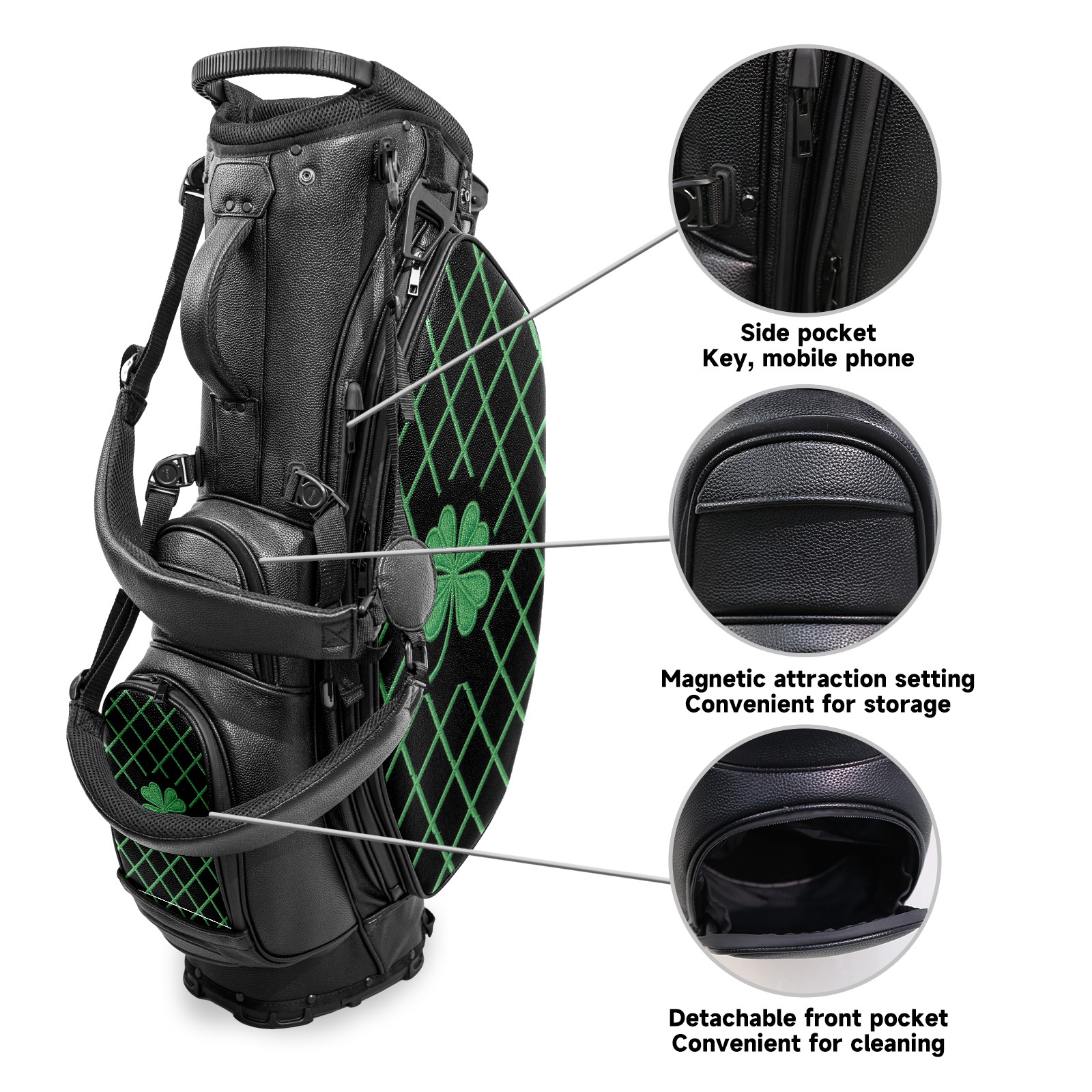 Lightweight Golf Stand Bag - 5-Way Top Divider, Golf Club Carry Bag with Adjustable Double Shoulder Straps, Zipper Storage Pockets + Rain Cover, Ideal for Men & Women Golfers Four-leaf Clover