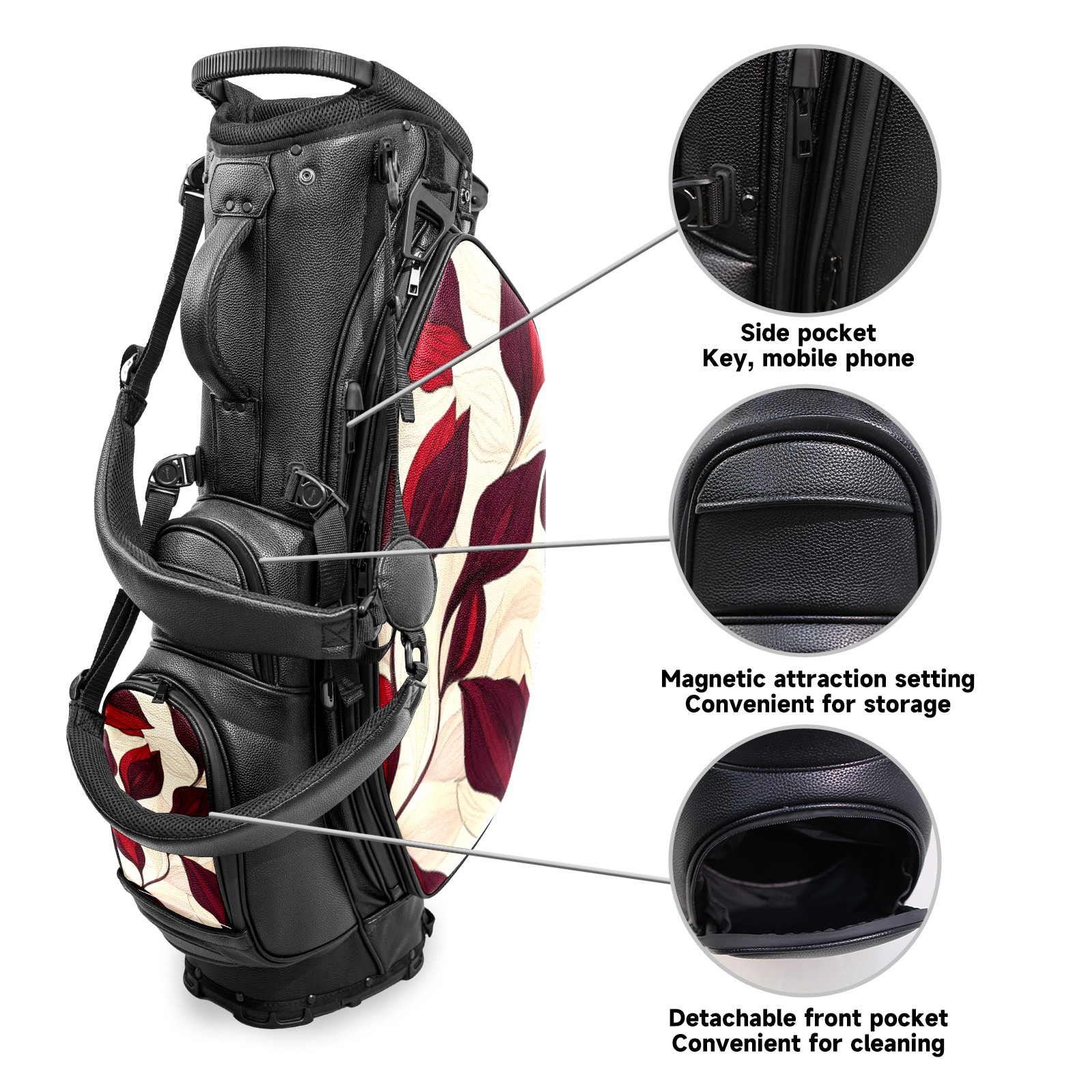 <p>This golf bag combines versatility, durability, and quality, providing comprehensive protection and easy access for your golf clubs. Its precise dimensions of 130 x 37 x 31 cm (with rain cover) and 90 x 31 x 37 cm (without rain cover) strike the perfect balance between portability and storage capacity.The five-way head frame (with five-way top compartments) allows for strategic compartmentalization, allowing you to neatly organize your various clubs and separate them to protect them from bumps, scratches, and scuffs. Its versatile compartmental design features a spacious five-compartment structure, including a separate, full-size club compartment, to fully accommodate your clubs while protecting their integrity.This bag features a versatile storage system with multiple waterproof zippered pockets for securely storing golf accessories, as well as a dedicated insulated cooler pocket with excellent insulation to keep your drinks cold. The built-in rain cover effectively repels moisture, ensuring your clubs remain dry and protected even in wet weather. For enhanced carrying comfort, this bag features ergonomically designed, padded, breathable, adjustable shoulder straps and an adjustable chest strap to distribute shoulder pressure for easier and more comfortable carrying. A portable rear handle makes lifting and carrying easier.Quality is evident in every detail: double-stitched reinforced edges enhance structural stability, smooth and durable zippers ensure long-lasting reliability, and wear-resistant bottom rivets ensure secure placement on all terrains, effectively preventing wear and tear. Crafted from classic pebbled matte PU fabric, it perfectly complements both business and casual occasions. Available in black and white, it exudes understated elegance and sophistication.This golf bag, with its sturdy plastic base, combines premium quality and durability, making it the ideal companion for every golfer, whether heading to the course for a casual round or attending a business golf event.</p>