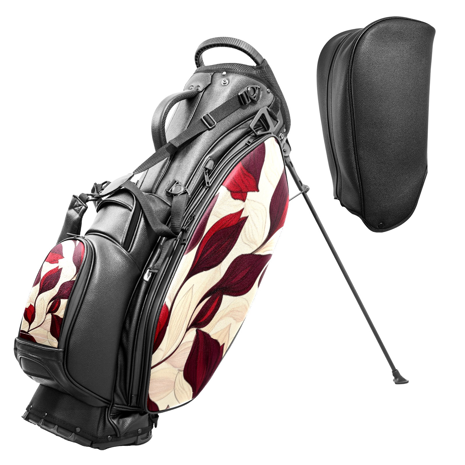 Lightweight Golf Stand Bag - 5-Way Top Divider, Golf Club Carry Bag with Adjustable Double Shoulder Straps, Zipper Storage Pockets + Rain Cover, Ideal for Men & Women Golfers Dark Red Flower