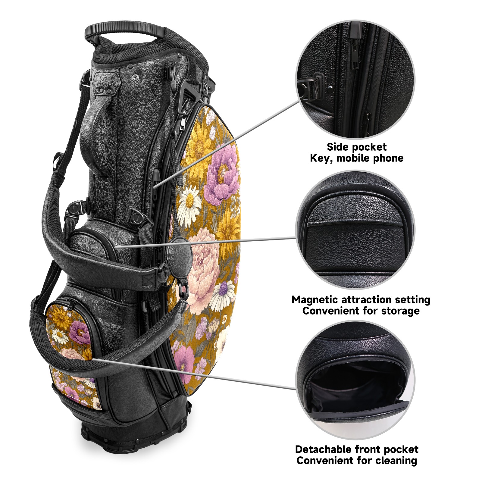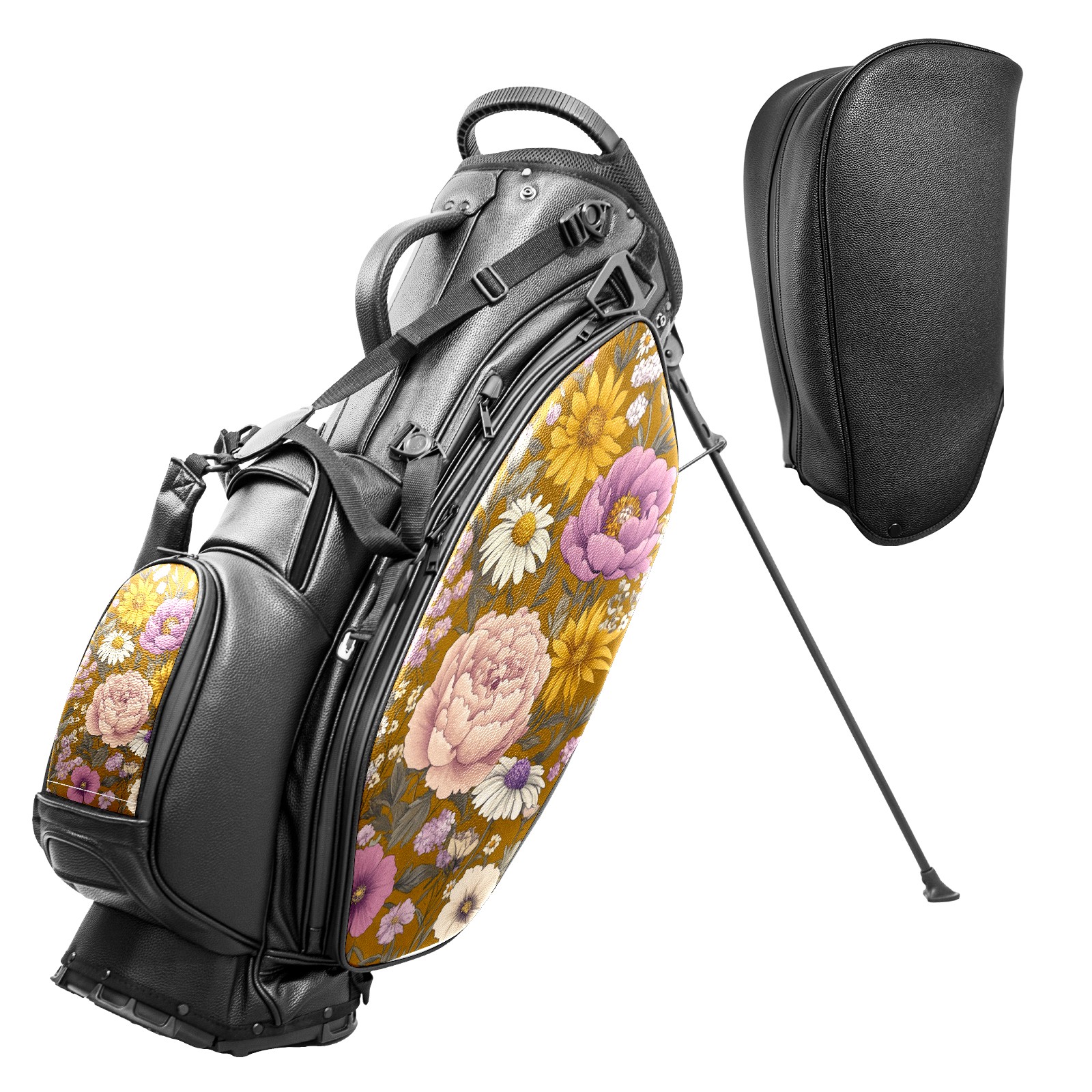 Lightweight Golf Stand Bag - 5-Way Top Divider, Golf Club Carry Bag with Adjustable Double Shoulder Straps, Zipper Storage Pockets + Rain Cover, Ideal for Men & Women Golfers Brown Flower