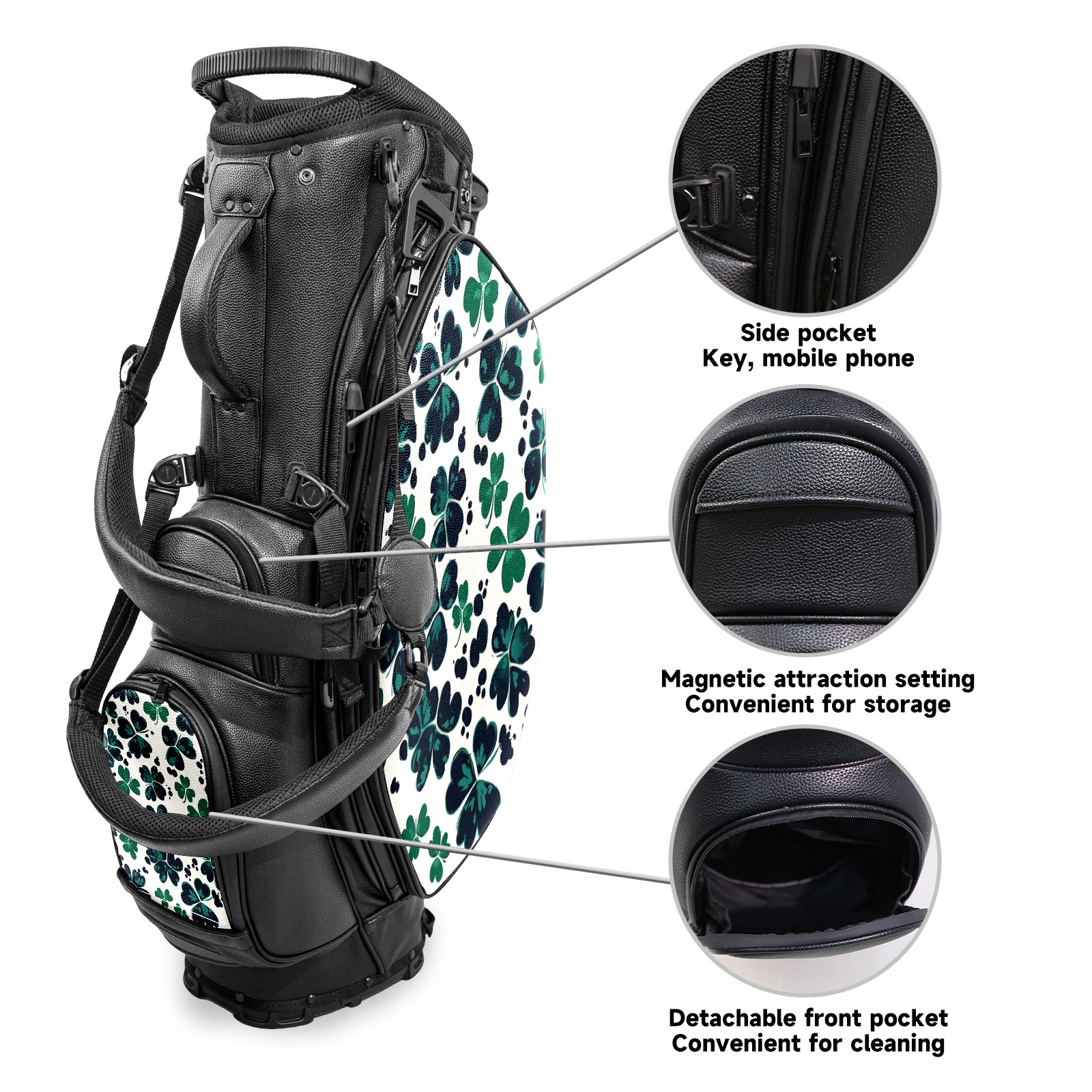 Lightweight Golf Stand Bag - 5-Way Top Divider, Golf Club Carry Bag with Adjustable Double Shoulder Straps, Zipper Storage Pockets + Rain Cover, Ideal for Men & Women Golfers Four-leaf Clover