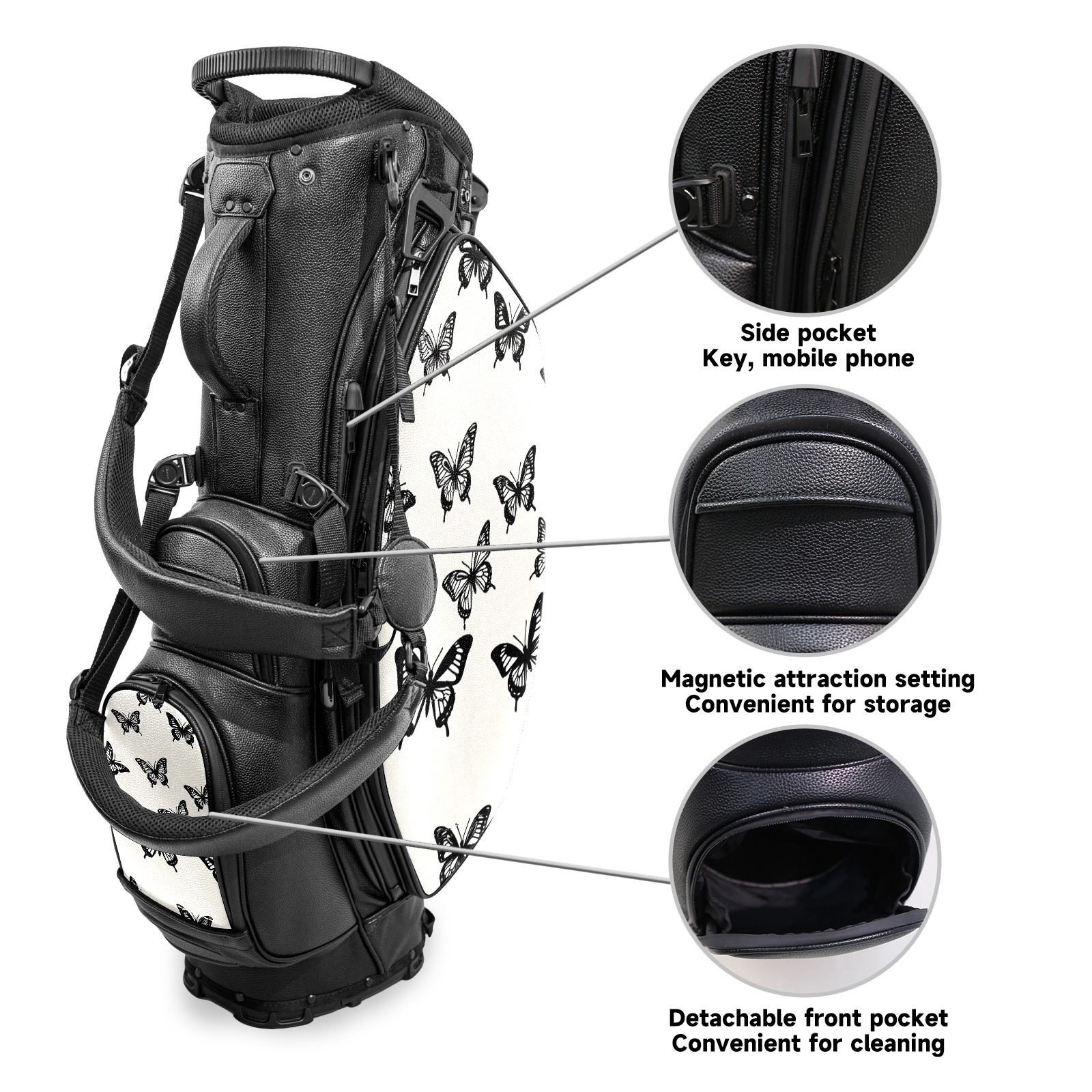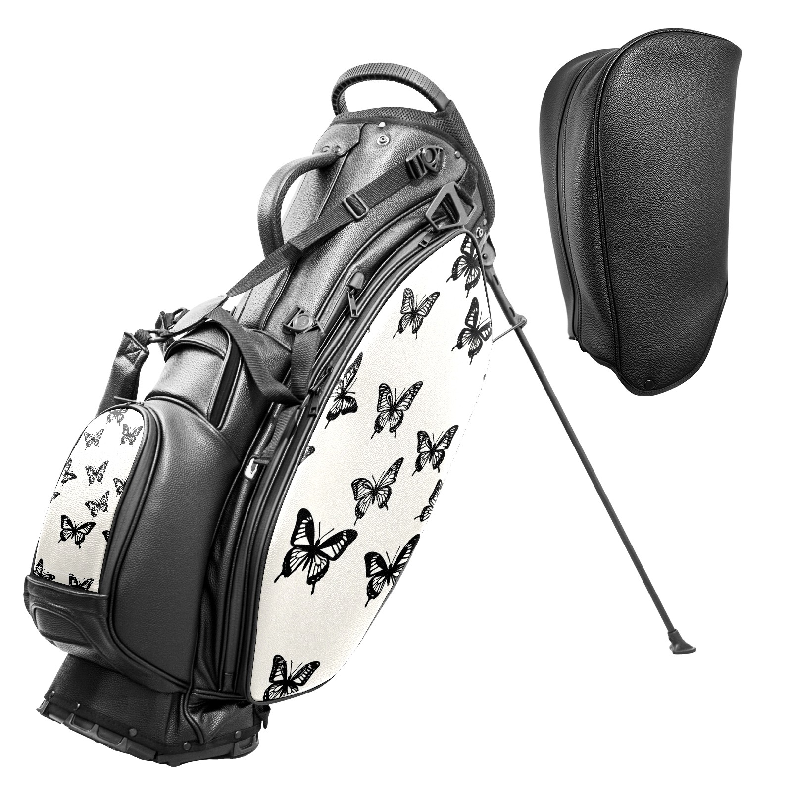 Lightweight Golf Stand Bag - 5-Way Top Divider, Golf Club Carry Bag with Adjustable Double Shoulder Straps, Zipper Storage Pockets + Rain Cover, Ideal for Men & Women Golfers Black Butterfly