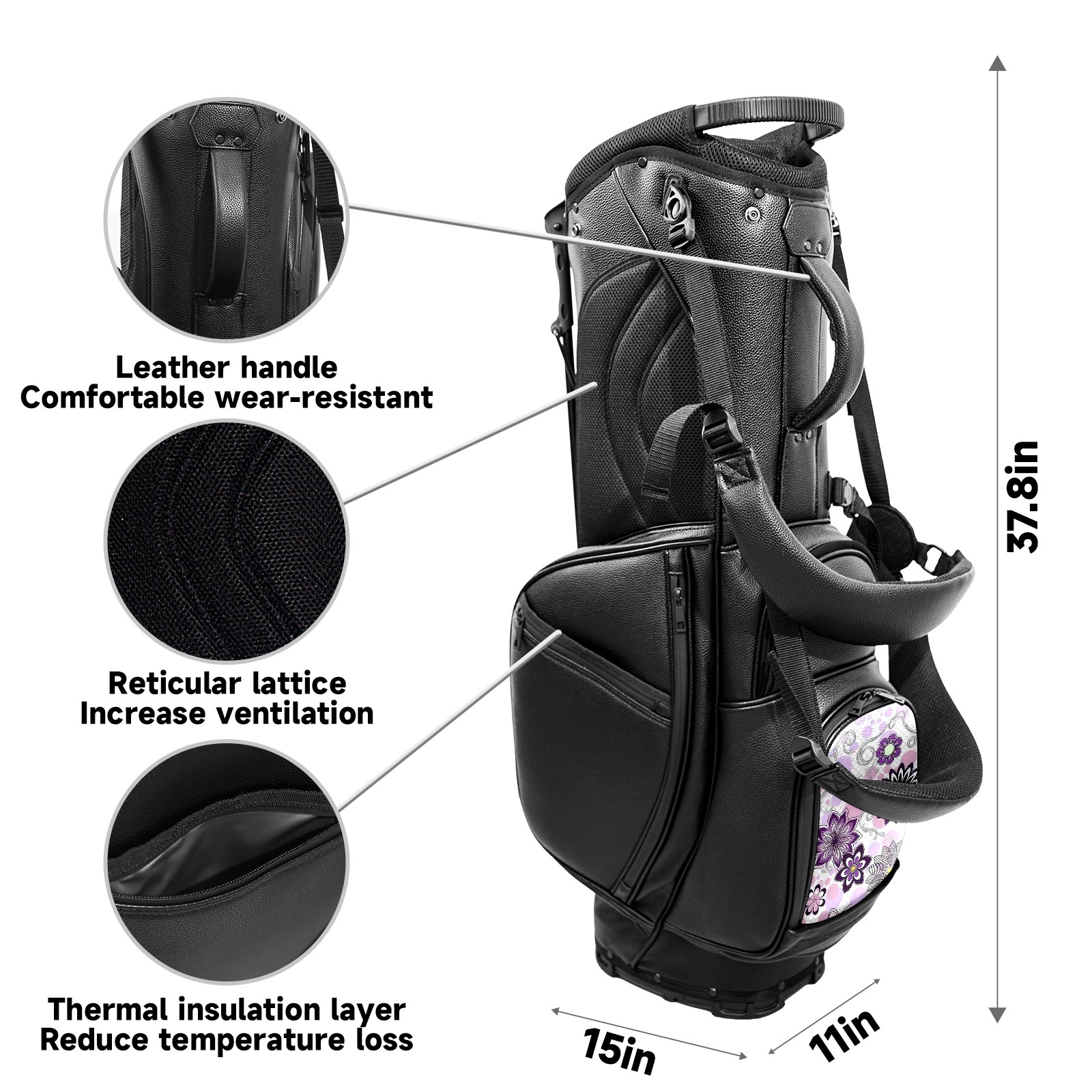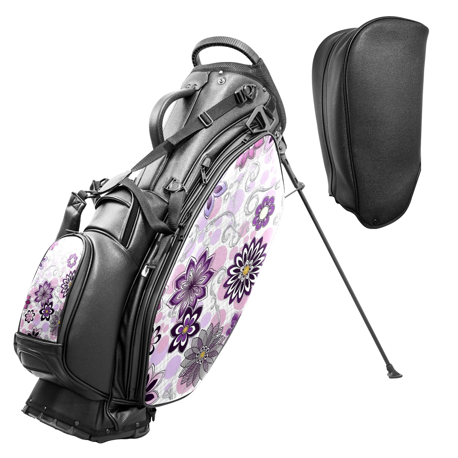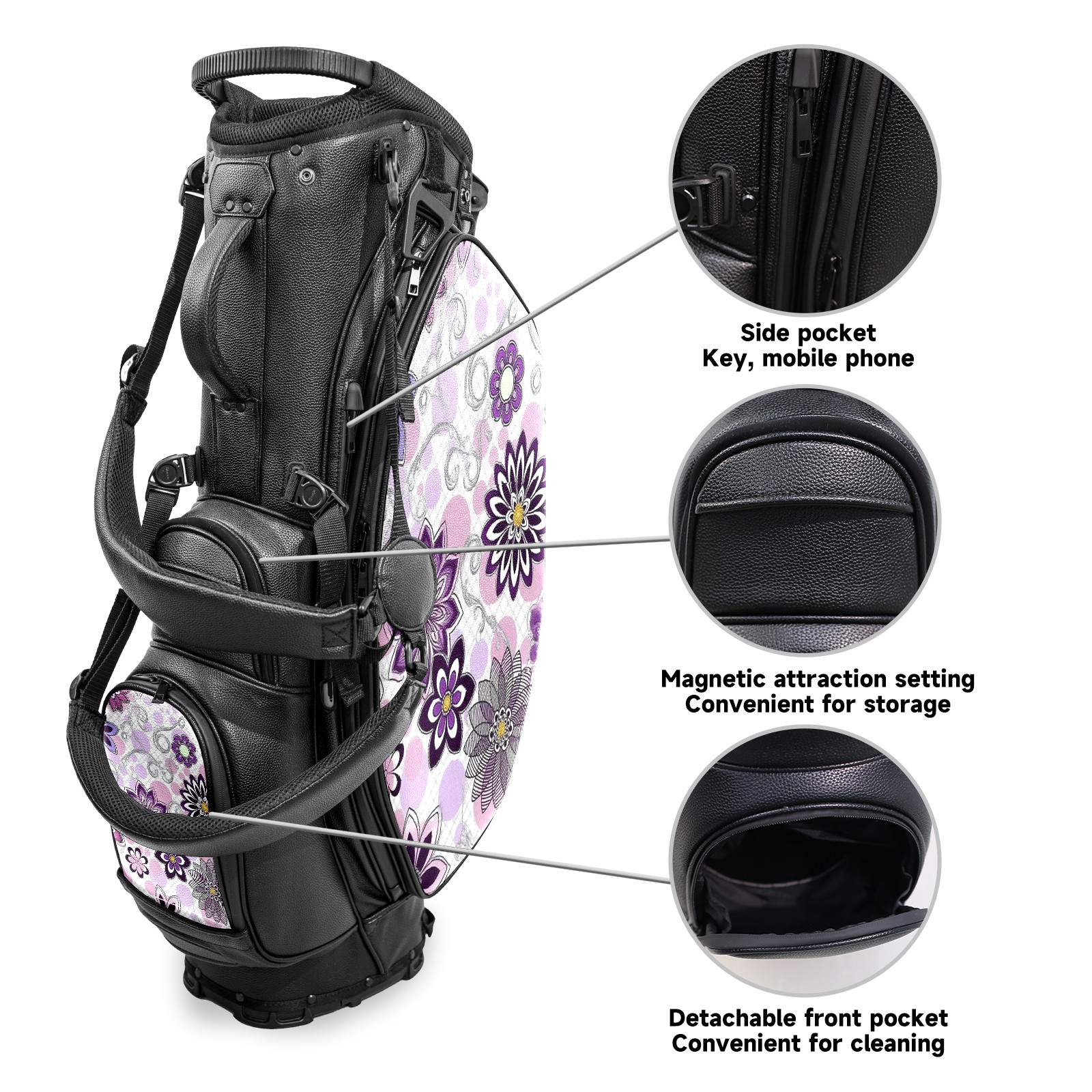 Lightweight Golf Stand Bag - 5-Way Top Divider, Golf Club Carry Bag with Adjustable Double Shoulder Straps, Zipper Storage Pockets + Rain Cover, Ideal for Men & Women Golfers Purple Flower