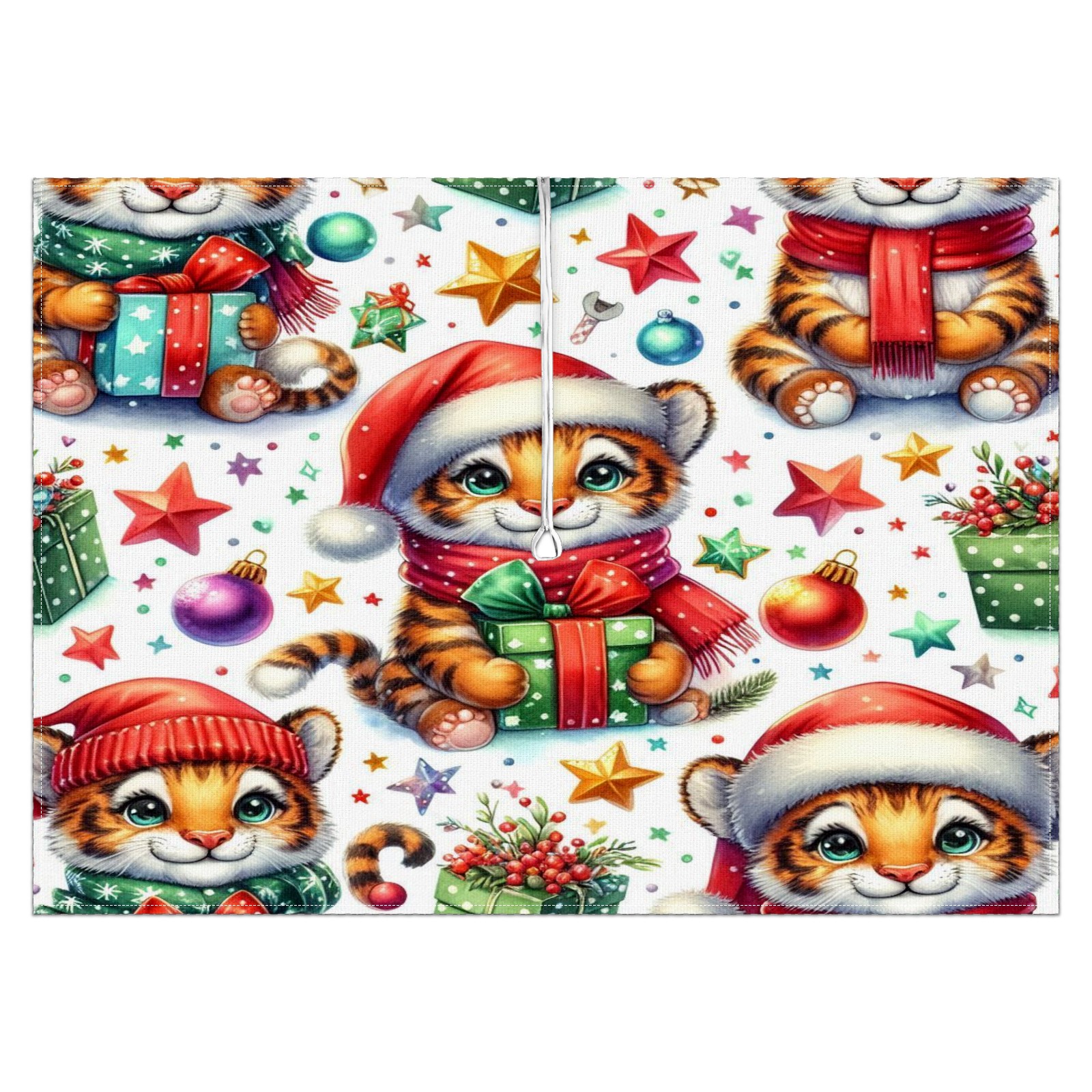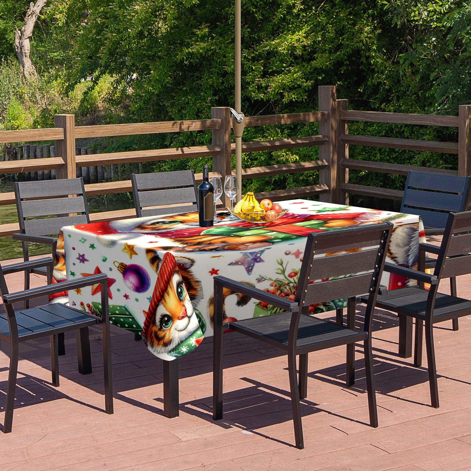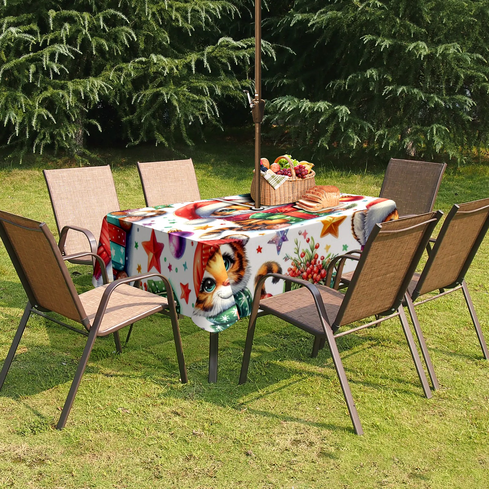 Square Umbrella Hole Tablecloth with Zipper, Red Christmas Tigers Waterproof Outdoor Patio Table Cover for Rectangular Table, 52x70 Inch, Fits 6-8 Seater, Easy Setup Without Removing Umbrella