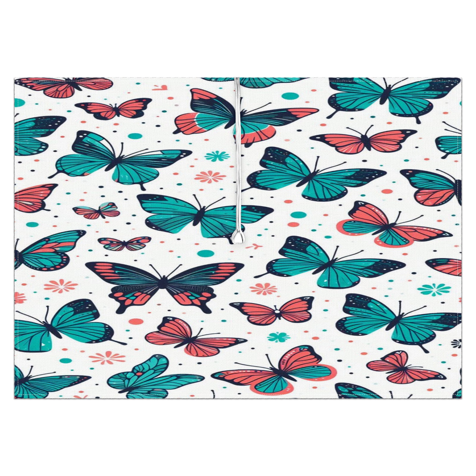 Square Umbrella Hole Tablecloth with Zipper, Blue Butterflies Waterproof Outdoor Patio Table Cover for Rectangular Table, 52x70 Inch, Fits 6-8 Seater, Easy Setup Without Removing Umbrella
