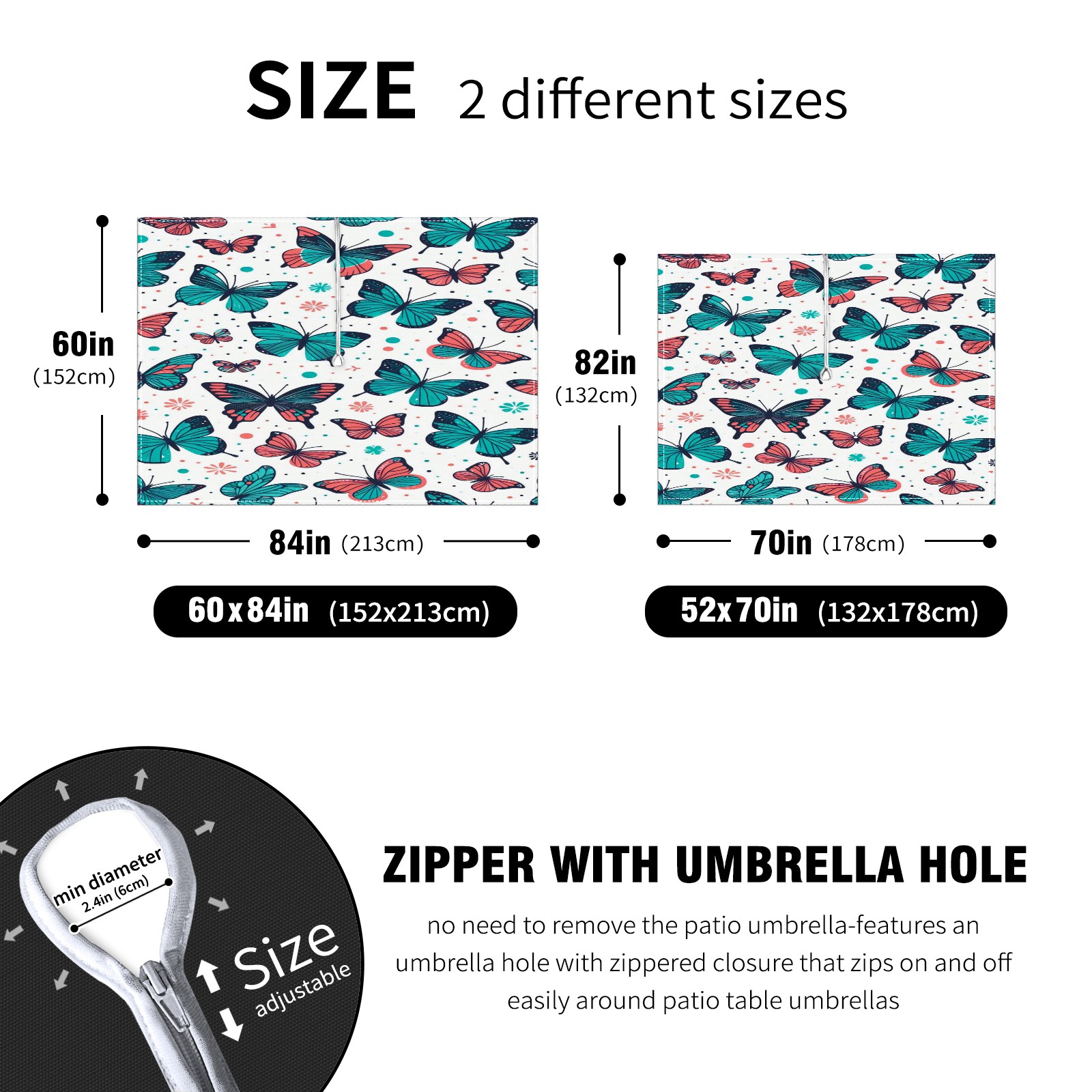 • <p><strong>Effortless Outdoor Elegance, in Seconds.</strong></p><p>Tired of struggling with your patio umbrella? Our Square Tablecloth features a <strong>game-changing zippered hole</strong> that lets you set a beautiful table <strong>without removing the umbrella!</strong></p><p>• <strong>ZIPPERED DESIGN</strong>: No more heavy lifting. Instant setup for patios and decks.<br /> • <strong>PERFECT RECTANGULAR FIT</strong>: Available in sizes to fit most outdoor tables.<br /> • <strong>DURABLE &amp; WATER-RESISTANT</strong>: Thick polyester fabric protects against spills and sun.<br /> • <strong>ELEVATES ANY SPACE</strong>: Perfect for family BBQs, parties, or commercial use.</p><p><strong>Click Add to Cart for a Hassle-Free Outdoor Experience!</strong></p>